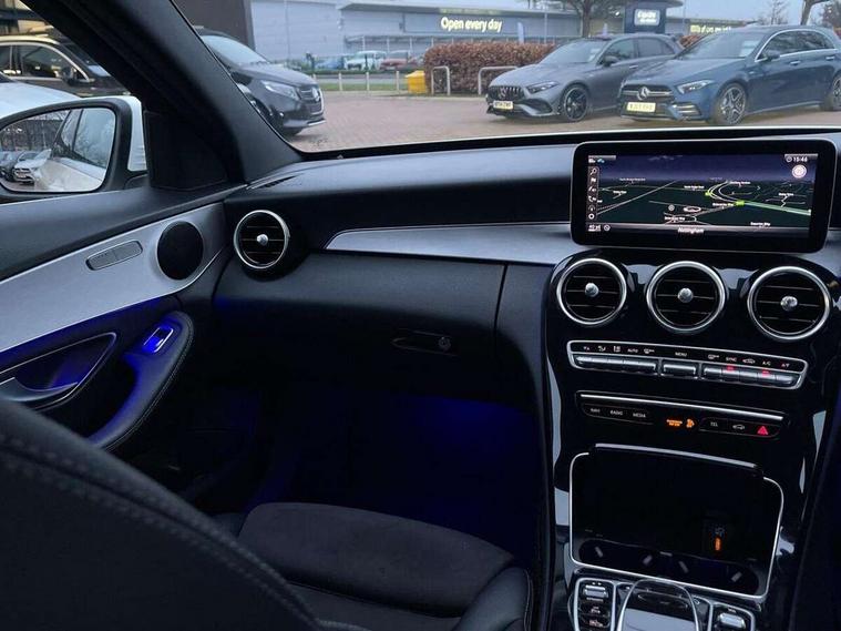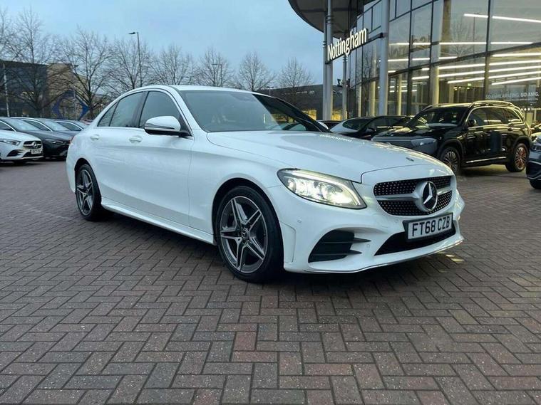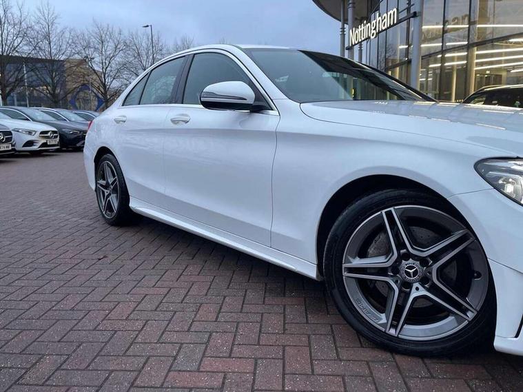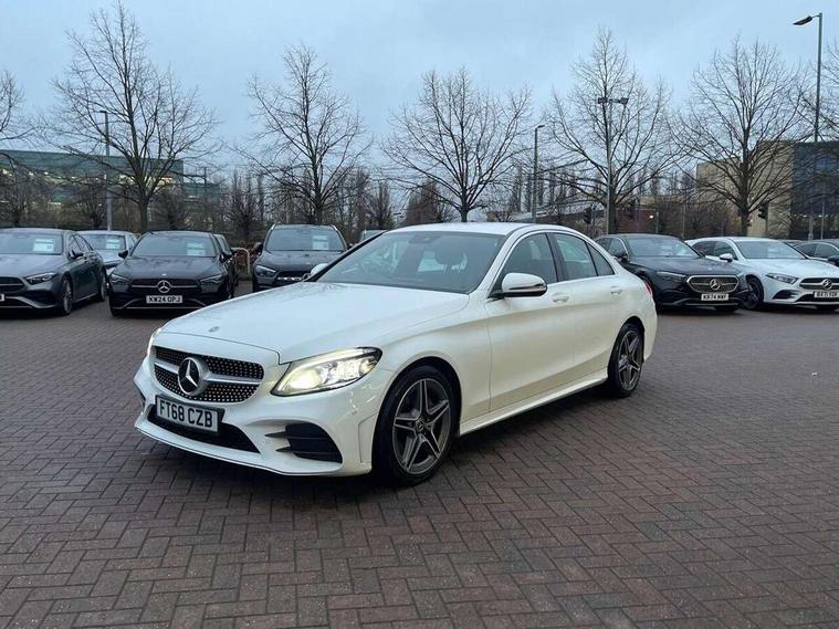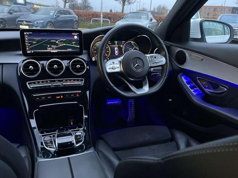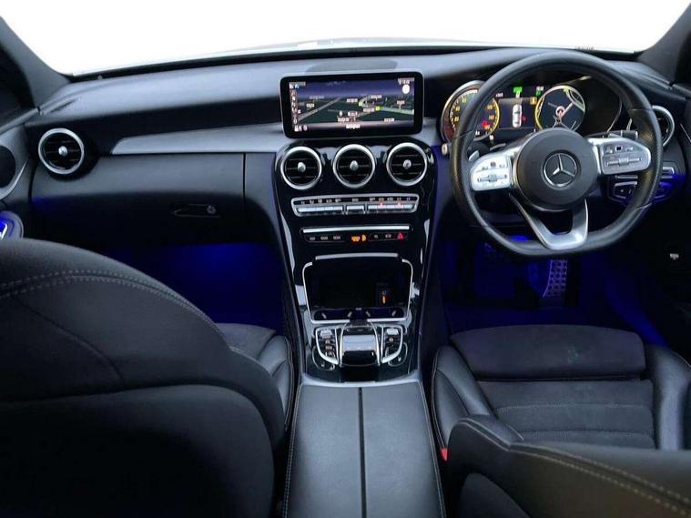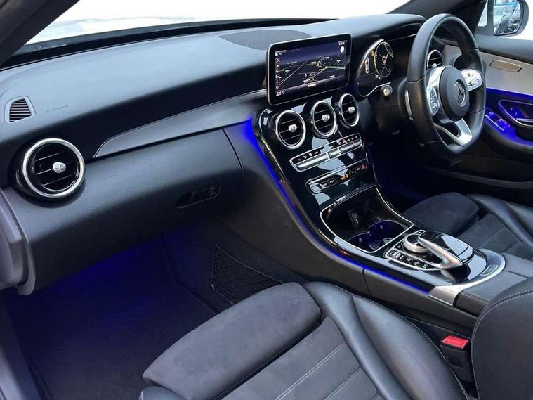 Active park assist with parktronic system, Attention assist, Bluetooth system, Collision prevention assist plus, Comand Online HDD Nav with media interface, radio/CD/DVD/MP3, 10.25 screen, linguatronic voice control, DYNAMIC SELECT with a choice of driving modes (ECO, Comfort, Sport, Sport+ and Individual), Multi function trip computer, Outside temperature gauge, Remote boot release, Reversing camera, Service indicator (ASSYST PLUS), Smartphone integration with Apple CarPlay and Android auto, Wireless charging, Petrol Particulate Filter, 2 USB ports in centre console, DAB Digital radio, Mid-range sound system with 7 speakers and 225W amplifier, SD card slot, Steering wheel mounted audio controls, Adaptive brake lights, Aerial in rear window, AMG body styling, Body coloured bumpers, Chrome door mirrors, Chrome pins diamond radiator grille with integrated stars, Electric windows one touch open/close, Electrically adjustable and heated door mirrors, Green tinted glass, Heated windscreen washers, LED daytime running lights, LED Indicators, LED tail lights, LED third brake light, Multi beam LED headlights, Rain sensor windscreen wipers, Side windows surround in polished aluminium, Twin exhaust pipes, 2 cupholders in front centre console, 3 spoke flat bottom AMG steering wheel in nappa leather, 40:20:40 split folding rear seats, AMG floormats, AMG sports seats, Auto Mercedes-Benz child seat recognition sensor, Dual zone automatic climate control, Electric front seat height adjustment, Front and rear head restraints, Front centre armrest with storage compartment, Front door sills with Mercedes Benz lettering, Gearshift paddles, Heated front seats, Illuminated glovebox, Interior lighting - 64 colour Ambient lighting, Multifunction steering wheel, Rear top tether child seat ISOFIX attachment, Sports pedals with stainless steel surfaces and rubber studs, Sunvisors with illuminated vanity mirrors, Lighting pack - C class, Mirror pack - C Class, Seat comfort pack - C Class, Stowage space pack - C Class, 3 rear 3 point seatbelts, ABS with Brake Assist, Active bonnet, Adaptive brake system, Black seat belts, Brake calipers with Mercedes-Benz lettering + perforated brake discs, Child proof door locks, Crash sensor, Drivers knee airbag, Drivers pelvis airbag, Dual stage driver/passenger airbags, Electronic parking brake, ESP with ASR, Front passenger seat occupancy sensor, Front side airbags, Hill start assist, Rear seatbelt warning indicator, Tyre pressure monitoring system, Warning triangle and first aid kit, Window airbags, Alarm system/interior protection/immobiliser, Chrome surround in electric key, Remote central locking, Artico upholstered dashboard with contrast stitching, Tyre inflation kit,