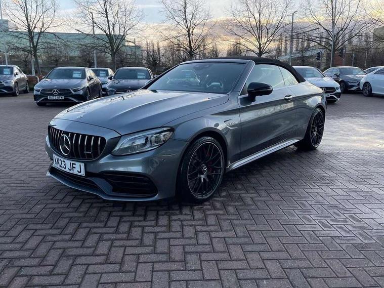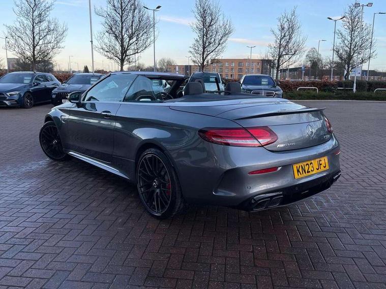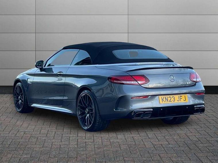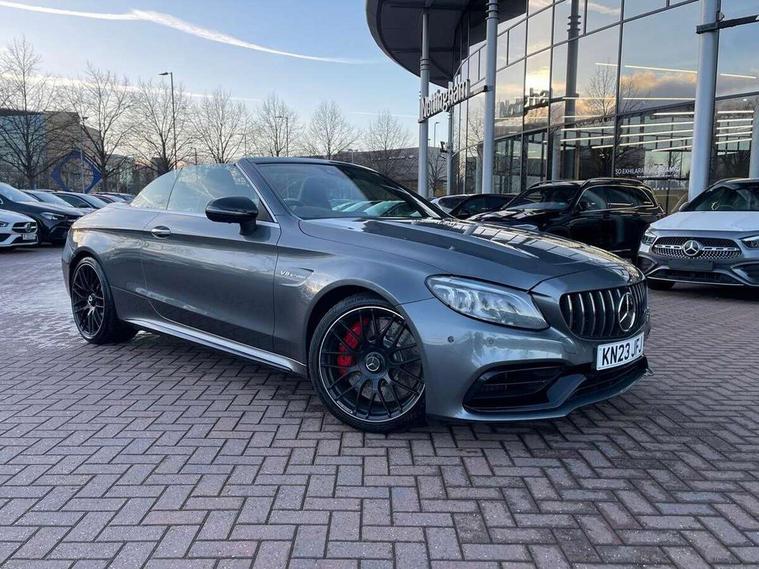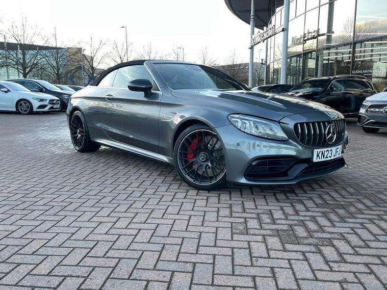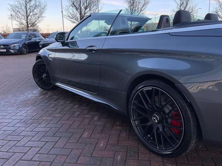 12.3" digital instrument cluster display with AMG specific selectable display "Supersport", 3 stage speed sensitive sport steering, 360 degree view camera, Active park assist with parktronic system, AMG boot logo in central screen, AMG DYNAMIC SELECT with a choice of driving modes - Comfort, Sport, Sport+, Individual and Race, AMG track pace, Attention assist, Bluetooth interface for hands free telephone, Collision prevention assist plus, Comand Online HDD Nav with media interface, radio/CD/DVD/MP3, 10.25 screen, linguatronic voice control, Cruise control with speedtronic variable speed limiter, ECO start/stop function, High resolution 10.25" multimedia colour display, Mercedes me connect including emergency call system, accident recovery, breakdown and maintenance management, Multi function trip computer, Outside temperature display, Pre-wiring for SD navigation system, Remote boot release, Reversing camera, Service indicator (ASSYST), Status display for rear seat belts in instrument cluster, 66l fuel tank with increased capacity, AMG rear axle limited slip differential lock, AMG Ride Control sports suspension, AMG SPEEDSHIFT MCT 9 speed automatic sports transmission, Petrol Particulate Filter, DAB digital radio tuner, Frontbass loudspeakers, Midline sound system, Two USB ports and one SD Card slot in centre console, Acoustic soft-top with enhanced climate and noise comfort, Adaptive brake lights, AIRCAP wind deflector and draught stop, AMG bodystyling - front apron with distinctive air intakes and AMG rear apron with diffuser look, AMG bonnet with powerdomes, AMG boot lid spoiler in body colour, AMG rear apron with 4 diffuser fins, diffuser board plus trim strip painted in matt iridium silver, AMG specific radiator grille in high sheen chrome with AMG lettering, Automatic headlights, Body coloured bumpers, Electric windows with one touch opening/closing and obstruction sensors, Exterior mirrors heated and electronically adjustable, Front door sill panels with AMG lettering, Full LED tail lamps, Green tinted glass, ILS Multibeam headlights, LED daytime running lights, LED Indicators, LED third brake light, Mercedes AMG C 63 S badging at the rear, Radio aerial integrated into rear window, Rain sensor windscreen wipers, Rear boot, Semi-automatic boot separator, Side windows surround in polished aluminium, V8 BITURBO badging with flared AMG wings, 2 cupholders in front centre console, 2 rear head restraints, 2 seat bench in 2nd row, 3-spoke AMG performance flat lower lthr steeringwheel in nappa lthr/dina microfibre 12ock black silver alumin gearshift paddle + touch control button, 40:20:40 split folding rear seats, Airscarf - neck level heating, AMG emblem in front head restraints, AMG performance seats, Auto Mercedes-Benz child seat recognition sensor, Electric height/reach adjustable steering column, Floor mats with black leather edging, red piping and AMG logo, Front centre armrest with storage compartment, Front head restraints, Front LED reading lights, Heated front seats, Illuminated glove compartment stowage, Interior lighting - 64 colour Ambient lighting, Nappa leather upholstery, Single front passenger seat, Sports pedals with stainless steel surfaces and rubber studs, Steering wheel gearshift paddles, Steering wheel touch control buttons for audio and onboard settings, Sunvisors with illuminated vanity mirrors, THERMATIC 2 zone automatic climate control, AMG Driver's Package - C Class Cabriolet, AMG night package - C Class, Interior lighting package - C Class, Memory pack with steering column memory - C Class, Mirror package - C Class, Stowage space pack - C Class, 2 rear seatbelts, 3 point automatic seatbelts, Active bonnet, Adaptive brake system with hold function and brake drying function, AMG high performance braking system, Anti-lock braking system (ABS), Automatic seatbelt pretensioner for driver and front passenger, Dual stage airbags - driver and front passenger, front sidebags, driver kneebag, pelvis bag and windowbags for driver, front and rear passengers, Electronic parking brake, Electronic Stability Programme (ESP), ISOFIX child seat attachment points with top tether in rear, Red brake calipers with AMG lettering, Seat belts in Crystal grey, Tyre pressure monitoring system, Warning triangle and first aid kit, Anti-theft alarm system/interior protection with tow-away protection and interior monitoring systems, Central locking with interior switch, automatic locking and crash sensor with emergency opening function, Chrome surround in electric key, Immobiliser, KEYLESS-GO Entry and Starting Function, AMG carbon fibre/light longitudinal grain aluminium trim, Artico man-made leather dashboard with contrast stitching, 19" front / 20" rear forged AMG cross spoke design matt black alloy wheels, TIREFIT with tyre inflation compressor,