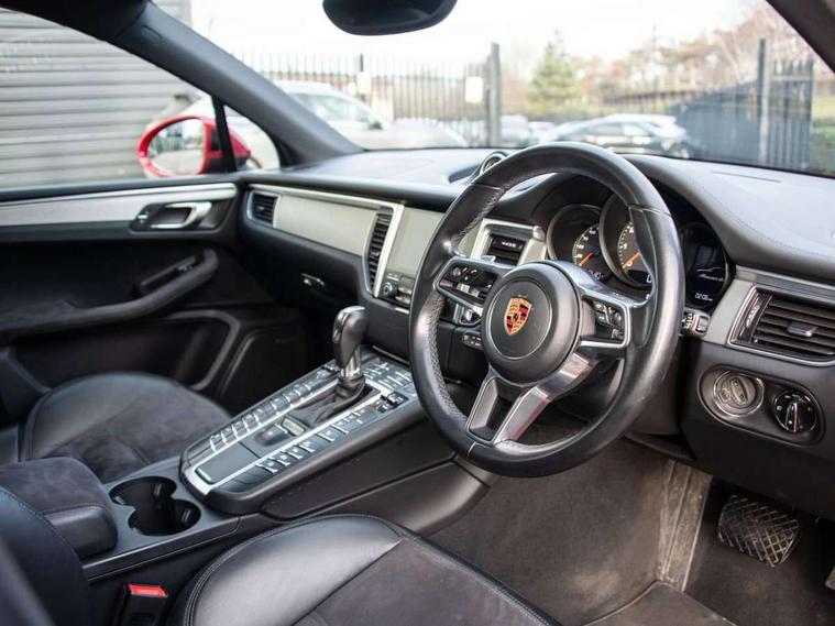 Brake pad wear sensors front and rear, External temperature gauge, Front/rear park distance control, Instrument cluster with high-resolution 4.8-inch TFT colour display, Mobile telephone preparation, Off-road button, On board computer, PCM navigation module, Porsche communications management, Porsche Connect Plus, Power tailgate, Service interval indicator, Sports button in centre console, 75 litre fuel tank, Porsche stability management (PSM), Connect Plus with Apple CarPlay, wireless internet access, Carfinder, Remote Vehicle Status and Remote Services, DAB Digital radio, USB interface in rear, 2 speed front wipers + intermittent wipe, Adaptive brake lights, Automatic headlights, Black side window trim, Colour coded bumpers, Electric front and rear windows + anti trap + one touch, Electric/heated/folding door mirrors, Headlamp cleaning system, Heat insulating laminated glass, Heated rear window with auto timer, Heated washer jets, Intermittent rear wash/wipe, LED daytime running lights, LED fog lights, Painted side air intakes, Rain sensor, Tinted LED tail lights, Towbar preparation, Trailer Stability Programme, Welcome home function, 3 zone climate control, 4 12v Sockets, 4 way adjustable front head restraints, 40:20:40 split folding rear bench seat, Active carbon filter, Air quality sensor, Automatic air recirculate, Clothes hooks on front seat backrests, Folding rear centre armrest, Front and rear cupholders x 2, Front armrest, Front reading lights, Ignition Lock illumination, Illuminated air conditioned glovebox, Illuminated centre console storage, Illumination of luggage compartment, Isofix system on outer rear seats, Pollen filter, Rear headrests, Rear reading lights, Retractable Loadspace Cover, Retractable luggage net, Steering wheel gearshift paddles, Storage bins on all doors, Storage compartments in cargo area side walls, Sport design pack with side skirts - Macan, 3 point automatic seatbelts, 3 point rear seatbelts, ABS+ABD, ASR, Curtain airbags, Electronic parking brake, Front seat belts warning, Front seatbelt pretensioners + load limiters, Front side airbags, Full size driver and passenger airbags, Height adjustable front seatbelts, Hill hold control, Manual passenger airbag deactivation function, Motor Slip Regulation (MSR) - Engine Drag Torque Control, PTM (Porsche Traction Management), Red painted brake calipers, Two tone horn, Tyre pressure monitoring system, Alarm system, Electronic transponder immobiliser, Remote central locking, Trim strip in silver, Wheel centres with full colour Porsche crest,