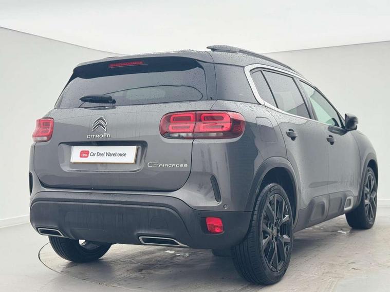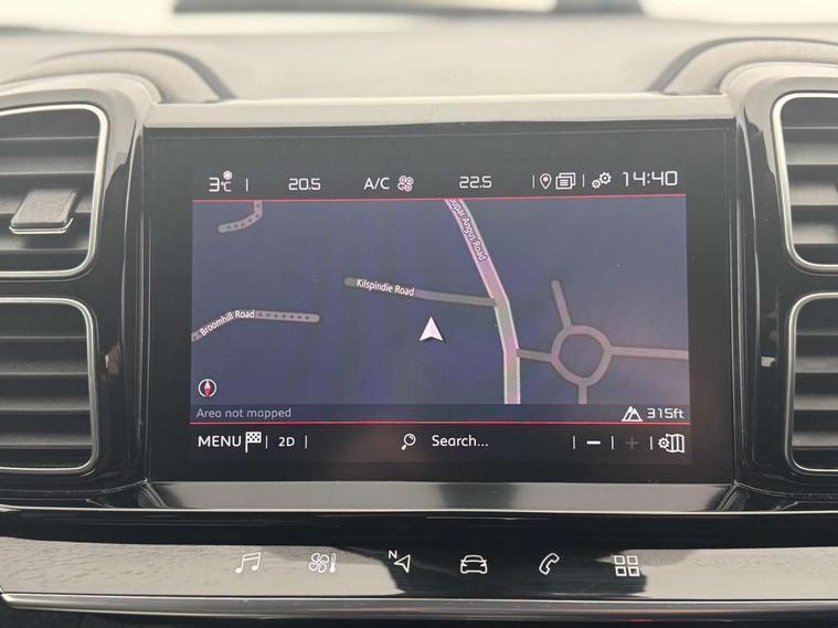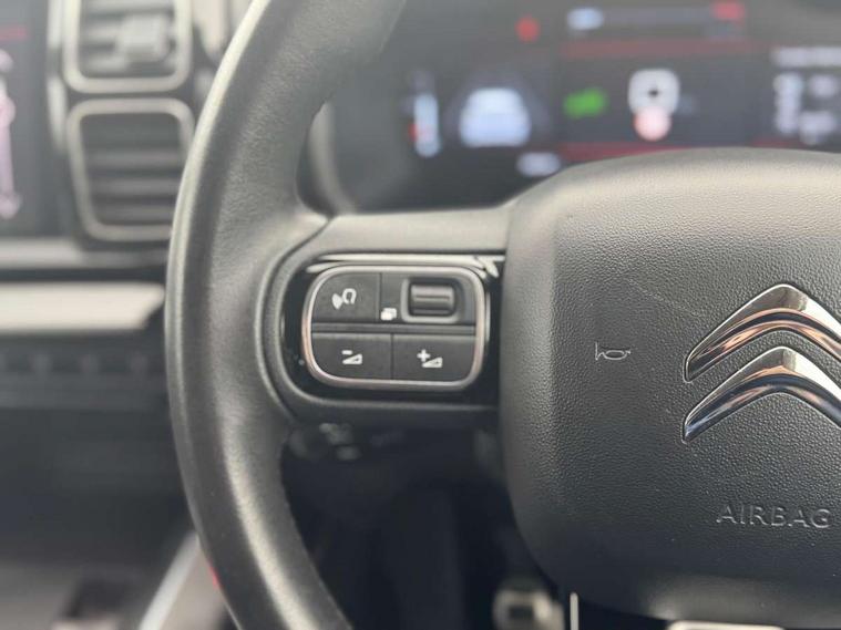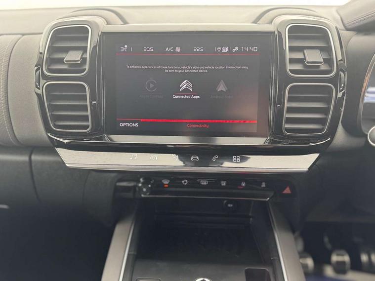12.3" customisable TFT instrument display, Active cruise control with speed upto 19mph, Active lane departure warning system, Bluetooth telephone facility, Central 8" capacitive touch screen, Citroen connect box emergency assist system, Citroen connect Nav with connect box, Coffee Break Alert, Driver attention alert system, Eco+ mode, Electric power steering, Extended traffic sign recognition and recommendation, Exterior temperature indicator with ice warning, Gear efficiency indicator, Mirror screen with Apple CarPlay and Android auto, Multi function trip computer, Speed limit recognition and recommendation, Speed limiter, Top rear vision reversing camera, Suspension with Progressive Hydraulic Cushions, 2 USB sockets, Auxiliary input socket, DAB (Digital Audio Broadcasting), AM/FM and MP3 compatible radio with two tweeters and four speakers, Voice recognition for radio, navigation and telephony features, 3D effect LED rear lights, Acoustic laminated windscreen with rain and brightness sensors, Airbump panels with colour insert on lower portion of the doors, Auto dimming electrochrome rear view mirror, Automatic hazard light activation upon heavy brake application, Automatic triggered rear windscreen wiper in reverse gear, Black upper and lower grille, Body colour door handles, C5 Aircross monogram on boot rear, Chrome exhaust trim, Citroen logo and monogram on rear, Dark tinted rear windows and rear windscreen, Electric, heated and folding door mirrors with integrated LED indicator and kerb puddle light, Front fog lights with cornering function, Front windscreen wiper with magic wash cleaning system, Gloss black finish on A and B pillar and aerodynamic trim, Guide me home headlight function, Halogen rear fog lights, Halogen rear number plate lights, Headlights left on audible warning, Heated rear windscreen with integrated antenna, High level LED centre brake light, Intelligent high beam headlights (auto dipping main beams), LED daytime running lights, LED front indicators, LED Headlights, Longitudinal roof bars, Matt black rear bumper fascia, Matt black side sill, Matte black lower rear skirt, Matte black wheel arch extensions, One touch electric front/rear windows with pinch protection, Painted front bumper, Painted rear bumper, Roof coloured rear spoiler with stainless edging trim, Satin chrome C signature, Satin chrome window surround, Twin exhaust effect trim, 12V socket in boot, 12V socket in cabin, 2 Central illuminated cup holders, 2 Position boot floor, 2 way lumbar adjustment for driver, 2x Rear coat hooks, 3 Independent full size rear seats with adjustable recline angle, 3x Grab handles retractable with damping, 3x independent sliding rear seats with adjustable backrest flat floor function, Advanced comfort front and rear seats, Air recirculation when reverse gear is engaged, Aluminium pedals and foot rest, Anti odour and pollen filter, Central front armrest with butterfly wing opening and illuminated storage compartment, Dimmable white mood lighting, Dual zone automatic climate control, Fixing rings 4 in load compartment, Front + rear carpet mats, Front and rear LED welcome/LED rear reading lights, Front door pockets store up to 1.5L bottle and A4 note pad, Front seat back map pockets, Gear lever in satin chrome, Height and reach adjustable leather steering wheel with 2 control zones and satin chrom inserts, Hinged rear parcel shelf, Isofix child seat preparation for front passenger seat, Leather effect dashboard fascia, Leather effect interior door handles, Manual passenger seat adjustment (height, fore/aft and backrest angle), Multi function leather steering wheel with two command blocks, Open central storage compartment, Rear door pockets store up to 75mm bottle, Rear passenger air vents, Satin chrome digital instrument panel and touchscreen trim, Satin chrome interior door handles, Seatbelt unfastened on the move audible and visual alert for front and rear seats, Smooth opening flocked glove box with lighting, Stainless steel front Citroen embossed sill scuff plates, Safety plus pack with blind spot monitor - C5 Aircross, Visibility pack - C5 Aircross, 2x Isofix child seat fitting on outer rear seats, 3x Rear three point retractable seatbelts with pretensioners and force limiters in the outer rear seats, ABS/EBD, Adaptive driver and front passenger airbags with passenger airbag deactivation function, Collision risk alert, Driver and front passenger side airbags, DSC (Dynamic Stability Control) and ASR (Electronic Anti-skid System), Electric child locking functionality on rear windows and doors, Electronic parking brake, ESP including traction control and stability programme, Front and rear curtain airbags, Front optimised safety headrests and 3 x rear retractable headrests with height adjustable, Front three point retractable seatbelts height adjustable with pre tensioners and force limiters, Front ventilated disc brakes and rear disc brakes, Hill start assist, Two tone horn, Tyre under inflation indicator, Alarm - perimetric and volumetric alarm with anti-lifting mechanism, Automatic door locking, Electronic code immobiliser, Keyless entry and start, Remote central locking + deadlocks, Gloss black touch screen surround with integrated tactile buttons and chrome finisher, Satin chrome air vent decors, Soft touch matte dashboard with grey insert, Compressor with puncture repair kit,
