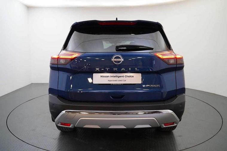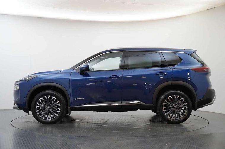 Advanced 10.8" head up display, Android auto wireless, Blind spot warning, Drive assist custom mode, Drive modes (sport, normal, eco), Driver drowsiness and attention warning, e-Pedal step, Electric speed sensitive power steering, Emergency and breakdown call, Event data recorder, Front and rear parking sensors, Full Digital 12.3" TFT Digital Combimeter, Google maps services - search, weather, 3D maps and Google street view, Hands free power tailgate, Idle stop/start system, Intelligent around view monitor, Intelligent Cruise control (ICC), Intelligent driver alert system, Intelligent forward collision warning, Intelligent lane departure warning, Intelligent lane intervention, Intelligent lane keep assist, Lane departure prevention, Maximum speed limiter, Moving object detection, Nissan connect 12.3 inch touchscreen infotainment system, Nissan connect nav with TomTom traffic, Propilot assist with Navi-Link, ProPilot park, Push button starter, Rear cross traffic alert, Rear view camera, Remote control services - door locks, lights, horn and car locator, Reversing detection, Telematics - notifications and connectivity services, Traffic jam pilot, Traffic sign recognition with legal speed adjustment, Trip computer, Virtual personal assistant and firmware over the air capability, Wireless apple carplay, Wireless charging pad, 6 speakers, AM/FM audio system with DAB, Bluetooth audio streaming, Front USB connections (Type-A and Type-C), Rear USB charging only ports 2 Type-C, Auto rear wiper when reversing, Body colour mirror caps, Body coloured door handles, Bodyside mouldings, Chrome side window finisher, e-POWER badging, Electric auto folding door mirrors, Electric sunroof/sunshade, Electrically adjustable and heated door mirrors, Follow me home headlights, High beam assist, Intelligent auto headlights, LED 3rd brake light, LED daytime running lights, LED front fog lights, LED headlights with adaptive driving beam, LED rear lights, One touch front and rear electric windows with remote opening and closing, Partially body coloured bumpers, Rain sensing wipers, Rear privacy glass, Rear reversing light (bulb lighting), Rear roof spoiler, Rear side wing doors, Rear styling plate, Roof rails, Shark fin antenna, Smart rear view mirror with auto dimming, Splash free wipers, Super UV and infrared cut glass, Thermaclear heated windscreen, Three blink turn signal, 12v power socket in dashboard and luggage, 3 bench rear seats in 2nd row, 3 rear headrests, 40/20/40 folding rear seats with recline, Butteryfly console, Chrome interior door handles, Driver and front passenger sunvisors with illuminated vanity mirrors, Driver seat back pocket, Electric adjustable 2 way lumbar support for driver, Electric adjustable 2 way lumbar support for passenger seat, Electric adjustable driver and passenger seat with memory function, Fore/Aft adjustable rear seats, Front and rear heated seats, Front centre console and armrest, Front cupholders, Front door with bottle holders, Heated steering wheel, Height adjustable driver's seat, Height adjustable front headrests, Height adjustable passenger seat, Leather shift knob, Leather steering wheel, Luggage board system, Luggage space lighting, Multifunction steering wheel, Passenger seat back pocket, Rear armrest with 2 cupholders, Rear door bottle holders, Single front passenger seat, Sliding second row seats, Steering column mounted gear shift paddles, Synthetic leather monoform upholstery, Tilt/telescopic adjustable steering wheel, Tri zone automatic climate control with pollen filter, Two rear isofix child seat anchorage points with top tether, Sky pack - X-Trail, 3x3 point rear seatbelt pretensioners + load limiters, ABS with EBD and brake assist, Active brake limited slip, Auto hold function, Child locks on rear doors, Curtain and front side, far side airbags, Driver and passenger airbags, Driver, passenger and 2nd row rear seat belt reminder, Electronic parking brake, Front seatbelt pretensioners + load limiters, Height adjustable front seatbelts, Hill start assist, Intelligent blind spot intervention, Intelligent front emergency braking with pedestrian, cyclist recognition and junction assist, Intelligent rear automatic braking, Tyre pressure monitoring system, Vehicle dynamic control, Approach unlock and walk away lock, Engine immobiliser, Intelligent Key, Remote central door locking with deadlocking, Thatcham Cat.1 alarm, 19" Diamond cut alloy wheels, Tyre puncture repair kit,