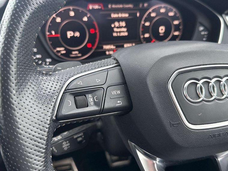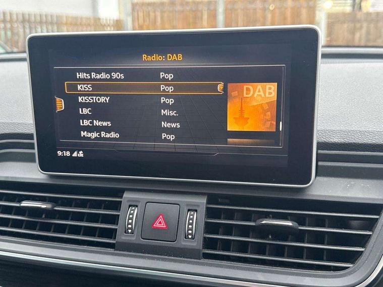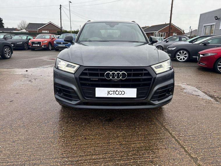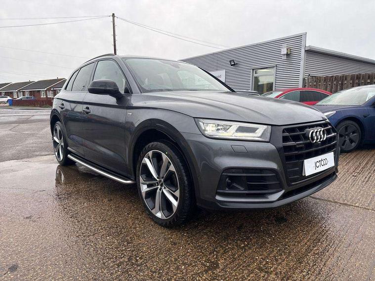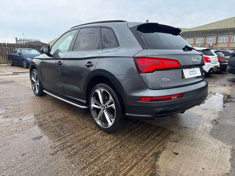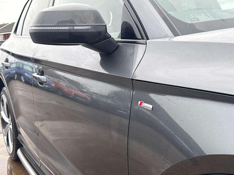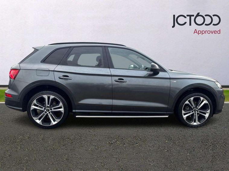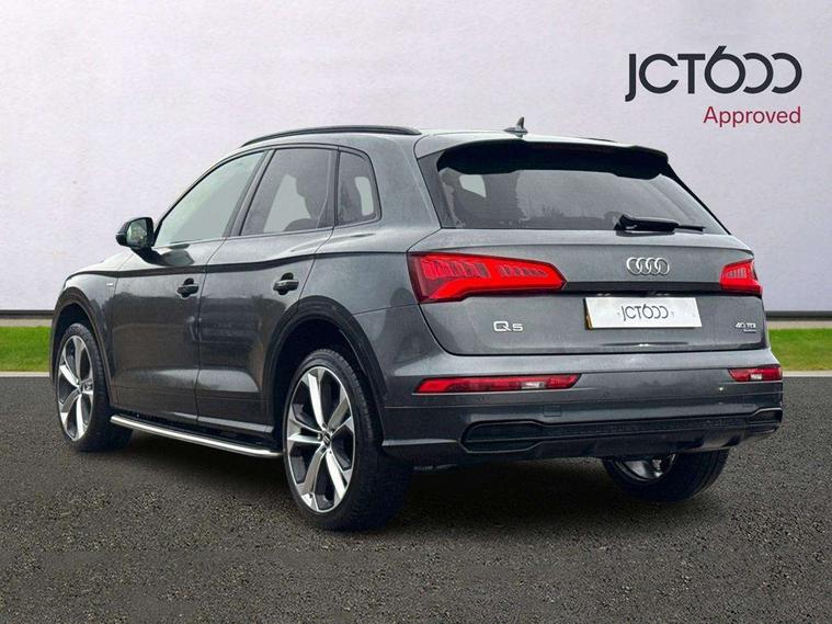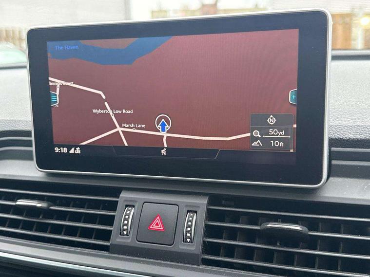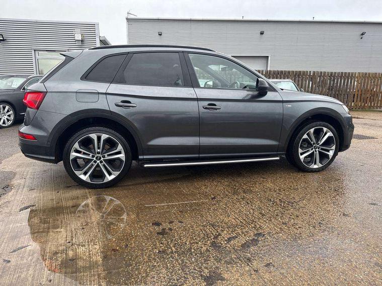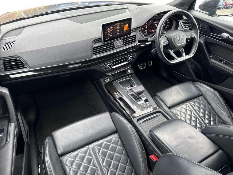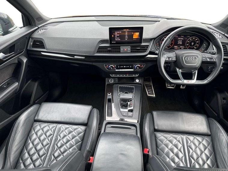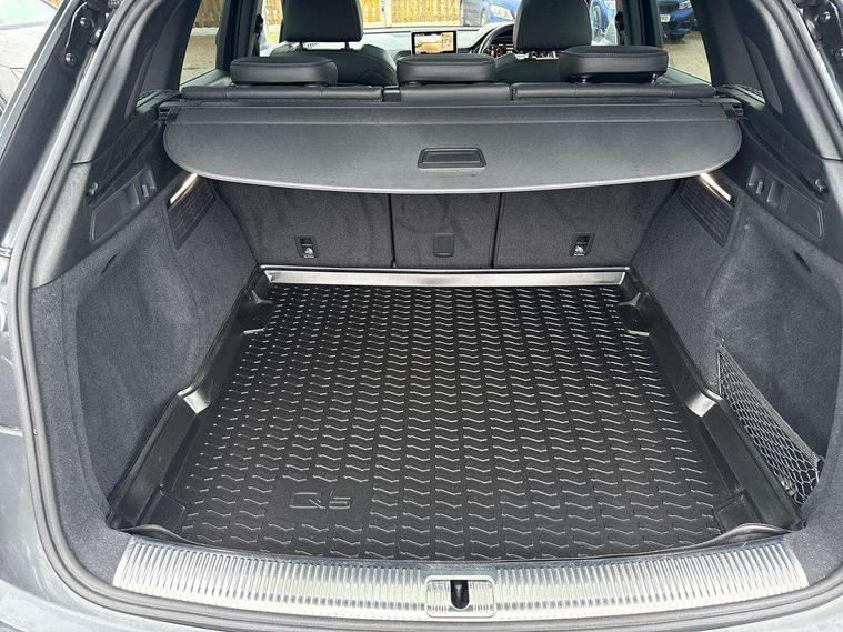 360 degree view camera, Adaptive cruise control with Stop and Go and traffic jam assist, Audi active lane assist, Audi connect infotainment services, Audi connect safety and service (e-call), Audi drive select, Audi phone box with wireless charging, Audi pre-sense front with collision avoidance assist and turn assist, Audi side assist, Audi smartphone interface, Audi virtual cockpit - 12.3" high resolution LCD digital instrument cluster display, Automatic start-stop system with coasting functionality and efficiency programme, Camera based traffic sign recognition, Electro - mechanical power assisted steering, Head up Display, MMI navigation plus with 8.3" colour MMI screen and MMI touch, Mobile telephone preparation - bluetooth interface, Park assist system, Power tailgate, Predictive efficiency assistant, Rear cross traffic assist, Service interval indicator, Voice control system, Adaptive comfort suspension with damping control, Diesel particulate filter, Quattro on demand, 2 x USB charging port with aux input socket, 2x SD card slot, CD player, DAB Digital radio, MMI radio plus with 7" colour MMI screen and MMI controller, Acoustic windscreen, Air inlets in matt titanium black with blades in matt aluminium silver, Audi Beam uses LEDs to project the Audi Sport logo, Audi matrix LED headlights with LED rear lights + dynamic front and rear indicators, Auto dimming rear view mirror, Automatic headlight levelling, Black roof rails, Body colour rear diffuser with matt aluminium silver surrounds, Body colour underbody protection, Chrome exhaust tailpipe, Contrast bumpers in Manhattan grey, Electric panoramic glass sunroof, Electrically folding/heated/auto dimming door mirrors with memory function, Front and rear bottom section bumpers in Manhattan grey, Front and rear electric windows, High beam assistant, Light and rain sensor for auto activation of lights and windscreen wipers, Loading sill protector in stainless steel, Privacy glass with front acoustic glazing, Rear wiper, Running boards, Titanium black door mirror housings, 3 rear headrests, 3 spoke flat bottom high multi-function leather steering wheel, 3 zone climate control, 40/20/40 split folding rear seats with rear centre armrest, Black cloth headlining, Contrast stitching on seats, steering wheel and gear lever gaiter, Electric steering wheel adjustment, Electrically adjustable front seats with driver memory, Fine Nappa leather upholstery, Front centre armrest, Front sports seats in fine nappa leather, Front/rear floor mats, Heated front and outer rear seats, Height adjustable front head restraints, ISOFIX child seat mounting and top tether, Luggage compartment carpet, Massage function for front seats, Perforated leather gearknob, Rear seat bench plus, Removable luggage compartment floor, Stainless steel pedals, Sunvisors with vanity mirrors, Trunk roller cover, Comfort and sound pack with reversing camera - Q5, Extended interior upholstery pack - Q5, Extended LED Interior Lighting Pack - Q5, Non Smokers pack, Parking Assistance Pack - Q5, Titanium black styling pack - Q5, Tour pack - Q5, 3 point seatbelts on all seats, 6 airbags - Driver, front passenger, curtain and side airbags, Audi pre sense basic and rear, Electromechanical parking brake, Electronic stabilisation control including ABS, ASR and EDL, Exit warning, Front passenger airbag deactivation, Hill descent control, Hill hold assist, Multi collision brake assist, Pop-up bonnet for pedestrian protection, Pre sense city, Seat belt force limiter, Seatbelt monitoring, Tyre pressure warning, Warning triangle and first aid kit, Anti theft alarm, Anti-theft wheel bolts, Keyless Go access/ignition system, Remote central locking, 21" 5 twin-spoke module design Audi sport alloy wheels with matt grey inlays, Tool kit, Tyre repair kit,