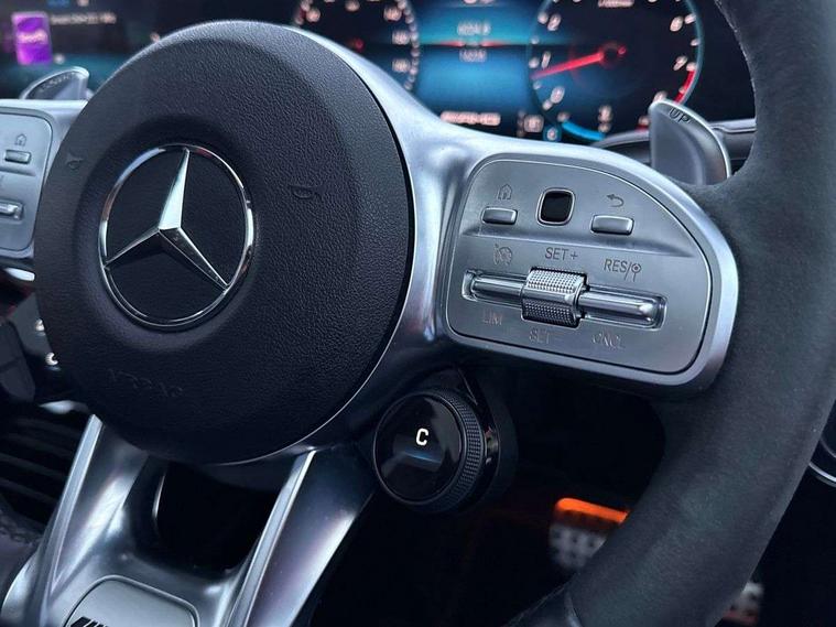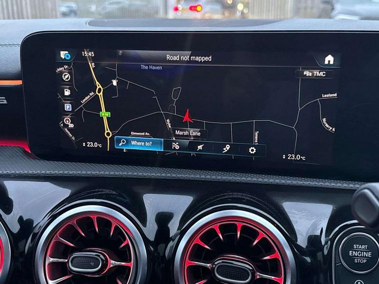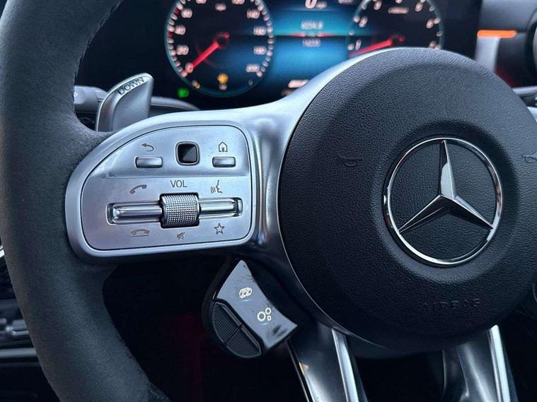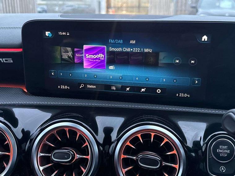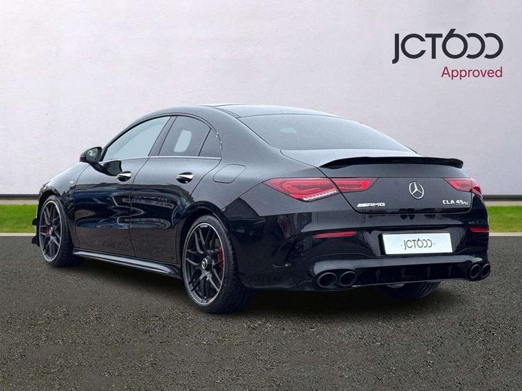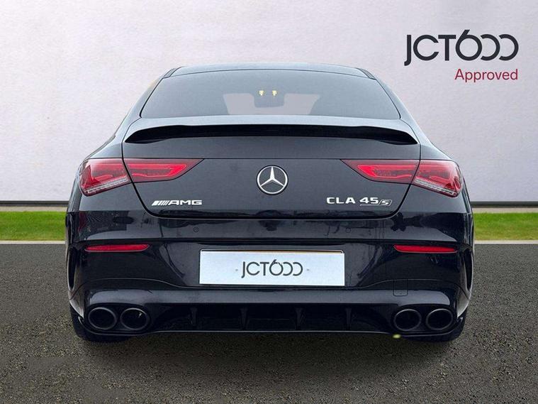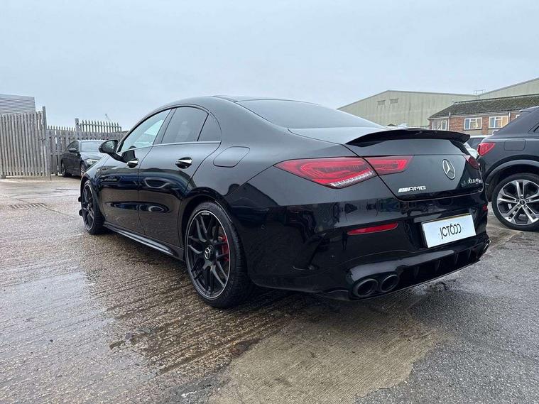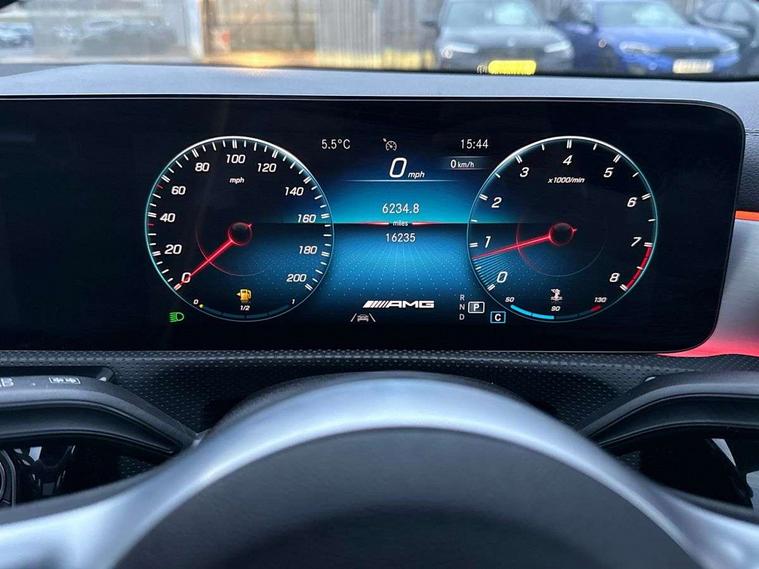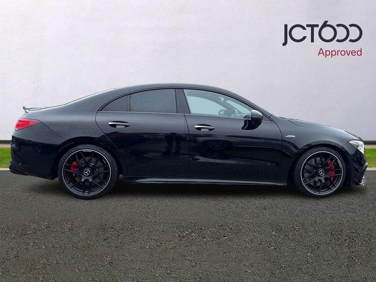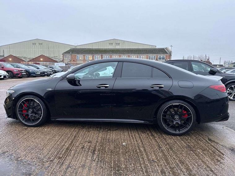 10.25 inch Instrument display with digital cockpit, 10.25 inch touchscreen central media display with AMG specific, AMG start up logo, visualisation of the AMG drive programs, vehicle and engine data, Active lane keeping assist, AMG DYNAMIC SELECT with drive programs Slippery, Comfort, Sport, Sport+, Individual and RACE including Drift mode activated + RACE START function, AMG menu with sporty additional information - Gear indicator with yellow M symbol manual mode, Warm Up menu and Set Up menu, Attention assist - Monitors steering behaviour and long journey fatigue, Blind spot assist, Bluetooth connection, Car wash mode, Cruise control with limiter, Direct steer system with AMG speed sensitive power steering with two sets of steering characteristics, ECO start/stop function, Fluid level warning indicator for fuel, oil, coolant and washer fluid, Hard-disk navigation, Hey Mercedes Voice activation, Lamp failure indicator, Mercedes me connect including emergency call system, accident recovery, breakdown management and maintenance, Mercedes me remote services, Outside temperature gauge, Owners manual and service booklet in English, Pre-installation of private car share, Preinstallation for Mercedes Benz link, Radio aerial integrated into front and rear windshields, Service indicator (ASSYST), Smartphone integration with Apple CarPlay and Android auto, Speed limit assist, Traffic sign assist, Trip computer in multifunction display with current consumption indicator, AMG performance 4MATIC+ with torque control distribution, Rear axle multi-link, Suspension with adaptive damping system, DAB digital radio tuner, MBUX multimedia system, Mid-range sound system, USB (type C) ports (2) in stowage compartment and 1 in front of centre console, Adaptive brake lights, AMG body styling specific front apron, AMG side sill panels, AMG rear apron, AMG roof spoiler lip, Specific S labelling boot lid + front apron CLA 45, AMG specific radiator grille in high gloss chrome with AMG lettering, AMG specific radiator grille with a wider lower contour and twelve vertical louvres, AMG spoiler lip in body colour, AMG wider side skirts, Automatically controlled exhaust flap, Beltline strips in High gloss Black, Body colour bumpers, Body colour door handles, Chrome weather strip, Diffuser with two vertical twin fins, Electric panoramic sunroof with automatic tilt and convenience closing fuinctions, rain sensor auto closing and electronic roller sunblind, Electric windows, Electrically adjustable and heated door mirrors with integrated LED indicators, Exhaust system with AMG Real Performance Sound (Balanced or Powerful settings), Front apron with horizontal fins in the outer air inlets and stretched lower air inlet, Headlamp assist automatic headlamp activation, Heated glass rear windscreen + timer control, High level LED third brake light, Integrated LED daytime running lights, Interior mirror with black reading lamps and frameless, LED tail lamp, Multibeam LED headlamps with adaptive highbeam assist plus, Privacy glass with dark tinting on rear side windows and rear window, Rain sensing windscreen wipers with two sensitivity settings, Rear boot, Rear fog lamp, Rear side wing doors, Two round twin tailpipe trim elements each measuring 90 mm in diameter and AMG lettering plus ribbing on the inside of the pipe, Valve control dependent on drive program, Variable front intermittent wipers, Window line trim strip in high gloss black, 3 seat bench in 2nd row, 3 spoke flattened lower sporty design AMG Performance steering wheel with Nappa/MICROCUT microfiber, grip area, 12 clock mark +AMG letter silver chrome, 40:20:40 split folding rear seats with backrest, Air conditioning - Two zone thermotronic luxury automatic climate control with display, Air vents with surround in silver chrome, AMG brushed stainless steel sports pedals with rubber studs, AMG centre console decidedly sporty with raised front section, AMG centre console finished with trim in silver chrome, AMG Performance sportily shaped seats with power adjustable front seats, special seat cushions + AMG badge backrests, AMG Steering wheel touch control buttons, Automatic child seat recognition sensor, Black roof lining, Electrically adjustable front memory seats including lumbar support, Fixed head restraints, Floor mats with stitched AMG lettering, Front centre armrest with stowage, Heated front seats, Illuminated front door sills with changeable cover, Illuminated glove compartment stowage, Interior lighting - 64 colour Ambient lighting, Manually height and reach adjustable steering column, Rear armrest with two integral cup holders for drinks, Silver coloured aluminium gear shift paddles on steering wheel, Single front passenger seat, Stowage compartment in centre console with retractable cover, Sunvisors with illuminated vanity mirrors, Touchpad on center console, Twin front cupholders, Two outer rear seat isofix and top tether child seat fixing points, Aerodynamics pack - CLA, AMG driver's package - CLA, AMG Multi contour seat pack - CLA, AMG Night package - CLA 35/45, AMG performance seat pack (High End) - CLA 45 S 4Matic+ Plus, Keyless go comfort pack - CLA, Light and sight pack - CLA, Mirror pack - CLA, Parking package - CLA, Seat comfort pack - CLA, Active bonnet pedestrain safety measure which detects an impact and raises bonnet by 65mm, Active brake assist includes forward collision warning system with autonomous braking, Adaptive brake assist with hold function and hill start assist, AMG high performance brake system with red painted brake callipers and black AMG lettering at the front, ventilated and perforated brake discs, Anti lock braking system (ABS) with brake assist, Black seat belts, Bonnet with power domes, Brake pad wear warning indicator, Childproof locks manually operated for rear doors and electrically operated for rear power windows, Crash responsive emergency lighting, Driver and front passenger head and sidebags, Driver and front passenger
