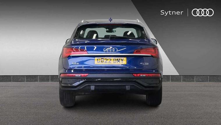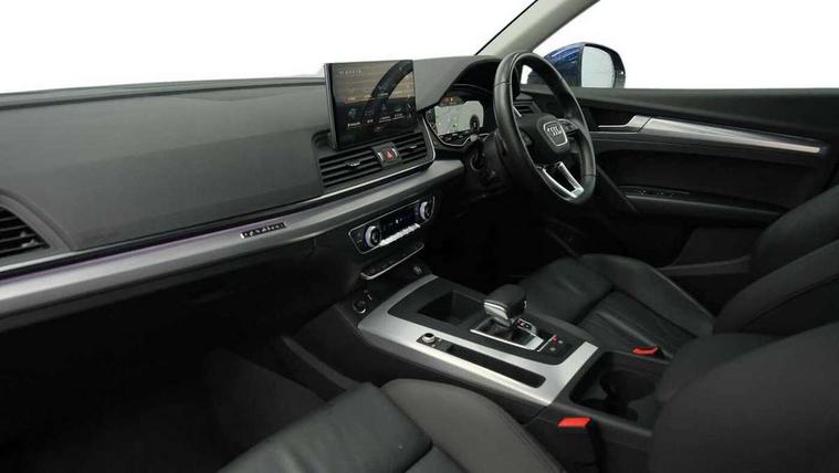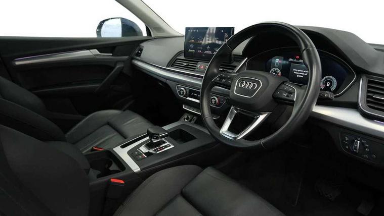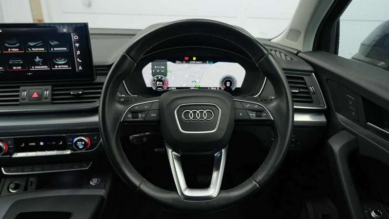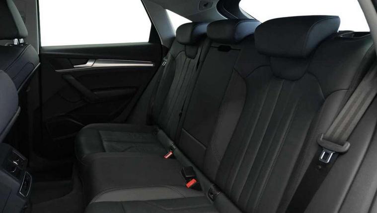 Audi connect safety and service (e-call), Audi connect with Amazon Alexa Integration, Audi drive select, Audi virtual cockpit plus with 12.3" screen and three different layout designs, Audi wireless smartphone interface, Automatic start-stop system with coasting functionality and efficiency programme, Bluetooth interface, Cruise control + speed limiter, Electro - mechanical power assisted steering, MMI navigation plus with 10.1" touch screen, Power tailgate, Reversing camera, Service interval indicator, Voice control system with Audi hotword activation "Hey Audi", Diesel particulate filter, Dynamic suspension, Quattro on demand, DAB Digital radio, Acoustic windscreen, Air inlets in matt titanium black with blades in matt aluminium silver, Aluminium roof rails, Auto dimming door mirrors, Auto dimming rear view mirror, Automatic headlights and windscreen wipers, Body colour door mirrors, Chrome plated exhaust trims, Daytime running lights, Door sills in Selenite silver, Electric adjustable/heated/folding door mirrors, Front and rear electric windows, High level LED brake light, LED headlights and LED tail lights, Lower bumpers painted in contrast Manhattan grey, Matt selenite silver underbody protection, Matt twilight grey radiator grille with chrome vertical struts, Rear chrome trim strip below lights, Rear diffuser strip in selenite silver, Rear side wing doors, Rear spoiler, Rear wiper, Roof bars, 2 x USB charging port with aux input socket, 3 rear headrests, 3 spoke multifunction leather steering wheel with shift paddles, 40:20:40 split folding 3 rear bench seat in 2nd row with rear centre armrest, Comfort front centre armrest, Deluxe 3 zone electronic climate control, Door sills trims with aluminium inlays, Front head restraints, Front/rear floor mats, Heated front seats, Height/reach adjustable steering column, ISOFIX child seat mounting and top tether, Manual seat adjustment with 4-way electric lumbar support, Removable luggage compartment floor, Silver cloth headlining, Single front passenger seat, Sunvisors with vanity mirrors, Trunk roller cover, Twin leather upholstery + front sports seats, High gloss pack - Q5, LED interior light pack - Q5, 3 point seatbelts on all seats, 6 airbags - Driver, front passenger, curtain and side airbags, Electrically operated child locks on rear doors, Electromechanical parking brake, Electronic stabilisation control including ABS, ASR and EDL, Front passenger airbag deactivation, Hill descent control, Hill hold assist, Multi collision brake assist, Pop-up bonnet for pedestrian protection, Pre sense city, Seat belt force limiter, Seatbelt monitoring, Tyre pressure warning, Warning triangle and first aid kit, Anti theft alarm, Anti-theft wheel bolts, Keyless Go access/ignition system, Remote central locking, Aluminium rhombus inlay,