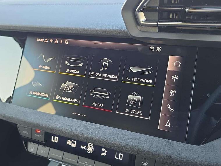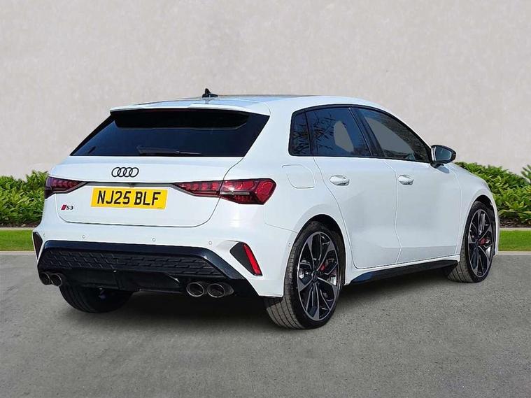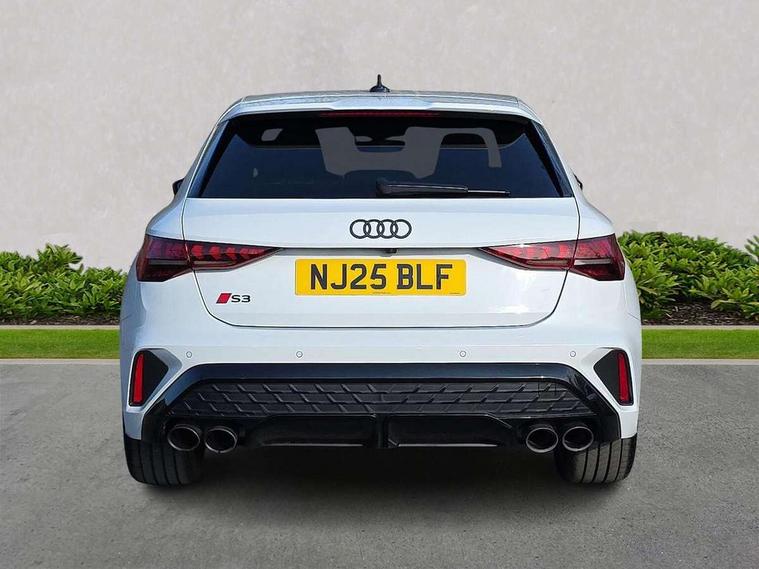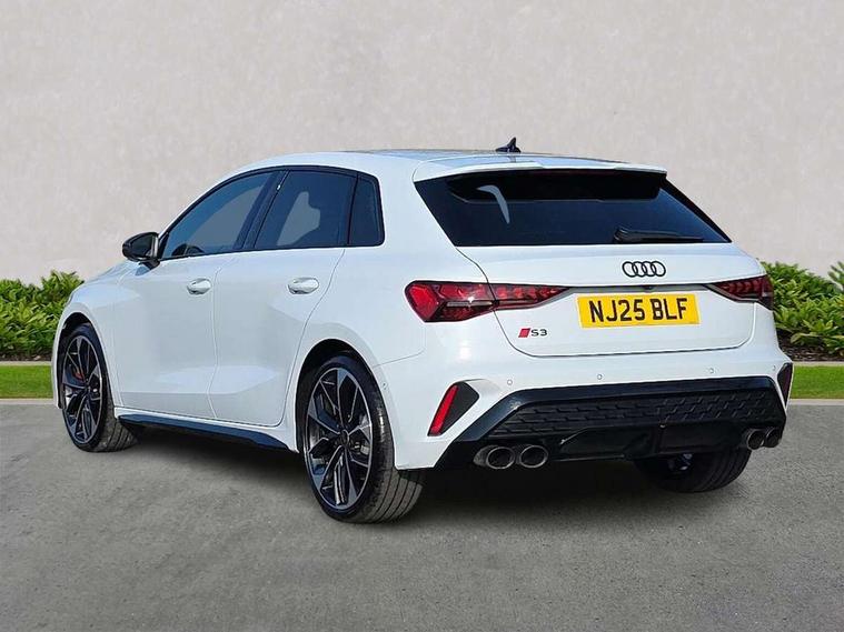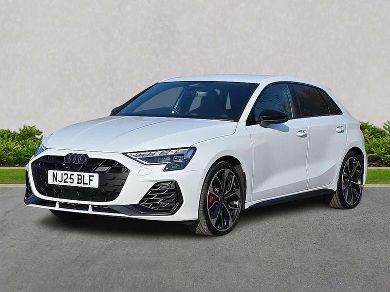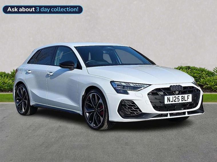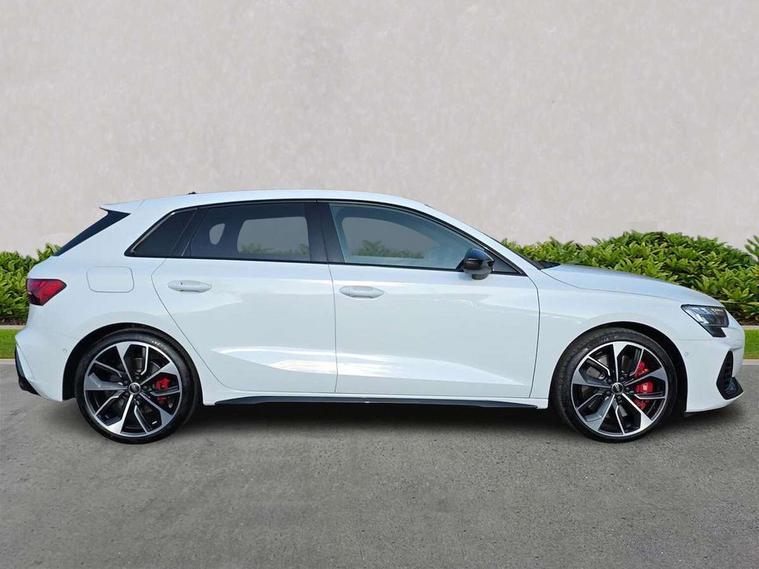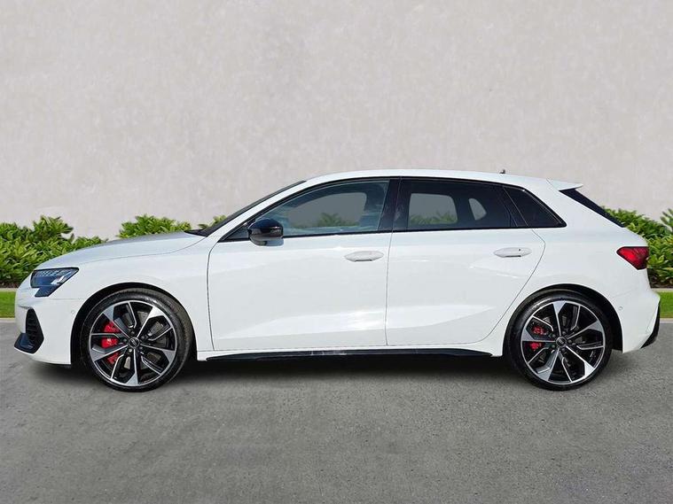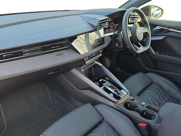 Adaptive cruise control (ACC), Adjustable speed limiter, Audi drive select (Auto, Comfort, Dynamic, Efficiency and Individual), Audi virtual cockpit plus - 12.3" full HD resolution dynamic digital instrument cluster, Automatic start/stop system with recuperation, Bluetooth interface, Camera based traffic sign recognition, Collision avoidance assistant, Driver attention and fatigue detection, e-Call (emergency call), Emergency assist, Intersection assist, Lane departure warning system, MMI Navigation Plus with high resolution 10.1" colour touch screen display, Park Assist with parking system Plus, Progressive steering, Reversing camera, Service indicator, Smartphone interface with app store includes wireless Apple carplay, Android auto and Amazon alexa integration, Trip computer, Voice control system with natural language interaction, quattro permanent all-wheel drive with torque splitter, S sport suspension with spring damper adjustment and lowering by 15mm, Audi Phonebox light with wireless charging, DAB Digital radio, USB ports with charging function in the rear, Anthracite grey Audi rings (front and rear), Audi Beam uses LEDs to project the rhombus S logo onto the ground as you exit your S3, Auto dimming frameless rear view mirror, Black accents front and rear bumpers including air inlets, Black accents in front grille and frame, Black accents in window trims, Electrically adjustable/heated/folding/auto dimming door mirrors with integrated LED indications + kerb view function for passenger side, Exterior model badging, Front and rear side air inlets in grained matt black with dark liquid chrome frame, Front electric windows, Front radiator grill in high gloss dark chrome, Heat insulating glass windscreen, Illuminated door sills with aluminium inserts at the front with S logo, LED 3rd brake light, Light and rain sensors, Privacy glass - dark tinted rear window, rear door and side windows, Rear diffuser and grill in grained matt black with inlay in dark liquid chrome, Rear electric windows, Rear side wing doors, Rear wiper, S grille, S3 front bumper with S specific air intake grilles, S3 roof spoiler, Side sill trim in dark liquid chrome, 12V socket and storage compartment in front centre console, 3 seat bench in 2nd row, 3 spoke flat bottomed leather multifunction sport steering wheel with gear shift paddles, 3-zone deluxe automatic air conditioning, 4 way electrically adjustable lumbar support for driver and front passenger, 40/20/40 split folding rear seat bench, Black cloth headlining, Black front and rear floor mats, Fine Nappa leather upholstery with front sports seats S embossed logo, Front and rear centre armrest in artificial leather with contrasting stitching on armrests and instrument panel, Front and rear headrests, Heated front seats, Height and reach adjustable steering wheel, i-Size child seat mounting on the front passenger side and outer rear seats, i-Size and top tether on the outer rear seats, Manual boot compartment lid, Manually adjustable front seats, Rear centre armrest with cupholder, S badging on the steering wheel, Seat side bolsters, Single front passenger seat, Stainless steel pedals and front footrest in black, Aluminium interior elements pack - A3, Storage package - A3, Technology pack with Matrix LED headlights - A3, 3x3 point rear seat belts, Driver and front passenger airbag with passenger airbag deactivation, Electronic Stabilisation Control (ESC) including ABS, ASR and EDL, First aid kit with warning triangle and 2 safety vests, Front side airbags with head airbags and interaction airbag, Hill hold assist, Pre-sense front with pedestrian and cyclist detection, Seatbelt monitoring, Tyre pressure loss indicator, Anti theft alarm, Anti-theft wheel bolts, Electronically operated child locks, Immobiliser, Black dashboard, Tyre repair kit,