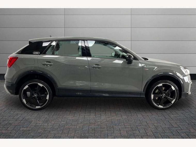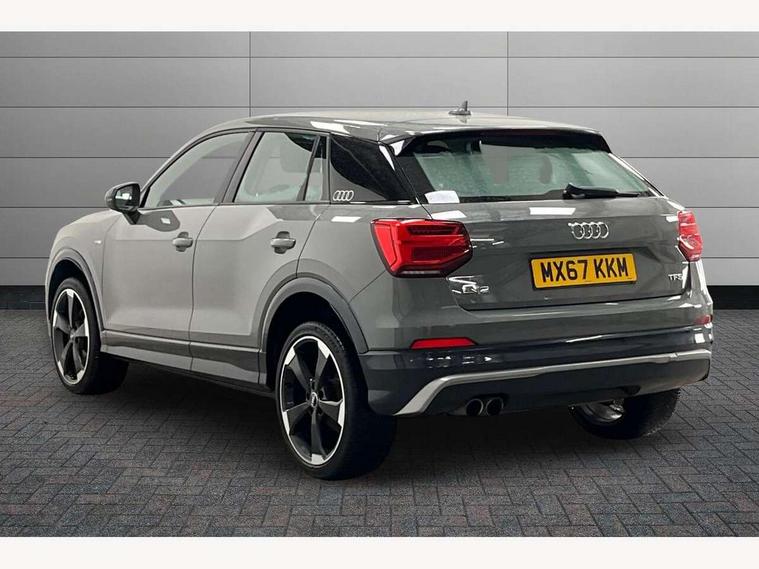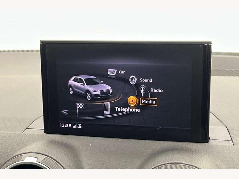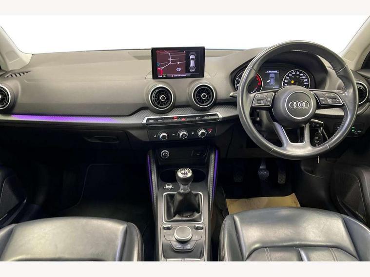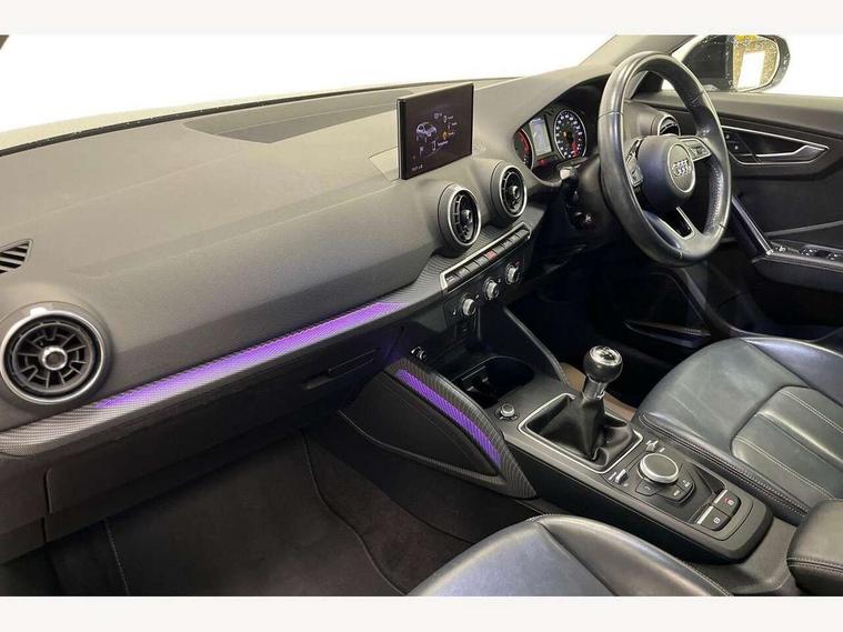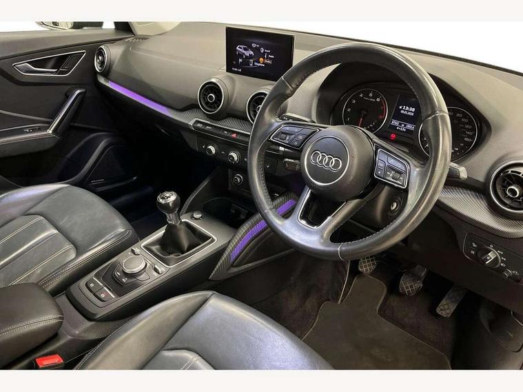 Audi drive select, Audi smartphone interface, Bluetooth hands free telephone connection, MMI - Multi Media Interface control system, MMI SD card Navigation, PAS, Service interval indicator, Voice control system, Audi music interface, Aux input, CD player, DAB digital radio module, MMI radio plus with 7" colour MMI screen and MMI controller, USB port, Brilliant black C-Pillar blade, Chrome exhaust tailpipe, Door mirror integrated indicators, Electrically adjustable and heated door mirrors, Front and rear electric windows, Headlight washers, LED headlights with LED rear lights + dynamic rear indicators, Rear wiper, S Line body styling, Solid paint, Sunband for windscreen, Centre console with storage/cupholders, Fine Nappa leather upholstery, Floor mats with contrast stitching, Front and rear door pockets, Front and rear headrests, Front centre armrest, Front sports seats, Glovebox, Height adjustable front seats, Height/reach adjust steering wheel, Illuminated door sills, ISOFIX on front passenger and rear outer seats, Storage compartment in rear centre console, Black styling pack - Q2, Extended interior upholstery pack - Q2, LED interior lighting pack advanced - Q2, Manhattan grey bumper pack - Edition 1 - Q2, 3x3 point rear seatbelts, ABS+Electronic Brake force Distribution, Curtain airbags, Driver and passenger airbags, Driver and passenger side airbags, EDL + ASR, Electrically operated child locks on rear doors, Electromechanical parking brake, ESP, Multi-Collision braking, Pre-sense front with pedestrian recognition, Seatbelt warning light, Tyre pressure monitoring system, Warning triangle and first aid kit, Locking wheel bolts, Remote central locking, Thatcham category 1 alarm + immobiliser, Aluminium interior trim, Illuminated format design inlays, 19" 5 arm rotor design anthracite black alloy wheels,