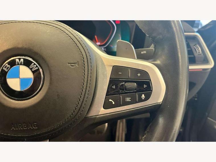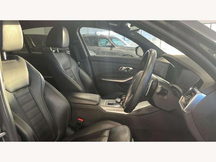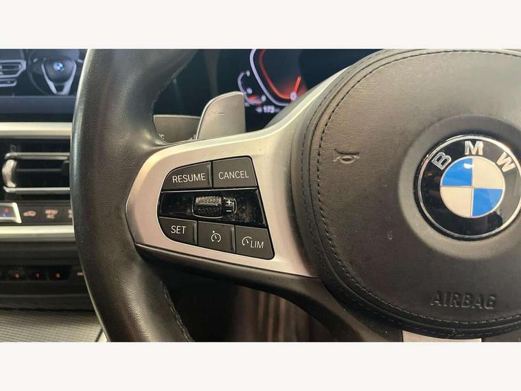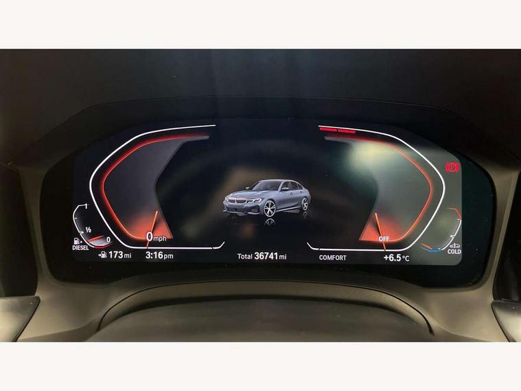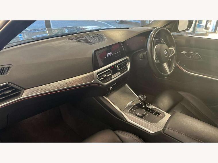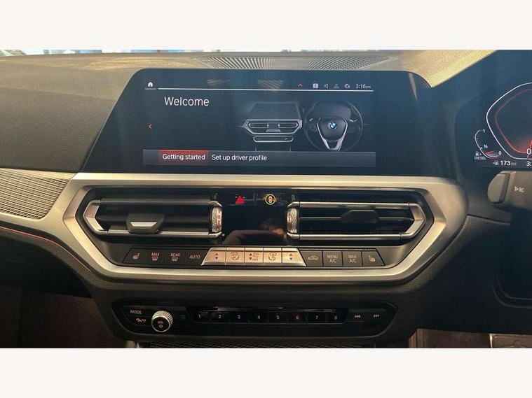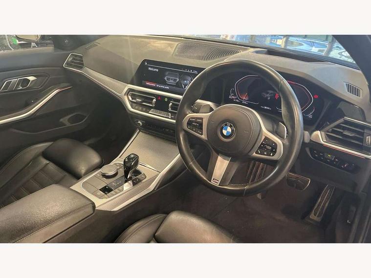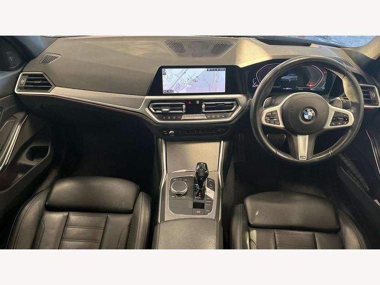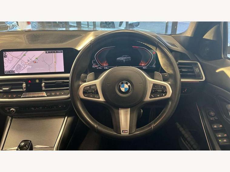 Active guard plus, Attentiveness assist, Auto start-stop, BMW iDrive controller on centre console, BMW Live Cockpit Professional sat nav system including 10.25" high resolution display and Intelligent Voice Assistant, BMW Online services, BMW Teleservices, Brake pad wear indicator in front and rear, Check Control warning system for monitoring of lights and door/luggage compartment open warning, Condition based service, Front/rear park distance control, Instrument cluster with speedometer with mph readout, tachometer, fuel gauge and oil temperature gauge, Oil sensor for level and grade, On board computer - average speed+fuel consumption, service interval, clock/date, odometer/trip meter, outside temperature display and ice warning, Optimum shift indicator, Pesonal profile, Variable sport steering, Battery cut-out switch, Diesel particulate filter, Drive performance control with ECO PRO comfort + sport mode, Electronic differential lock, Incorrect fuelling protection, Larger capacity fuel tank, Sport automatic transmission with steering-wheel mounted gearshift paddles and launch control, DAB tuner, Acoustic glazing, Active airstream chrome frame kidney grille with 8 high gloss black vertical slats, Automatic headlight beam throw control with load dependent regulating reaction, dynamic compensation of braking dive and acceleration squat, Black roof mouldings, Body colour - fuel filler flap, front and rear bumpers, door handles and mirror caps with integrated turn indicator + bottom segment in matt black, Dynamic brake lights, Extended LED headlights, Exterior mirrors - electrically folding with anti-dazzle, Front and rear bumper system with replaceable deformation elements, Front and rear electric windows with open and close fingertip control, anti trap facility and comfort closing, Front black door sill finishers with BMW designation, Green tinted heat protection glazing, Interior rear view electrochromatic mirror with automatic anti dazzle function, LED front fog lights, Left and right split exhaust tailpipes, Lightweight engineering, M aerodynamic body styling, M designation on left and right front side panels, M designation side badges, Matt black exterior B pillar, Model designation on right side of tailgate, Rain sensor with automatic headlight activation, Shark fin antenna, Two part LED tailights in L-shape with components in smoked glass, brake light, LED turn indicator and rear fog light, Visible VIN plate, Welcome lights in interior and door handle area, Windscreen wipers with integrated washing jets, 12V power socket in front storage compartment, 2 front cupholder in centre console with clamping elements and matt black inlay, 3 rear seats with non folding headrests with 3 point seat belts, 3 spoke M leather steering wheel, 4 pieces lashing eyelets in luggage compartment, 40:20:40 split folding rear bench seat, Ambient lighting, Anthracite headlining, Armrest integrated in front and rear door trim + front centre console armrest, Centred top Luggage compartment lights, Four grab handles integrated in roof lining, Front and rear door pockets, Front and rear velour floor mats, Front sport seats, Heated driver and front passenger seats, Height adjustable mechanically and infinitely variable steering column, Illuminated glove compartment with separate small compartment, Interior lighting - front centre over interior mirror with soft light, rear centre and front and rear footwell lighting, Rear centre armrest with 2 cupholders, Rear centre console with storage compartment and ventilation grille, Steering column length adjustment lever, Sunvisors with vanity mirrors and ticket pocket, Three zone automatic air conditioning, Through loading system with 40/20/40 split folding rear seat, Toolkit located in luggage compartment, Vernasca leather upholstery, Connected pack professional - 3 Series Saloon/Touring, M Aerodynamics pack - 3 Series Saloon/Touring, 2 tone horn, ABS, Automatic Stability Control (ASC), BMW emergency call, Brake assist function, Brake drying, Brake energy regeneration, Braking pre-tensioning, Child proof locking system in rear door, Child seat ISOFIX attachment rear outer seats, Cornering brake control (CBC), Crash sensor activating central locking release, hazard warning lights, fuel cut off, interior lighting + activation of safety battery terminal clamp, Driver and front passenger front and side airbags with passenger deactivation and ITS front and rear head airbags, Dynamic brake control, Dynamic Traction Control - DTC, Electromechanical parking brake with automatic drive away release and auto hold function, Hill start assist, Seat belt security check for driver and front passenger, Side impact protection, Three 3 point seat belts on all seats including front belt stopper, pyrotechnic belt tensioners and belt force limiters, Tyre pressure monitoring with three level warning strategy, Variable torque distribution, Ventilated front and rear disc brakes, Warning triangle and first aid kit, Alarm system (Thatcham 1) with remote control and electronic engine immobiliser, Central locking switch for all doors, fuel filler cap and luggage compartment, Remote control with integrated key one button open/close vehicle and windows, sole opening of the luggage compartment lid and panic mode, Selectable automatic lock when driving away, Start/stop button with Comfort Go keyless engine start and auto Start/stop deactivation button, Vehicle key with M specific designation, Reduced rolling resistance tyres,