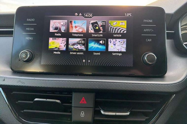 Bluetooth system, E-call, Front assist system, PAS, Service indicator, Speed limiter, Wireless Smartlink for Apple CarPlay (wired for Android Auto), 8 Speakers, Auxiliary input socket, DAB Digital radio, Body colour bumpers, Body colour door mirrors and handles, Chrome grille surround, Dimming rear view mirror with black surround, Electrically adjustable and heated door mirrors, Front and rear electric windows, Headlight range control, Heated rear window, LED rear lights - low functionality, LED third brake light, Light sensors, Rain sensor, Rear fog lights, Rear side wing doors, Rear wiper, 12V Accessory socket in centre console, 3 seat bench in 2nd row, Chrome inner door handles, Cloth upholstery, Front head restraints, Glove compartment with illumination, Ice scraper, Isofix child seat fittings on outer rear seats, ISOFIX on front passenger seat, Manual lumbar support for front seats, Rake/reach adjustable steering wheel, Reading lights, Single front passenger seat, Sun visors with illumination on front passenger, Textile floor mats, Third rear headrest, Top tether for front passenger seat, Umbrella in driver's door, 3x3 point rear seatbelts, Airbags - driver and front passenger, ESP, Front passenger airbag deactivation switch, Front side airbags with curtain airbags, Hill hold control, Manual parking brake, Manual rear child locks, One tone horn, Rear disc brakes, Seatbelt reminder for driver an co-driver, Traction control, Tyre pressure monitor, Anti-theft alarm system with interior monitoring, backup horn, towing protection and remote central locking with SAFE system, Anti-theft wheel bolts, Electronic engine immobilizer,