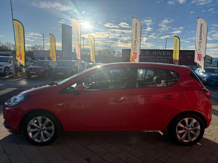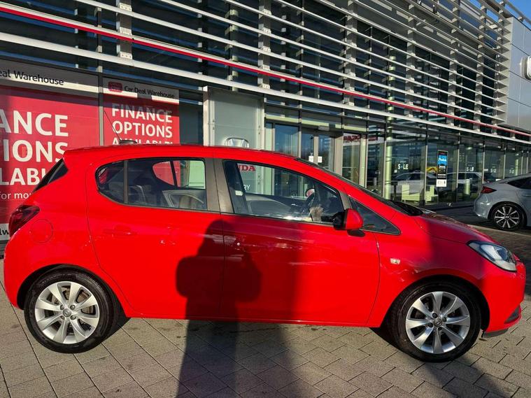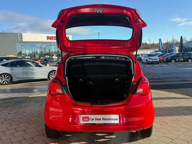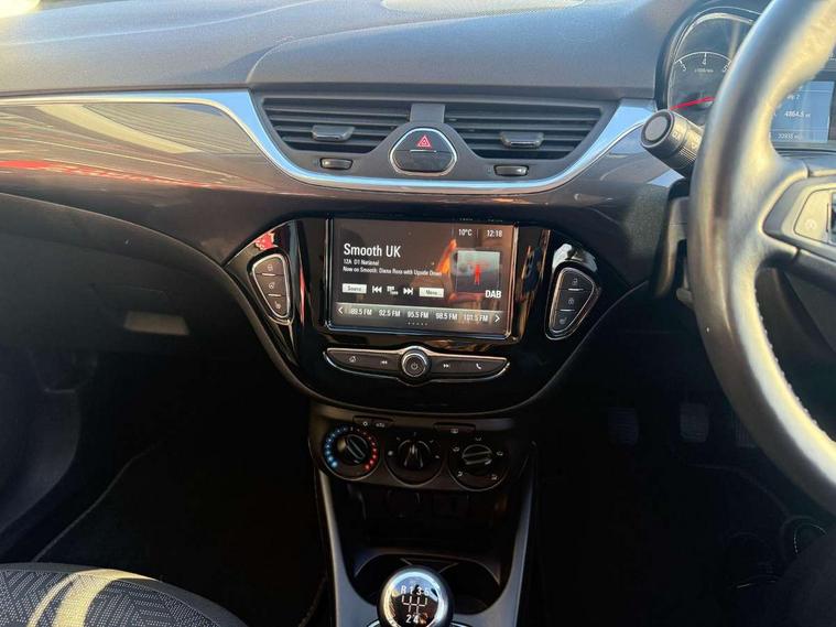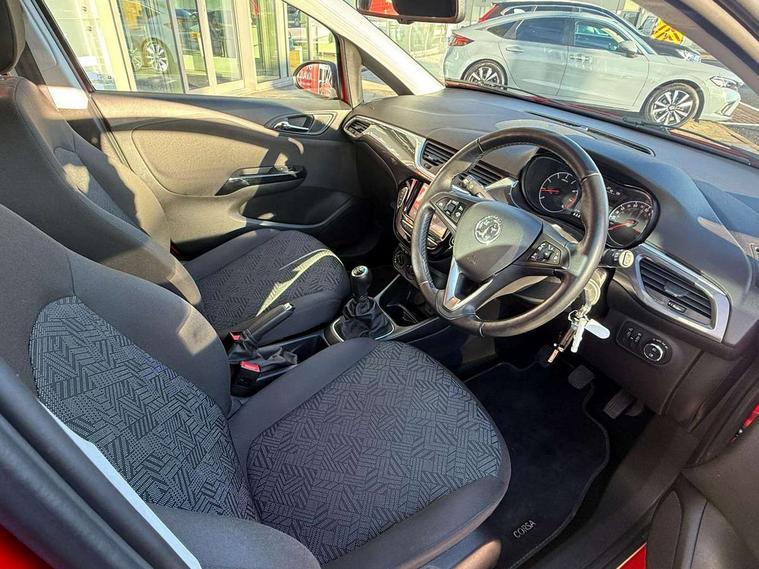 Apple car play/Android Auto, Central facia display, Cruise control + speed limiter, Digital fuel gauge with low fuel warning light, Digital water temperature gauge, Electric speed sensitive power steering, Exterior temperature gauge, Lights on audible warning, Rev counter, Service indicator, Speed warning indicator, Speedometer, Trip computer, White graphics on black background, Front anti roll bar, Steering wheel mounted audio/cruise controls, Black foil on B-pillars, Body colour bumpers, Body colour door handles, Body coloured door mirrors, Chrome front grille, Dipping rear view mirror, Door to door illumination, Electric adjustable/manual folding heated door mirrors (wide angle on driver's side), Electric headlight beam leveling, Electrically operated front windows with safety auto reverse/one touch facility, Front fog lights with black surround, Halogen headlights, Hazard warning lamps, Headlamp levelling, Heated rear window, Heated windscreen, High level LED centre brake light, Intermittent rear wash/wipe, Laminated windscreen, LED daytime running lights, Rear fog lights, Rear wiper, Side window demist vents, Two speed windscreen wipers with variable intermittent wipe, Welcome lighting, Windscreen demist vents, 12V electrical accessory socket in front, 3 spoke steering wheel, Anti submarining ramps in all seats, Centre console with cupholders, Chrome gear knob, Chrome interior door handles, Cloth upholstery, Comfort front seats, Driver's and front passenger's sunvisors, Driver's and front passenger's tiltable assist handles, Driver's and passenger's vanity mirrors with flip up cover, Driver's vanity mirror, Four adjustable facia vents, Front courtesy lights, Front door pockets, Front map reading lights, Front seat belt pre-tensioners with load limiters, Glovebox with lid, Grab handles, Height adjustable driver's seat, Height adjustable front headrests, Height adjustable rear head restraints with adjustable backrest, Illuminated luggage compartment, Instrument panel light dimmer, Interior tailgate handles, Isofix child seat mounting points on outer rear seats, Load restraining lashing points, Luggage compartment cover, Multi function steering wheel, Pollen filter, Reach + rake adjustable steering column, Rear courtesy lights, Rear door pockets, Rear reading lights, Reclining front seats, Storage box on driver's side lower facia, Stowage facility for luggage compartment cover behind rear seats, Twin gas assisted tailgate struts, Sight and light Pack - Corsa, Winter pack - Corsa, Anti-lock braking system (ABS), Brake assist function, Electronic brake force distribution, Electronic Stability Programme, Energy absorbing steering column, Front and rear seatbelt reminder, Front and rear seatbelt unfastened audible warning and warning light, Front seatbelt force limiters, Gas pressure dampers, Height adjustable front seatbelts, Hill start assist, Manual passenger airbag deactivation function, Pedal release system, Rear child proof door locks, Reinforced passenger safety cell, Side impact protection beams, Six airbags - Driver's dual stage airbag/front passenger's dual stage airbag/front seat side impact airbags/full size curtain airbags, Three 3 point rear seatbelts, Three inertia reel lap/diagonal seatbelts, Traction control, Tyre pressure monitoring system, Electronically protected audio, Engine Immobiliser & Deadlocks, Key left in ignition audible warning, Locking wheel bolts, Remote control central locking, Visible vehicle identification number, Rhutenium facia with chrome effect inserts,