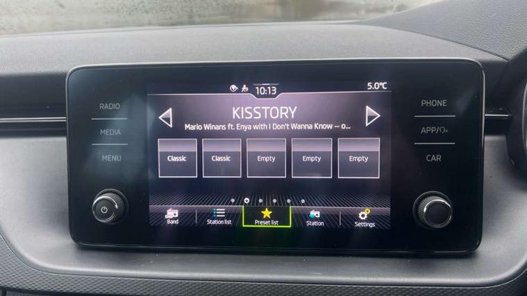 Bluetooth system, E-call, Front assist system, PAS, Service indicator, Speed limiter, Wireless Smartlink for Apple CarPlay (wired for Android Auto), 8 Speakers, Auxiliary input socket, DAB Digital radio, Body colour bumpers, Body colour door mirrors and handles, Chrome grille surround, Dimming rear view mirror with black surround, Electrically adjustable and heated door mirrors, Front and rear electric windows, Headlight range control, Heated rear window, LED rear lights - low functionality, LED third brake light, Light sensors, Rain sensor, Rear fog lights, Rear side wing doors, Rear wiper, 12V Accessory socket in centre console, 3 seat bench in 2nd row, Chrome inner door handles, Cloth upholstery, Front head restraints, Glove compartment with illumination, Ice scraper, Isofix child seat fittings on outer rear seats, ISOFIX on front passenger seat, Manual lumbar support for front seats, Rake/reach adjustable steering wheel, Reading lights, Single front passenger seat, Sun visors with illumination on front passenger, Textile floor mats, Third rear headrest, Top tether for front passenger seat, Umbrella in driver's door, 3x3 point rear seatbelts, Airbags - driver and front passenger, ESP, Front passenger airbag deactivation switch, Front side airbags with curtain airbags, Hill hold control, Manual parking brake, Manual rear child locks, One tone horn, Rear disc brakes, Seatbelt reminder for driver an co-driver, Traction control, Tyre pressure monitor, Anti-theft alarm system with interior monitoring, backup horn, towing protection and remote central locking with SAFE system, Anti-theft wheel bolts, Electronic engine immobilizer,