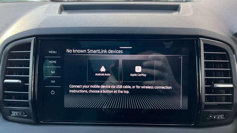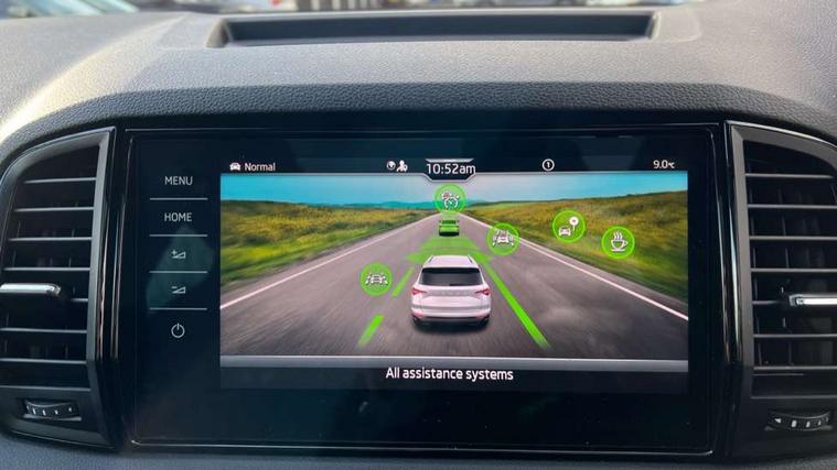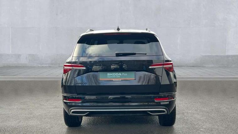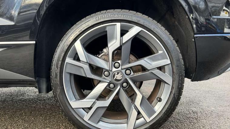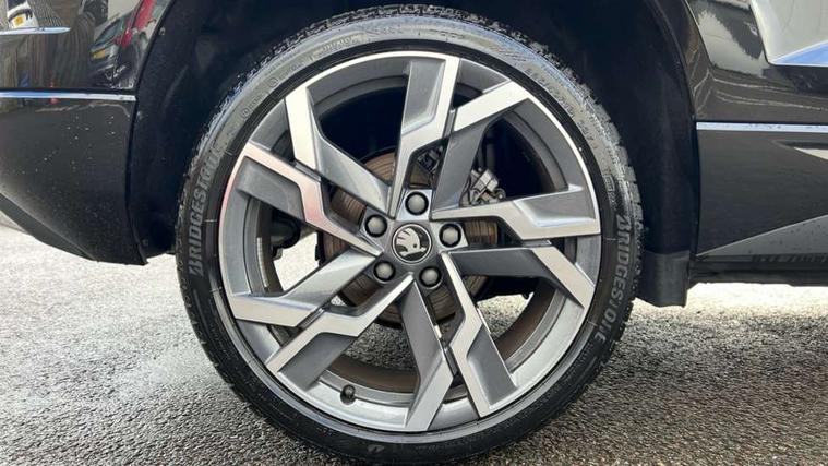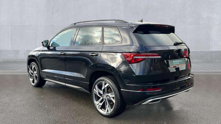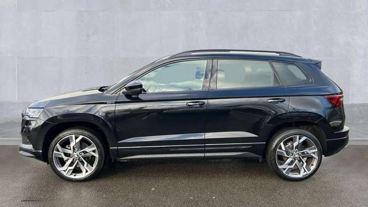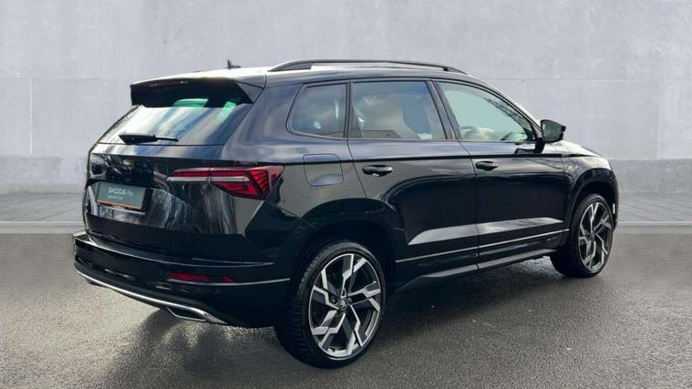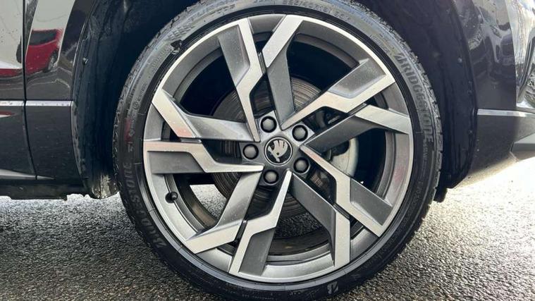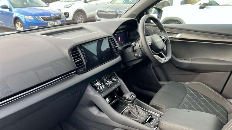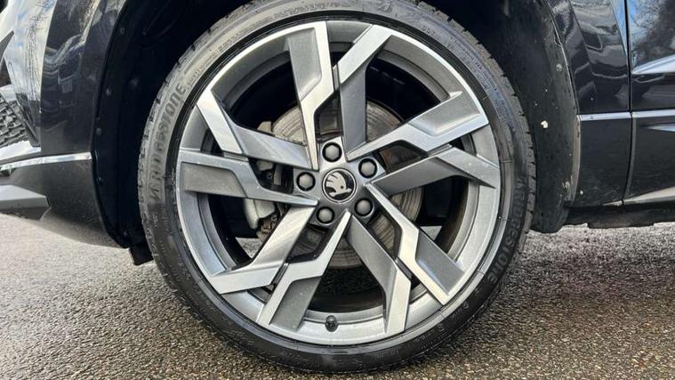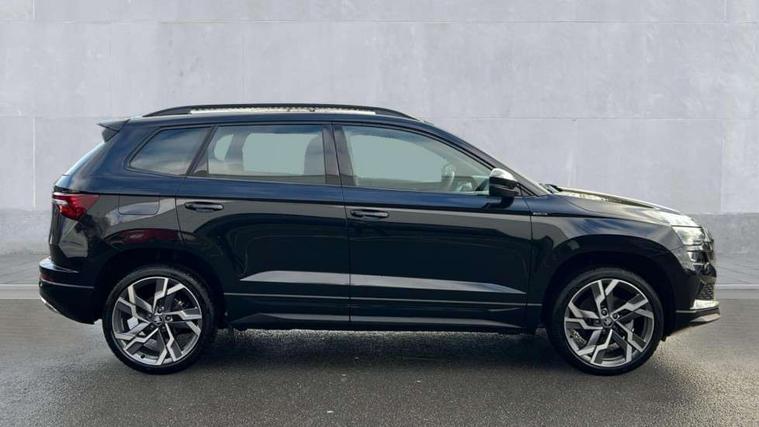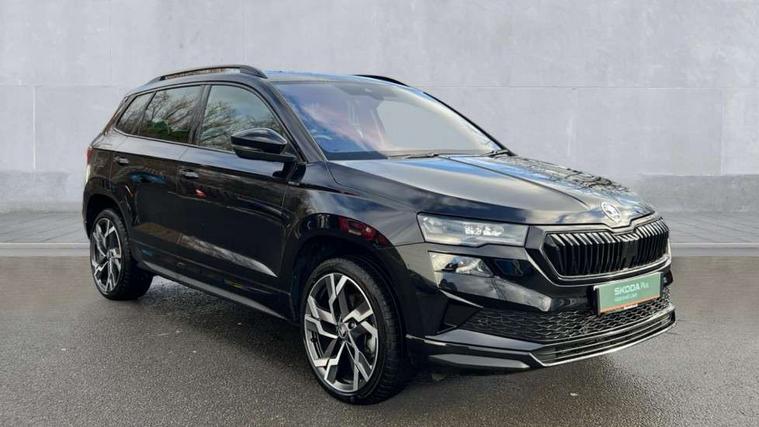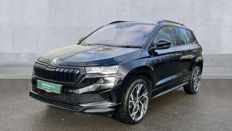 Advanced driver attention and drowsiness monitor, Emergency services call system, Outside temperature gauge, Sensor for driver assistance systems, Service interval indicator, SmartLink wireless for Apple and wired for Android, Start/stop system with regenerative braking, Traffic sign recognition, USB C Port x 2 in front centre console, Virtual Cockpit - 10.25" digital display, Virtual pedal with electrically operated boot door, Wireless smartphone charging, DAB radio with Bluetooth, USB connection, Acoustic glass, Aero front windscreen wipers with intermittent function, Auto dimming rear view mirror with light and rain sensors, Black door mirrors, Black electric window control buttons, Black radiator grille, Black roof rails, Body colour door handles, Electric front and rear windows with child proof lock, Extended rear roof spoiler, Front door steps with SportLine logo, Heated rear windscreen, LED daytime running lights, LED rear lights with high functionality welcome effect and dynamic indicators, Light assistant (coming/leaving home/tunnel light), Panoramic sliding sunroof, Plastic scuff plates in door apertures, Privacy glass, Protective door side sills in body colour, Rear diffuser, Rear side wing doors, Rear window wiper with washer system and intermittent control, Safety reflectors on front doors, Skoda lettering on tailgate in black, Sportline badge on front fender, Sports front and rear bumpers, Third brake light, Unique dark chrome design logo on alloy wheels, 1.5 litre bottle holders in driver and front passenger door panels, 12V socket in boot, 12v socket in front centre armrest with storage compartment and rear air vents, 2 x Tablet holder, 3 rear height adjustable headrests, 3 seat bench in 2nd row, 3 spoke sports leather heated multifunction steering wheel with DSG paddles, 4 foldable roof handles with rear coat hooks, Black floor carpet, Cargo elements in boot, Chrome inner door handles, Foldable hooks in the boot, Front head restraints, Height adjustable front three point seats belts with tensioners, Height/reach adjust steering wheel, Ice scraper, Illuminated glovebox, Illuminated luggage compartment, Isofix child seat preparation for front passenger seat, Isofix child seat preparation outer rear, Manual lumbar support for front seats, Pen holder, Pollen filter, Rear backrest release from boot, Rear boot cover, Rear package tray, Rear reading lights, Rear seats fixed folding and divided 60:40, Rubbish bin door, Safety vest holder, Single front passenger seat, Skoda lettering on steering wheel, Sportline decorative inserts, Storage box in upper central dashboard closed, Sunvisors with illuminated vanity mirrors, Textile floor mats, Ticket holder, Titan black interior ceiling, Umbrella under passenger seat, Under passenger seat storage compartment, Columbus pack - Karoq, LED Interior lighting pack with Skoda welcome logo - Karoq, Light Pack - Karoq, Non Smokers pack, Performance pack - Karoq, Winter plus pack with heated front and rear seats - Karoq, Automatic door unlocking in case of crash, Automatic fuel cut off in case of crash, Driver airbag, Electronic parking brake with auto hold function, Emergency rear braking signal, ESC (incl. ABS+MSR+ASR+EDS+HBA+DSR+RBS+MKB), Front side airbags, Head airbags, Hill hold control, Knee airbags, Passenger airbag with switch-off function, Pedestrian monitor, Seatbelt reminder signalisation and pretensioner for all seats, Three point seatbelts rear, Two tone horn, Tyre pressure monitor, Alarm with interior monitoring, back up horn and tilt sensor with safe function, Electronic engine immobiliser, Keyless entry and start/stop, Remote central locking with 2 remote folding keys, Black air vent surround, Black centre console, carbon door decor, Satin black dashboard, Satin black door trim, 19" Sagittarius anthracite alloy wheels, Anti-theft wheel bolts protection, Breakdown and tool kit,