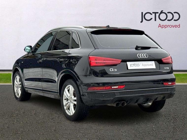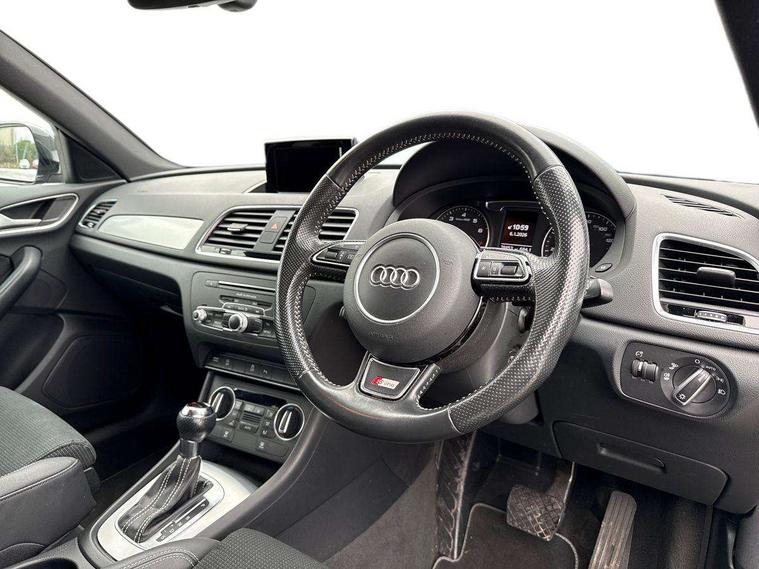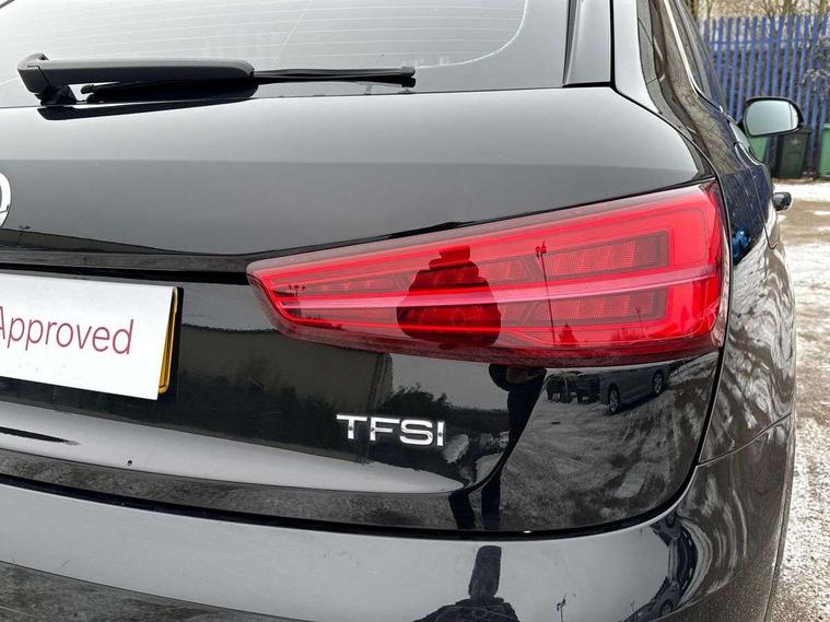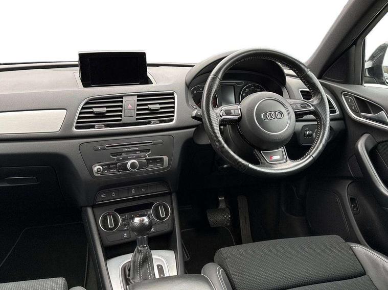 6.5" colour display screen, Audi drive select, Cruise control, Electro-mechanical PAS, Low washer fluid indicator, MMI - Multi Media Interface control system, On board computer, Remote electric boot opening/closing, Service interval indicator, Voice control system, Dynamic suspension, Audi music interface, DAB digital radio module, Acoustic windscreen, Aluminium window surround, Auto dimming rear view mirror, Body colour door mirrors, Body coloured bumpers, Chrome exhaust tailpipe, Coming home function, Door mirror integrated indicators, Front and rear electric windows, Front fog lights, Front lip spoiler, Heated windscreen washer jets, LED daytime running lights, LED headlights with headlight washers, LED rear lights, Light and rain sensor for auto activation of lights and windscreen wipers, Loading sill protector in stainless steel, Rear diffuser with platinum insert, Rear wiper, S Line body styling, Sunband for windscreen, 12V socket in rear centre console, 3 spoke multi-function Q design steering wheel with paddle shift, Aluminium door sill trims, Black cloth headlining, Door sill trim strips, Dual zone climate control, Electric front lumbar adjustment, Front and rear headrests, Front and rear velour floor mats, Front centre armrest with storage compartment and angle adjustment, Front sports seats, Height/reach adjust steering wheel, ISOFIX on front passenger and rear outer seats, Jack and tool kit, Perforated leather gearknob, Retractable luggage cover, Split fold rear seat, Storage compartment and 12V socket, Under floor storage in luggage area, 3x3 point rear seatbelts, ABS+Electronic Brake force Distribution, Curtain airbags, Driver and passenger airbags, Driver and passenger side airbags, EDL + ASR, Electrically operated child locks on rear doors, Electromechanical parking brake, ESP, First aid kit, Front passenger airbag deactivation, Head airbags, Seatbelt warning light, Tyre pressure monitoring system, Warning triangle, Locking wheel bolts, Remote central locking, Thatcham category 1 alarm + immobiliser, Matt brushed aluminium fascia and door trim inlays,
