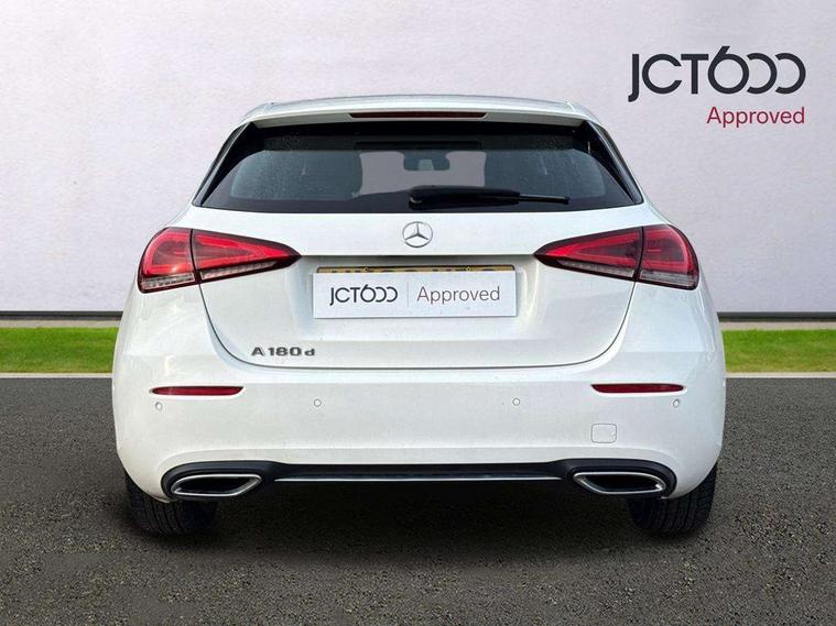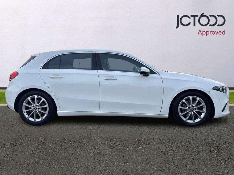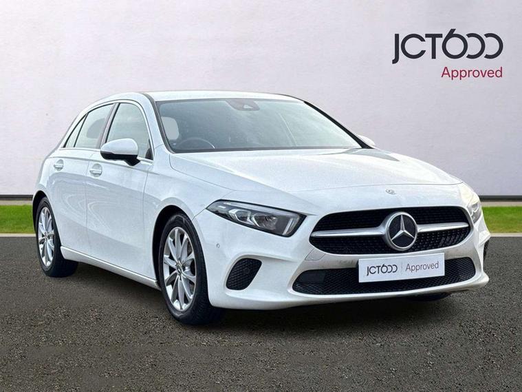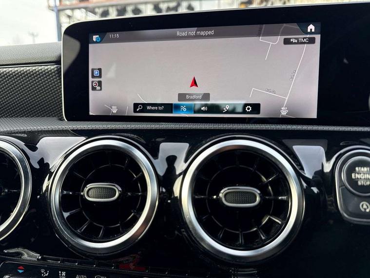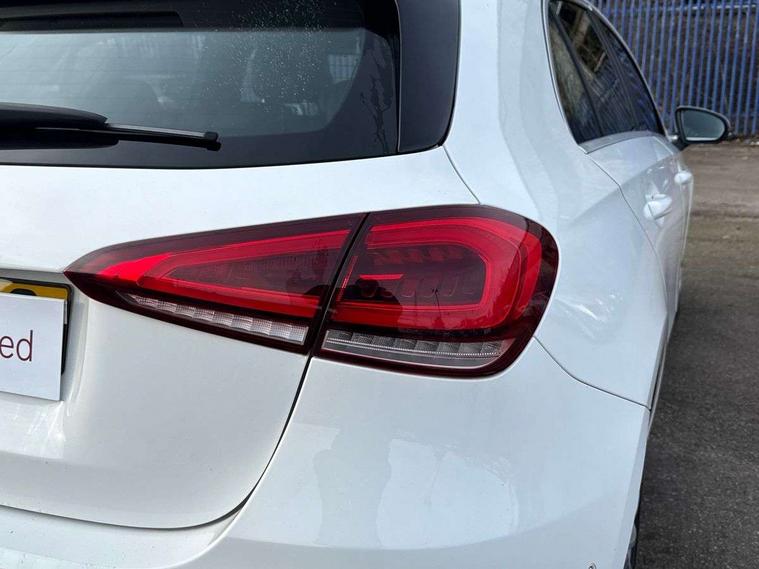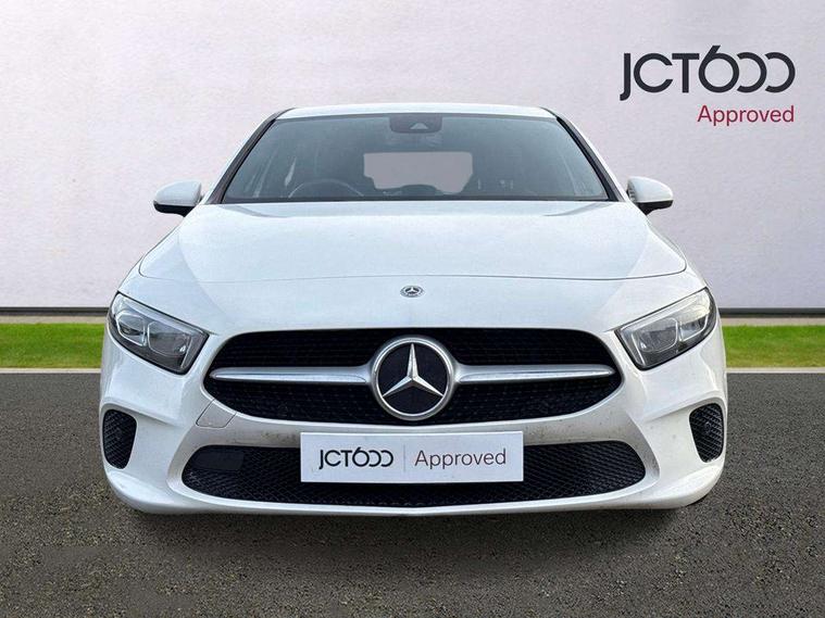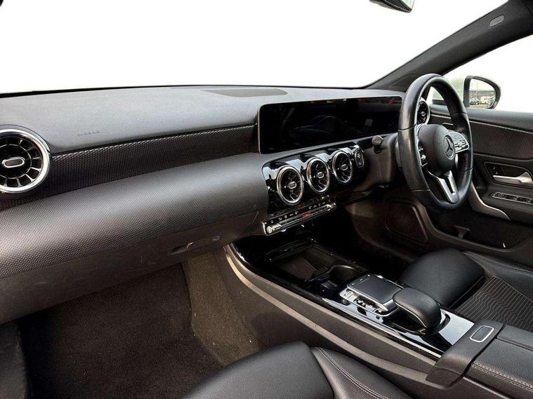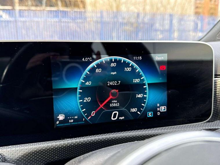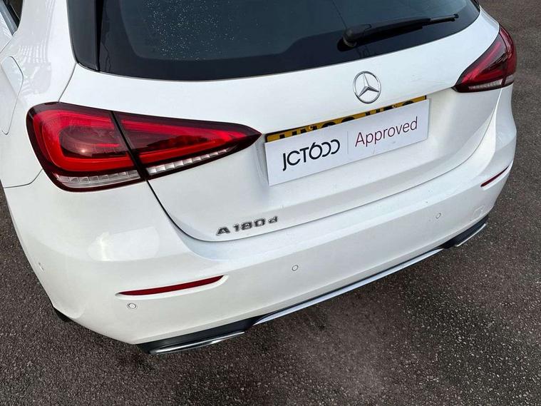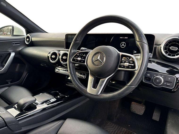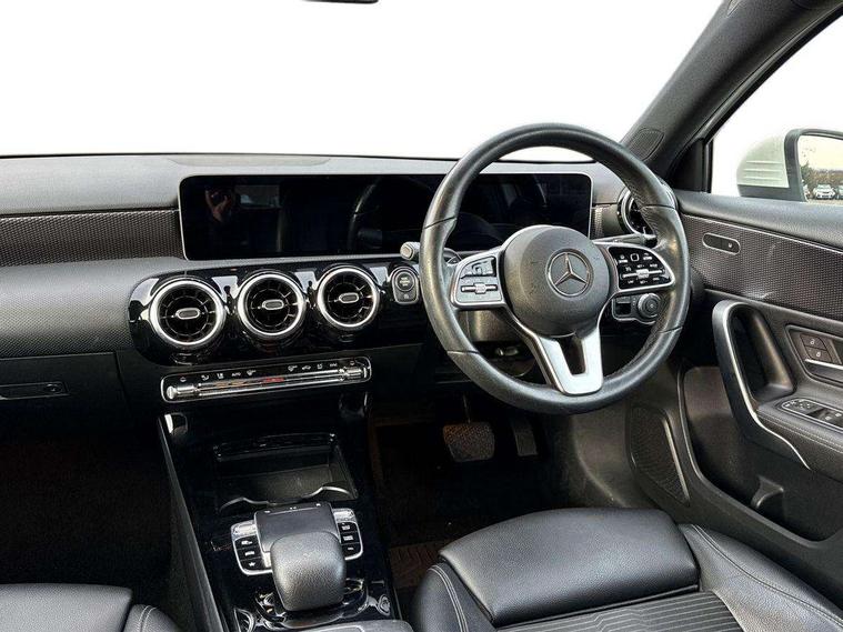 10.25" media display, Active lane keep assist, Active park assist with parktronic system, Attention assist, Bulb failure indicator, Cruise control + speed limiter, Direct steering, DYNAMIC SELECT with a choice of driving modes (ECO, Comfort, Sport, Sport+ and Individual), External temperature gauge, Low fluid warning light, Mercedes connect me with remote online services, Radio aerial integrated into roof spoiler, Reversing camera, Service indicator (ASSYST PLUS), Speed sensitive power steering, Stop/start system, Trip computer, Voice control system, Warning lamp for direction indicators, Lowered comfort suspension, 2 USB ports in centre console, DAB Digital radio, MBUX Multimedia system including digital instrument cluster and phone mirroring, Adaptive brake lights, Auto dimming driver's door mirror, Auto dimming rear view mirror, Body colour bumpers, Body colour door handles, Body colour side skirt, Body coloured door mirrors, Chrome beltline trim, Chrome weather strip, Diamond radiator grille with black pins with one louvre in silver + chrome insert, Electric adjustable heated door mirrors, Electric folding door mirrors, Electric front windows, Electric rear windows, Headlamp assist, Heated rear window with timer, High level third brake light, LED daytime running lights, LED Headlights, LED rear lights, Rain sensor windscreen wipers, Rear fog lights, Rear wiper, Twin Trapezoidal tailpipes, 1/3 to 2/3 split folding rear seats, 12V socket, 3 spoke leather multifunction sports steering wheel, Adjustable head restraints, Artico man-made leather upholstery, Auto Mercedes-Benz child seat recognition sensor, Black headlining, Controller on centre console with chrome surround, Dual zone automatic climate control, Exit lights, Floor mats, Footwell lights, Front and rear reading lights, Front centre armrest with storage compartment, Front door sills with Mercedes benz lettering, Front head restraints, Front seat backs luggage nets, Gearshift paddles on steering wheel, Heated front seats, Height adjustable front seats, Height/reach adjustable steering column, Illuminated cup holders, Illuminated glovebox, Illuminated storage compartment, Interior door handle illumination, Isofix rear child seat preparation, Load securing rings in luggage compartment, Luggage compartment cover, Oddments tray lighting, Reading lights, Rear head restraints, Storage compartment under load area floor, Sunvisors with illuminated vanity mirrors, Touchpad, Twin front cupholders, Seat comfort pack - A Class, 3 rear 3 point seatbelts, ABS with Brake Assist, Active bonnet, Child proof door locks, Crash responsive emergency lighting, Drivers knee airbag, Dual stage driver/passenger airbags, Electronic parking brake, ESP with ASR, Front and rear seatbelt reminder, Front head airbags, Front passenger seat occupancy sensor, Front side airbags, Hill start assist, Tyre pressure monitoring system, Warning triangle and first aid kit, Window airbags, Alarm system/interior protection/immobiliser, Keyless ignition, Remote central locking, Carbon fibre interior trim finishers, Chrome air vent surrounds, 17" 10 spoke light alloy wheels painted in vanadium silver, Tirefit sealant with electric air pump,