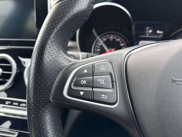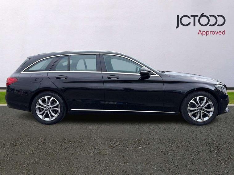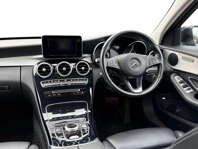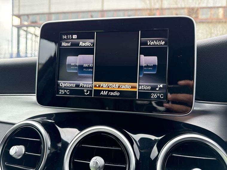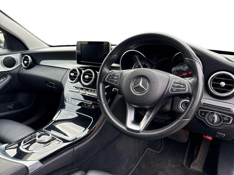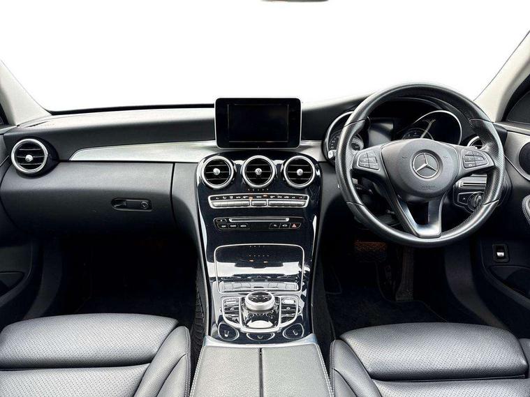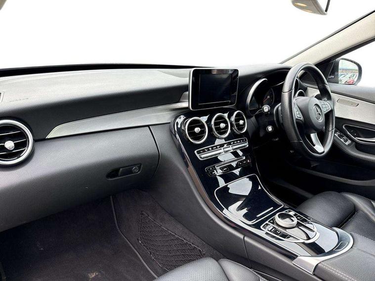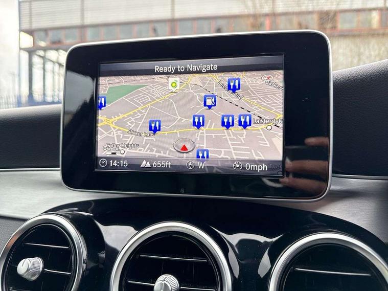 Active park assist with parktronic system, Attention assist, Bluetooth system, Collision prevention assist, DYNAMIC SELECT with a choice of driving modes (ECO, Comfort, Sport, Sport+ and Individual), Garmin Map Pilot navigation system with SD card, touchpad and voice control, Multi function trip computer, Multifunction colour display, Outside temperature gauge, Power opening/closing tailgate, Remote boot release, Service indicator (ASSYST PLUS), Speed sensitive steering, 2 USB ports in centre console, DAB Digital radio, Frontbass loudspeakers, Mercedes Audio 20 radio/single CD + telephone keypad, SD card slot, Adaptive brake lights, Body coloured bumpers, Electric windows one touch open/close, Electrically adjustable and heated door mirrors, Green tinted glass, LED daytime running lights, LED tail lights, Radiator grille with integral star and 2 louvres in matt iridium silver with chrome trim, Rain sensor windscreen wipers, Rear wiper, 2 cupholders in front centre console, 3 spoke leather steering wheel, 40:20:40 split folding rear seats, Auto Mercedes-Benz child seat recognition sensor, Dual zone automatic climate control, Electric front seat height adjustment, Front and rear head restraints, Front centre armrest with storage compartment, Gearshift paddles, Heated front seats, Height/reach adjustable steering column, Illuminated glovebox, Load compartment cover, Lumbar support, Multifunction steering wheel, Rear top tether child seat ISOFIX attachment, Sports seats, Sunvisors with illuminated vanity mirrors, Lighting pack - C class, Mirror pack - C Class, Seat comfort pack - C Class, Stowage space pack - C Class, 3 rear 3 point seatbelts, ABS with Brake Assist, Active bonnet, Adaptive brake system, Child proof door locks, Drivers knee airbag, Dual stage driver/passenger airbags, Electronic parking brake, ESP with ASR, Front passenger seat occupancy sensor, Front side airbags, Hill start assist, Rear seatbelt warning indicator, Tyre pressure monitoring system, Warning triangle and first aid kit, Window airbags, Alarm system/interior protection/immobiliser, Chrome surround in electric key, Remote central locking, Gloss black/aluminium interior trim, Tyre inflation kit,