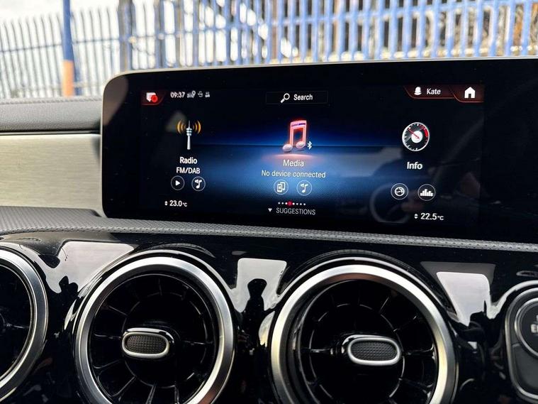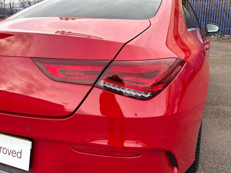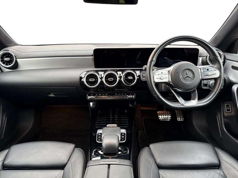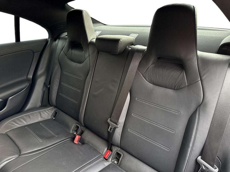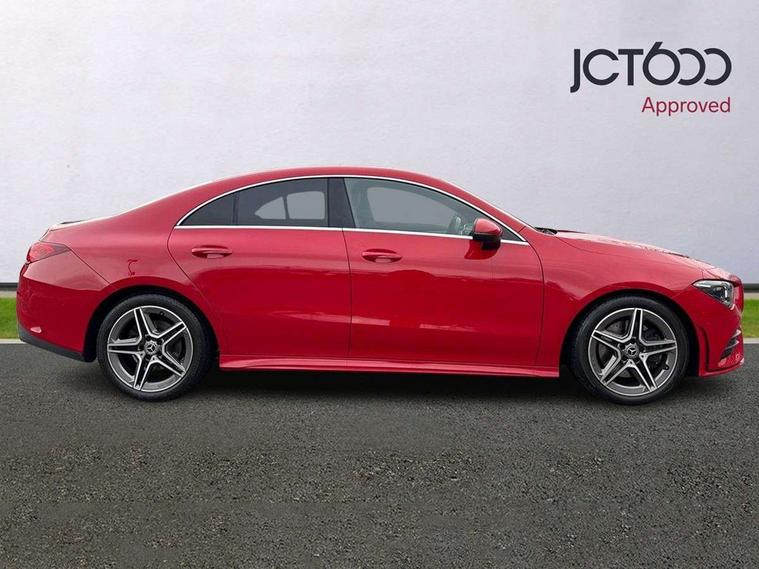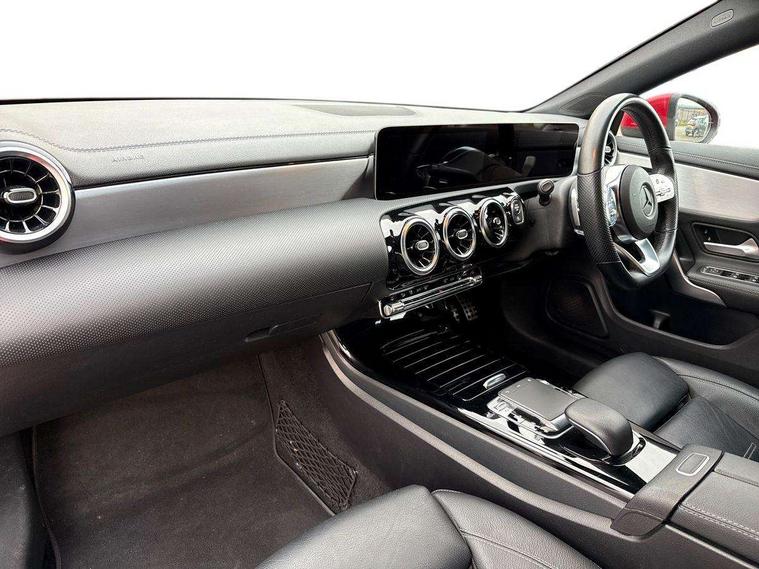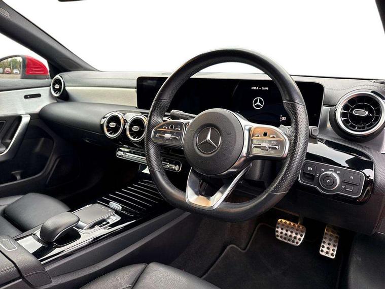 10.25 inch touchscreen central media display, 7 inch Instrument display with digital cockpit, Active lane keeping assist, Attention assist - Monitors steering behaviour and long journey fatigue, Cruise control with limiter, Direct steer system with speed sensitive power steering, Dual bluetooth interfaces, DYNAMIC SELECT with a choice of driving modes (ECO, Comfort, Sport, Sport+ and Individual), ECO start/stop function, Fluid level warning indicator for fuel, oil, coolant and washer fluid, Hard-disk navigation, Hey Mercedes Voice activation, Lamp failure indicator, Mercedes me connect including emergency call system, accident recovery, breakdown and maintenance management, Outside temperature gauge, Owners manual and service booklet in English, Pre-installation of private car share, Preinstallation for Mercedes Benz link, Radio aerial integrated into front and rear windshields, Service indicator (ASSYST), Smartphone integration with Apple CarPlay and Android auto, Speed limit assist, Trip computer in multifunction display with current consumption indicator, Wireless charging, 7G-DCT 7 speed automatic transmission, Lowered comfort suspension, Rear axle multi-link, Sporty engine sound system, DAB digital radio tuner, MBUX multimedia system with DAB digital radio and touchpad including satellite navigation, Mercedes Benz sound system (100 W) with 6 speakers, USB (type C) ports (2) in stowage compartment and 1 in front of centre console, Adaptive brake lights, AMG body styling with AMG front apron and rear apron and visible exhaust tailpipe trim elements, AMG bodystyling side skirts, Beltline strips and weather strip in chrome, Body colour bumpers, Body colour door handles with chrome inserts, Diamond radiator grille pins in chrome with silver painted louvres and chrome insert, Electric windows, Electrically adjustable and heated door mirrors with integrated LED indicators, Exhaust system with 2 Visible tailpipe trim elements and rear apron with trim in chrome, Headlamp assist automatic headlamp activation, Heated glass rear windscreen + timer control, High level LED third brake light, LED high performance headlamps with integrated LED daytime running lights, LED tail lamp, Privacy glass with dark tinting on rear side windows and rear window, Rain sensing windscreen wipers with two sensitivity settings, Rear fog lamp, Vehicle Monitoring, Vehicle Setup, 3 spoke flattened bottom nappa leather multifunction steering wheel with perforated leather in grip area, 40:20:40 split folding rear seat backrests, Air conditioning - Two zone thermotronic luxury automatic climate control with display, Air vents with surround in silver chrome, Automatic child seat recognition sensor, Black roof lining, Brushed stainless steel sports pedals with rubber studs, Floor mats with stitched AMG lettering, Front centre armrest with stowage, Front door sills with Mercedes Benz lettering, Front seat cushion length adjustment, Galvanished gear shift paddles on steering wheel, Heated front seats, Illuminated glove compartment stowage, Luggage net on driver/front passenger seat backrest, Manually adjustable front seats, Manually height and reach adjustable steering column, Rear interior lamp, Spectacles compartment for driver, Sport seats with fixed head restraints, Stowage compartment in centre console with retractable cover, Sunvisors with illuminated vanity mirrors, Touchpad on center console, Twin front cupholders, Two outer rear seat isofix and top tether child seat fixing points, Light and sight pack - CLA, Mirror pack - CLA, Parking package - CLA, Seat comfort pack - CLA, Active bonnet pedestrain safety measure which detects an impact and raises bonnet by 65mm, Active brake assist includes forward collision warning system with autonomous braking, Adaptive brake assist with hold function and hill start assist, Anti-lock braking system (ABS), Black seat belts, Bonnet with power domes, Brake pad wear warning indicator, Childproof locks manually operated for rear doors and electrically operated for rear power windows, Crash responsive emergency lighting, Driver and front passenger head and sidebags, Driver and front passenger windowbags, Drivers knee airbag, Dual stage driver and front passenger airbags, Electric parking brake, Electronic stability programme with acceleration skid control, ESP curve dynamic assist, Front and rear seatbelt reminder, Front brake callipers with Mercedes Benz lettering, Front passenger seat occupancy sensor, Three point rear seat belts, Tyre pressure monitoring system, Warning triangle and first aid kit, Alarm system with immobiliser and interior protection -Thatcham category 1, Keyless Go starting function, Remote central locking and crash sensor with emergency opening function, Light aluminium with longitudinal grain interior trim, 18" 5 twin spoke design alloy wheels painted in titanium grey with high sheen finish, Summer tyres, Tirefit tyre sealant kit,