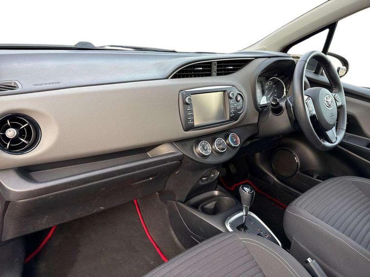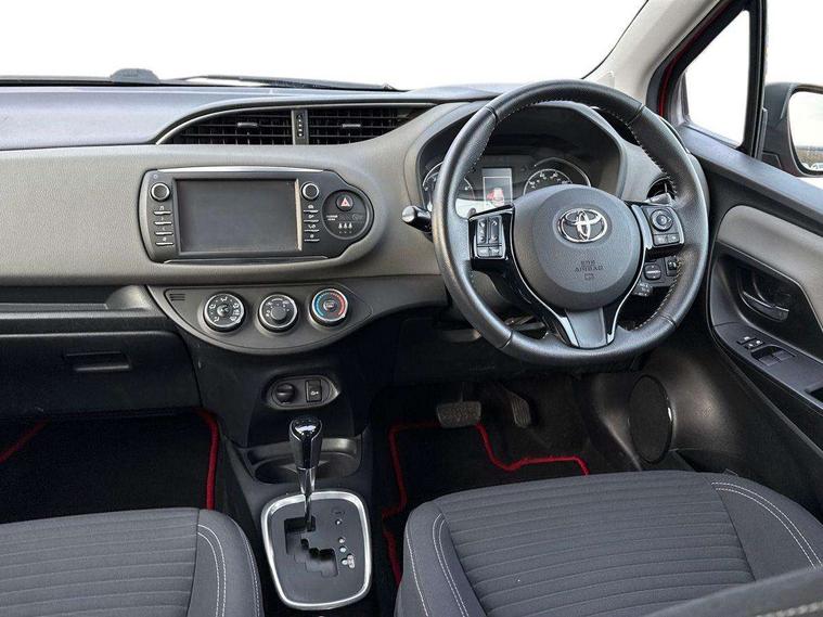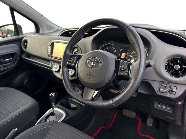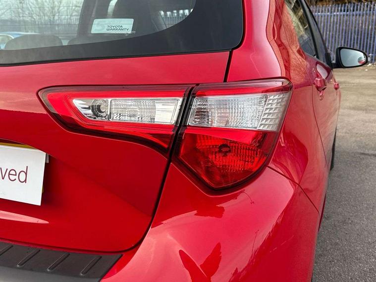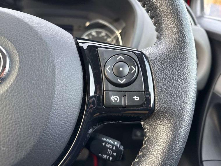 4.2" coloured LED TFT multi information display, Analogue speedometer, Analogue tachometer, Auto speed limiter, Bluetooth connectivity, Cruise control, External temperature gauge, Fuel indicator with low level warning, Key reminder warning, Lights on warning, Multi information display switches on steering wheel, Power Steering, Reversing camera, Trip computer, 6 speakers, Auxiliary input socket, Steering wheel mounted audio/telephone switches, Toyota Touch 2 with DAB, USB connection, Auto up and down function on drivers window, Automatic wipers, Black lower front grille, Body colour bumpers, Body colour door handles, Body coloured door mirrors, Daytime running lights, Electric adjustable heated door mirrors, Electric front windows, Follow me home headlights, Front fog lights, Headlight cut-off reminder, LED High mounted stop lamp, Manual dimming rear view mirror, Projector headlights, Rain sensitive windscreen wipers, Rear combination lights bulb type, Rear window defogger, Rear wiper, Turning signal integrated indicators in door mirrors, 12v power outlet - front, 3 adjustable rear headrests, 3 spoke leather steering wheel, 60/40 split folding rear seat, Active headrests, Boot light, Data Communication Module (DCM) connected services, Driver and front passenger personal light, Driver and front passenger Whiplash Injury Lessening seats, Driver/passenger vanity mirrors with covers, Front and rear cup holders, Front map reading lights, Front seats with lumbar support, Glovebox, Height adjustable driver's seat, Height adjustable front head restraints, Illuminated entry system, Isofix seat fixing, Leather gearshift, Manual air conditioning, Map pockets on the backs of the front seats, Pollen filter, Removable rear parcel shelf, Sliding front seats, Soft touch inner door garnish, Spirit fabric upholstery, Tilt/telescopic steering column, 3 point seatbelts on all rear seats, ABS+EBD+Brake assist, Collision mitigation braking system, Emergency brake light system (EBS), Front passenger airbag on/off switch, Front seatbelt reminder, Height adjustable front seatbelts with pre-tensioners and load limiters, Hill start assist control (HAC), Rear child proof door locks, Rear seat belt reminder, Road sign information display, Seatbelt warning lamp and buzzer, Supplemental restraint system (SRS) airbags - 7 airbags including driver, front passenger, curtain, side and knee airbags, Toyota safety sense including Road sign assist, Pre collision system, auto high beam and lane departure alert), Tyre pressure warning system, Vehicle stability control VSC + traction control, Engine immobiliser, Power and remote door locking, Soft touch instrument panel, Space saver spare wheel,