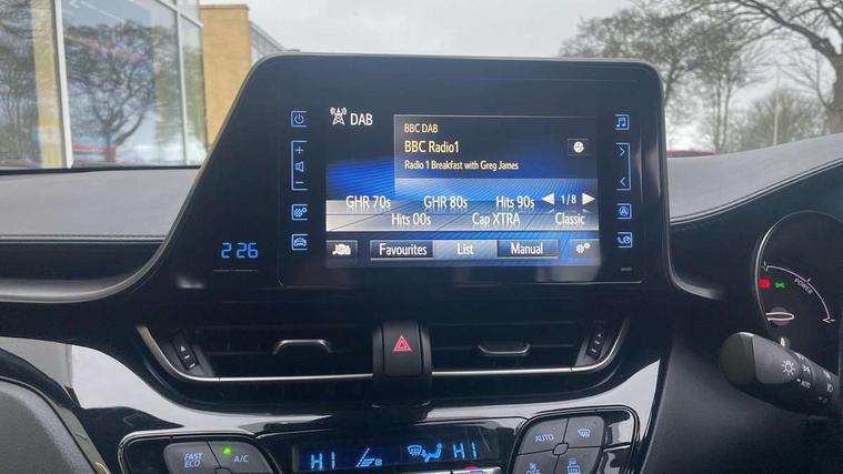 4.2" Colour TFT driver information display, Adaptive cruise control, Bluetooth system, Collision prevention assist, Lane departure warning system, Lights on warning, PAS, Reversing camera, Traffic sign recognition, Trip computer, Vehicle Stability Control (VSC), Auxiliary input socket, Steering wheel mounted controls, USB connection, Auto dimming rear view mirror, Auto high beam, Body colour door handles, Body colour heated door mirrors, Body coloured bumpers, Electric door mirrors, Follow me home headlights, Front and rear electric windows, Front fog lights, Heated rear windscreen, LED daytime running lights, Rain sensitive windscreen wipers, Rear spoiler, Rear wiper, Shark fin roof aerial, 12V Accessory socket, Child seat anchorage points, Chrome interior door handles, Cloth upholstery, Driver/passenger sunvisors and illuminated vanity mirrors, Dual zone automatic air conditioning, Folding rear seats, Front and rear door pockets, Front centre armrest, Front cupholders x 2, Front head restraints, Height adjustable drivers seat, Illuminated entry system, Leather gear knob, Nappa leather steering wheel, Rear headrests, Tilt/telescopic steering column, 3x3 point rear seatbelts, ABS+EBD+Brake assist, Airbag deactivation switch, Driver/Front Passenger airbags, Driver/front passenger side airbags, Drivers knee airbag, ESP + traction control, Front and rear curtain airbags, Hill start assist control (HAC), Rear child proof door locks, Road sign information display, Tyre pressure monitoring system, Alarm, Immobiliser, Remote central locking, Tyre repair kit,