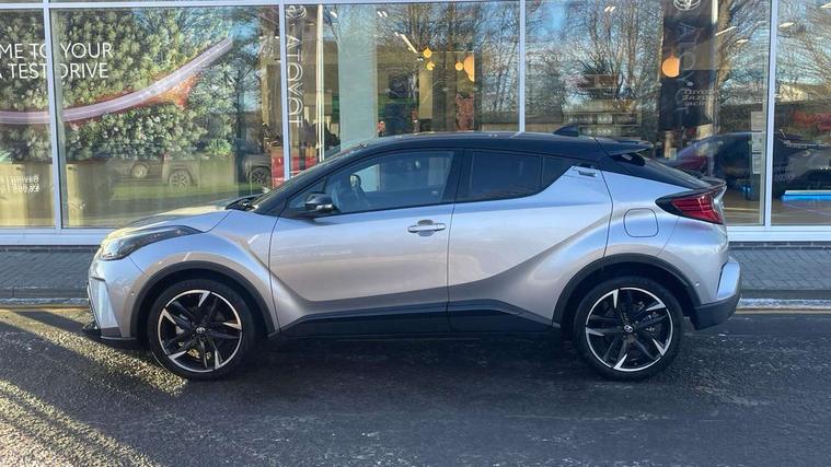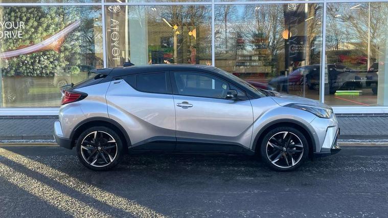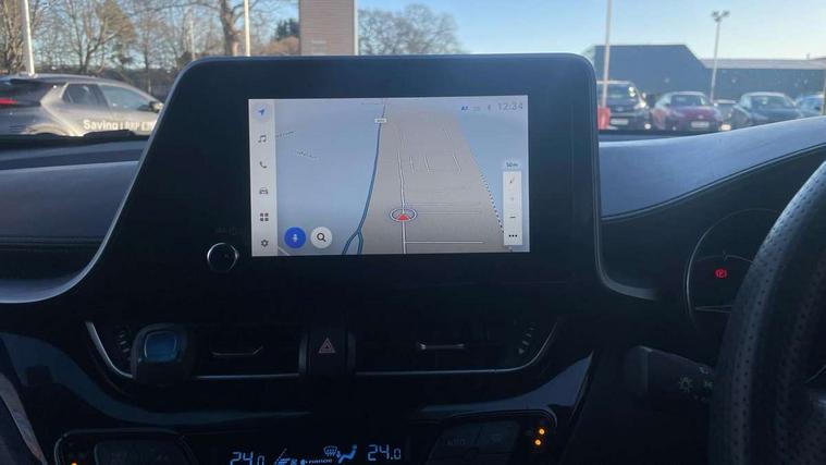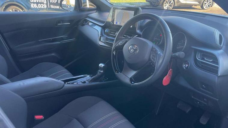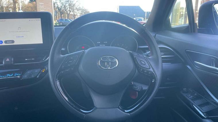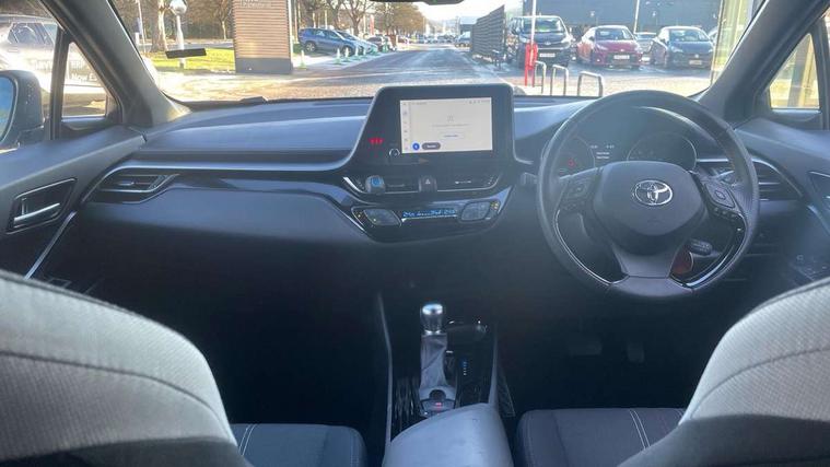 4.2" coloured TFT screen for multi-information display, Adaptive cruise control, Bluetooth connectivity, E-call, Electric power steering, Hybrid system indicator, Lane departure alert with steering control, Lane trace assist, Push button tailgate release, Remote boot door release in cabin, Remote boot door release in key, Reversing camera, Road sign assist - RSA, Simple Intelligent parking assist, Smart voice assist, Touch 2 Go navigation system, Trip computer, Voice recognition, Wireless smartphone integration, Vehicle Stability Control (VSC), 6 speakers, AM/FM radio, DAB Radio (Digital Audio Broadcasting), Toyota touch 2 multimedia system with 8" display, USB connector, Wi-fi connectivity, Adaptive front light system, Adaptive LED Headlights, Anti-jam protection on power windows, Auto high beam, Auto up and down function on all power windows, Automatic headlight levelling, Automatic headlights, Automatic headlights cut-off, Black and body coloured rear bumper, Black upper front grille, Body colour door handles, Body colour door mirrors, Body coloured front bumper, Boot door release with push button, Chrome front lower bumper, Electric heated door mirrors, Follow me home headlights, Front and rear power windows, Front spoiler lip in black, Headlight cut off reminder, Honeycomb lower front grille, LED daytime running lights, LED fog lights, LED front light guide, LED High mounted stop light, LED rear brake lights, LED rear combination lights, Noise reduction layer on front windows and windscreen, Power adjustable door mirrors, Privacy glass, Rain sensor, Rear sequential indicators, Rear side wing doors, Rear spoiler, Rear tailgate, Rear window defogger, Rear window wiper, Shark fin antenna, UV-filter on driver and passenger windows, UV-filter on rear windows, 12v power outlet - front, 3 rear headrests, 3 seat bench in 2nd row, 3 spoke perforated leather steering wheel, 60/40 split folding rear seat, Adjustable rear headrests, Adjustable speed limiter switch on steering wheel, Assist grips front and centre pillar, Audio and telephone switches on steering wheel, Black front door assist grips, Blue ambient lighting on front cup holders, Blue ambient lighting on front doors, Boot light, Chrome interior door handles, Cloth upholstery, Driver and front passenger personal light, Driver and front passenger Whiplash Injury Lessening seats, Driver and passenger seatback pockets, Dual zone automatic air conditioning, Floor mats, Front cupholders, Front head restraints, Front sports seats, Glovebox with internal light, Hard tonneau cover, Heated driver and front passenger seats, Hooks for luggage holding net, Humidifying Nanoe air purifier, Illuminated entry system, Isofix attachments on outer rear seats, Leather gearshift, Light on driver sun visor, Light on passenger sun visor, Manual telescopic steering wheel, Manual tilt steering wheel, Manually height adjustable driver seat, Manually height adjustable front passenger seat, Manually reclining driver seat, Manually reclining front passenger seat, Manually sliding driver seat, Manually sliding front passenger seat, Microphone on front personal light, Mirror on driver sun visor, Mirror on passenger sun visor, Multimedia switches on steering wheel, Pollen filter, Power adjustable lumbar support on driver seat, Shopping bag hooks, Single front passenger seat, Slow opening on lower glovebox, Voice recognition switch on steering wheel, Tech with parking sensor pack - C-HR, 16 Disk front wheel brake, 3x3 point rear seatbelts, ABS+EBD+Brake assist, Electronic parking brake, Front and rear seatbelt reminder, Front passenger airbag on/off switch, Hill start assist control (HAC), Pre collision system with pedestrian detection, Pre-tensioners and force limiters, Rear door child safety locks, SRS Airbags - Driver + Front passenger, front side, front and rear curtain and driver's knee airbags, Toyota safety sense, Tyre pressure monitoring system, Tyre pressure warning system, Acoustic vehicle alert system (AVAS), Glass-breaking alarm sensors, Immobiliser, Intrusion alarm, Intrusion sensor, Motion sensor alarm, Power door locks, Power passenger window lock, Remote central locking, Black lower dashboard, Black upper dashboard, Piano black console, Silver deco line on upper dashboard, 19" Black machined alloy wheels, Tyre repair kit,
