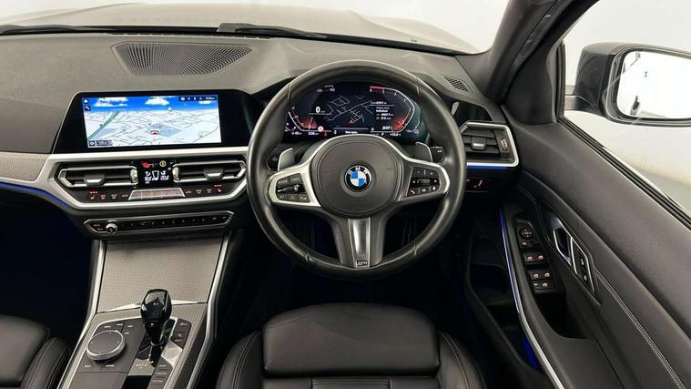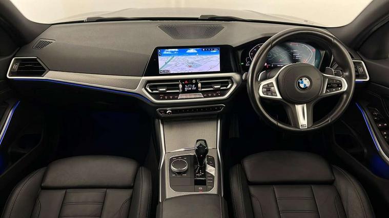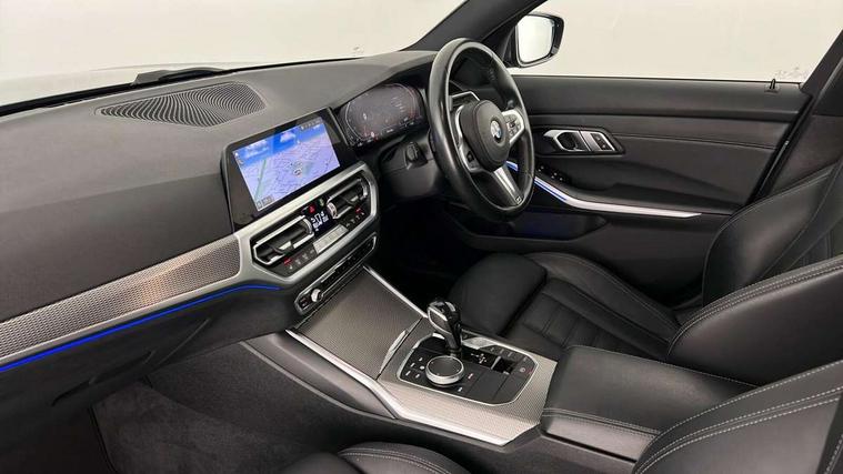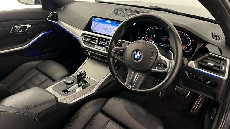 Active guard plus, Attentiveness assist, Auto start-stop, BMW iDrive controller on centre console, BMW Live Cockpit Professional sat nav system including 10.25" high resolution display and Intelligent Voice Assistant, BMW Online services, BMW Teleservices, Brake pad wear indicator in front and rear, Check Control warning system for monitoring of lights and door/luggage compartment open warning, Condition based service, Front/rear park distance control, Instrument cluster with speedometer with mph readout, tachometer, fuel gauge and oil temperature gauge, Oil sensor for level and grade, On board computer - average speed+fuel consumption, service interval, clock/date, odometer/trip meter, outside temperature display and ice warning, Optimum shift indicator, Pesonal profile, Variable sport steering, Battery cut-out switch, Diesel particulate filter, Drive performance control with ECO PRO comfort + sport mode, Electronic differential lock, Incorrect fuelling protection, Larger capacity fuel tank, Sport automatic transmission with steering-wheel mounted gearshift paddles and launch control, DAB tuner, Acoustic glazing, Active airstream chrome frame kidney grille with 8 high gloss black vertical slats, Automatic headlight beam throw control with load dependent regulating reaction, dynamic compensation of braking dive and acceleration squat, Black roof mouldings, Body colour - fuel filler flap, front and rear bumpers, door handles and mirror caps with integrated turn indicator + bottom segment in matt black, Dynamic brake lights, Extended LED headlights, Exterior mirrors - electrically folding with anti-dazzle, Front and rear bumper system with replaceable deformation elements, Front and rear electric windows with open and close fingertip control, anti trap facility and comfort closing, Front black door sill finishers with BMW designation, Green tinted heat protection glazing, Interior rear view electrochromatic mirror with automatic anti dazzle function, LED front fog lights, Left and right split exhaust tailpipes, Lightweight engineering, M aerodynamic body styling, M designation on left and right front side panels, M designation side badges, Matt black exterior B pillar, Model designation on right side of tailgate, Rain sensor with automatic headlight activation, Shark fin antenna, Two part LED tailights in L-shape with components in smoked glass, brake light, LED turn indicator and rear fog light, Visible VIN plate, Welcome lights in interior and door handle area, Windscreen wipers with integrated washing jets, 12V power socket in front storage compartment, 2 front cupholder in centre console with clamping elements and matt black inlay, 3 rear seats with non folding headrests with 3 point seat belts, 3 spoke M leather steering wheel, 4 pieces lashing eyelets in luggage compartment, 40:20:40 split folding rear bench seat, Ambient lighting, Anthracite headlining, Armrest integrated in front and rear door trim + front centre console armrest, Centred top Luggage compartment lights, Four grab handles integrated in roof lining, Front and rear door pockets, Front and rear velour floor mats, Front sport seats, Heated driver and front passenger seats, Height adjustable mechanically and infinitely variable steering column, Illuminated glove compartment with separate small compartment, Interior lighting - front centre over interior mirror with soft light, rear centre and front and rear footwell lighting, Rear centre armrest with 2 cupholders, Rear centre console with storage compartment and ventilation grille, Steering column length adjustment lever, Sunvisors with vanity mirrors and ticket pocket, Three zone automatic air conditioning, Through loading system with 40/20/40 split folding rear seat, Toolkit located in luggage compartment, Vernasca leather upholstery, Connected pack professional - 3 Series Saloon/Touring, M Aerodynamics pack - 3 Series Saloon/Touring, 2 tone horn, ABS, Automatic Stability Control (ASC), BMW emergency call, Brake assist function, Brake drying, Brake energy regeneration, Braking pre-tensioning, Child proof locking system in rear door, Child seat ISOFIX attachment rear outer seats, Cornering brake control (CBC), Crash sensor activating central locking release, hazard warning lights, fuel cut off, interior lighting + activation of safety battery terminal clamp, Driver and front passenger front and side airbags with passenger deactivation and ITS front and rear head airbags, Dynamic brake control, Dynamic Traction Control - DTC, Electromechanical parking brake with automatic drive away release and auto hold function, Hill start assist, Seat belt security check for driver and front passenger, Side impact protection, Three 3 point seat belts on all seats including front belt stopper, pyrotechnic belt tensioners and belt force limiters, Tyre pressure monitoring with three level warning strategy, Variable torque distribution, Ventilated front and rear disc brakes, Warning triangle and first aid kit, Alarm system (Thatcham 1) with remote control and electronic engine immobiliser, Central locking switch for all doors, fuel filler cap and luggage compartment, Remote control with integrated key one button open/close vehicle and windows, sole opening of the luggage compartment lid and panic mode, Selectable automatic lock when driving away, Start/stop button with Comfort Go keyless engine start and auto Start/stop deactivation button, Vehicle key with M specific designation, Reduced rolling resistance tyres,