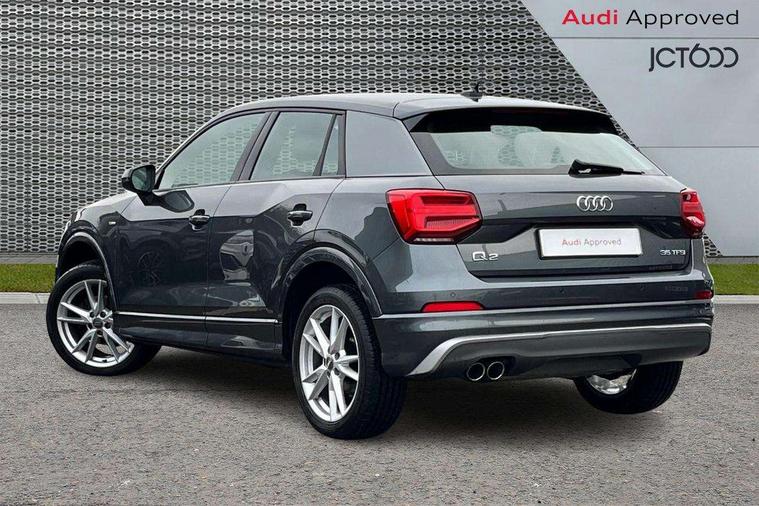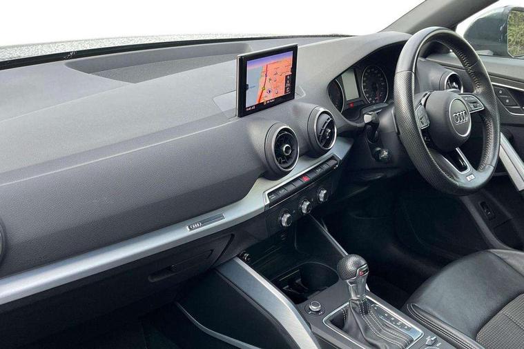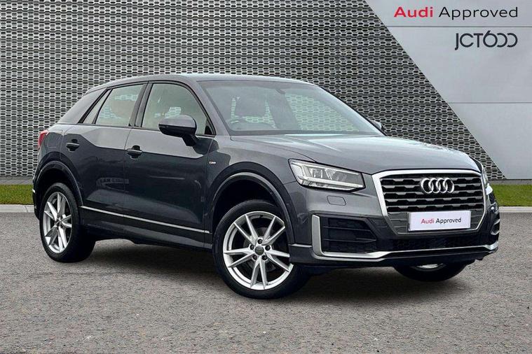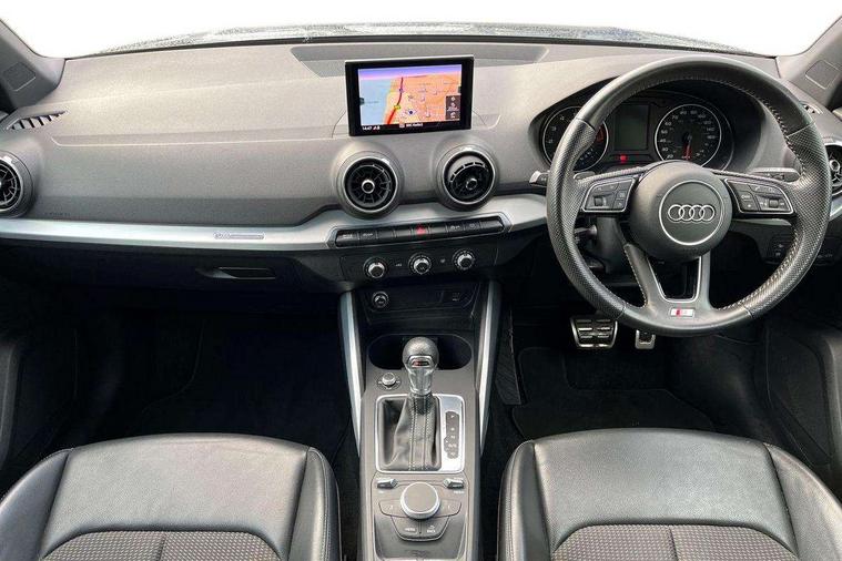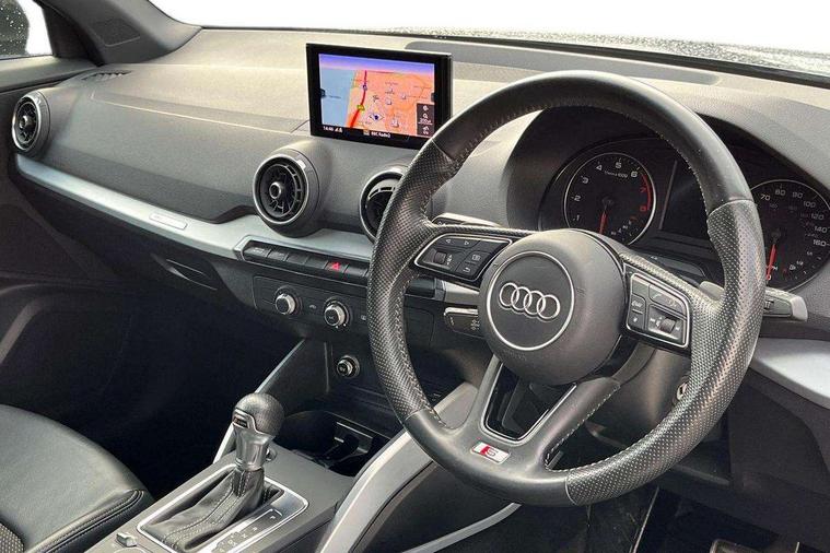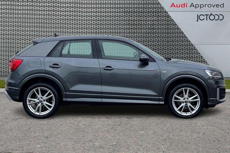 Audi drive select, Audi smartphone interface, Automatic start/stop system with recuperation, Bluetooth interface includes bluetooth audio streaming, Cruise control, MMI - Multi Media Interface control system, MMI SD card integrated nav with 3D map display, dynamic route guidance with TMC, MMI search, natural voice recognition and myAudi special destinations, Power operated tailgate, Progressive steering, Service interval indicator, Dynamic suspension, 2 x SDXC card reader, Audi music interface - apple iPod, apple iPhone, USB storage media, compatible MP3 players, 2 x USB charging points and 1 x Aux-in, CD Drive, DAB digital radio and AM/FM radio, MMI radio plus with 7" colour MMI screen and MMI controller, Black window trims, Bumper in full body colour paint finish, Chrome exhaust tailpipe, Electrically adjustable and heated door mirrors with integrated LED side indicators, Front and rear electric windows, Front underbody guard and rear diffuser trim in selenite silver, Front windscreen with grey tinted sunband, Headlight washers, Interior mirror, LED headlights with LED rear lights + dynamic rear indicators, LED indicator lights, Manual folding door mirrors, Rain and light sensors, Rear wiper, S Line badges on the front wings, S Line body styling - front and rear bumpers, side skirts, radiator grille, rear diffuser insert and front air intakes, 60/40 split folding rear seat bench, Black cloth headlining, Electronically operated child locks, Floor mats with contrast stitching, Front centre armrest, Front headrests, Front sport seats with S embossed logo, Height/reach adjust steering wheel, Illuminated door sill trims with S logo, ISOFIX child seat mounting for front passenger with airbag deactivation and outer rear seat including top tether attachment point for outer rear seats, Manual seat adjustment including seat height adjustment for front seats, Stainless steel pedals, Storage compartments - Glovebox, cupholder compartment in centre console, storage compartment in rear centre console, front and rear door pockets, Three rear headrests, Non smoking pack - Q2, 3x3 point rear seatbelts, 6 airbags - Front, curtain and front side airbags, Electromechanical parking brake, Electronic stabilisation control including ABS, ASR and EDL, Extended and proactive pedestrian protection, Hill hold assist, Multi collision brake assist, Pre-sense front with pedestrian recognition, Seatbelt monitoring, Tyre pressure warning light, Warning triangle and first aid kit, Anti theft alarm, Anti theft wheel bolts, Central locking system with remote control key, Aluminium interior element,
