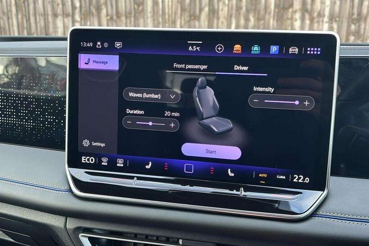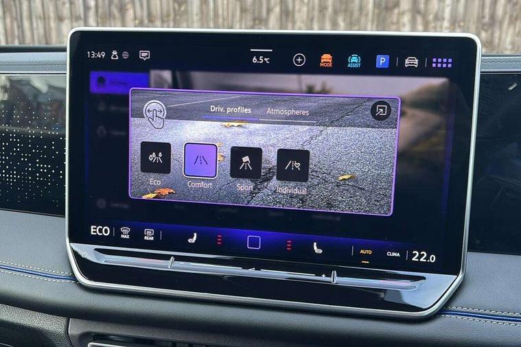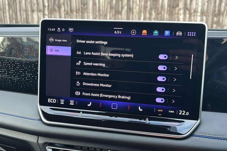 Adaptive cruise control (ACC), Advanced driver attention and drowsiness monitor, Bluetooth mobile phone interface, Car2X technology, Digital Cockpit Pro - 10.25" high resolution dash display screen with customisable menus and information, Dynamic road sign display, E-Sim card for online connectivity, eCall emergency call service, Front Assist - Autonomous emergency braking with pedestrian and cyclist monitoring, Lane change system, Side assist, Rear traffic alert and Exit warning system, Lane keeping system Lane Assist, Multifunction front facing camera, Oncoming vehicle braking when turning including swerve support, Park assistance plus with front and rear parking sensors, Power assisted steering with speed sensitive, Start/stop system with regenerative braking, Warning signal and warning light for front and rear seatbelts not fastened, Wireless App-Connect, Adaptive chassis control DCC pro includes driving mode selection, Charging cable Mode 3 Type 2 / 3 (16A), Front wheel drive, Rear shock absorption, Digital radio reception (DAB), Diversity antenna for FM reception, Air intake with Chrome trim, Ambient lighting with logo projection, Auto dimming interior rear view mirror, Automatic headlight control system, Body coloured door handles, Chrome moldings on the side windows, Coming/leaving home lighting function, Heat insulating glass in side and rear windows, Heated rear window, High level 3rd brake light, Illuminated door handle recesses, Illuminated lightline between headlamps, Laminated safety glass windshield, Rain sensor windscreen wipers, Rear fog light on one side, reversing light on both sides, Rear side wing doors, Rear wiper, 12V outlet in center console rear and in luggage compartment, 12V socket in centre console, 3 bench rear seats in 2nd row, Air care climatronic 3 zone air conditioning system with rear air conditioning control panel, Black roof lining, Brushed stainless steel pedals, Carpet mats, front and rear, Centre console with illuminated storage compartment with sliding cover and two drinks holders, Chrome elements on the mirror switch and power window switches and door pulls, Door and side trim panel with leatherette insert, Door sill protectors, Front centre armrest, Front integrated head restraints, Interior ambient lighting with 30 colour options, ISOFIX anchors for child seats on outer rear seats and front passenger seat compatible with i-Size, Mechanical rear seat release, Power adjustable lumbar support in front, Rear bench seat, split folding, longitudinally movable and folding with load-through hatch and centre armrest, Single front passenger seat, Soul headlining, Sports comfort seats in front, Sun visors with illuminated vanity mirrors, Three rear head restraints, Variable luggage compartment floor, 3 point seat belt for centre rear seats, 3 Point seat belts in front with pretensioners, 3 point seatbelts in outer rear with ECE label, Driver and front passenger airbag with front passenger airbag deactivation, Electronic parking brake with auto hold, Front and rear curtain airbags, Front and rear side airbags, Front centre airbag, Front disc brakes, Manual child proof rear door locks, Rear disc brakes, Two tone horn, Warning triangle, Anti theft wheel bolts, Decorative inserts, Interior door handle in matte chrome, Soul instrument panel, Tool kit for tyre mobility set, Tyre mobility kit including compressor and sealing foam,