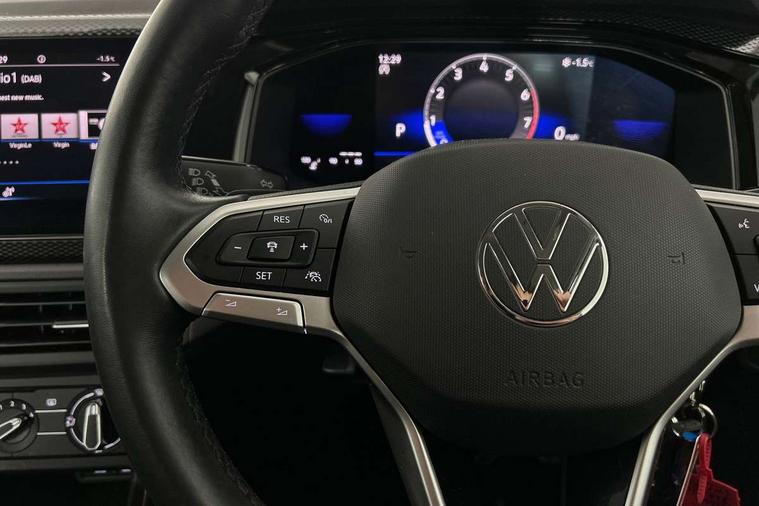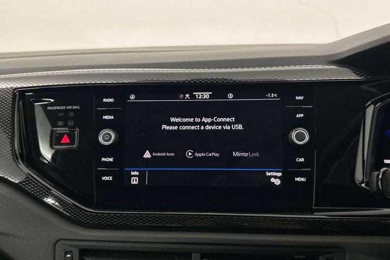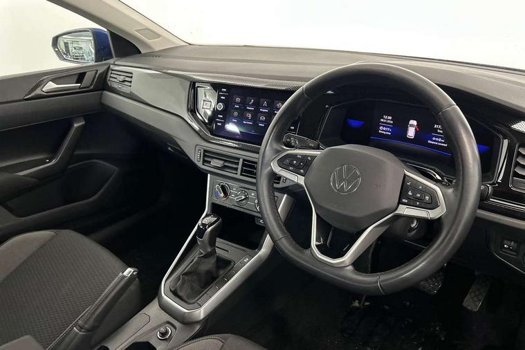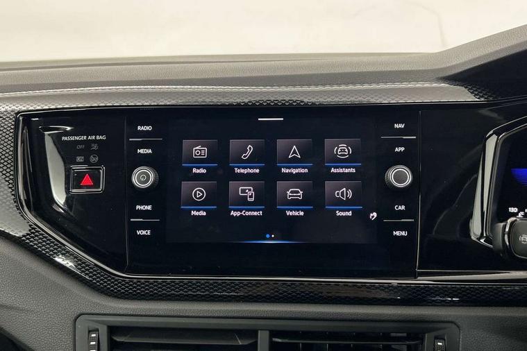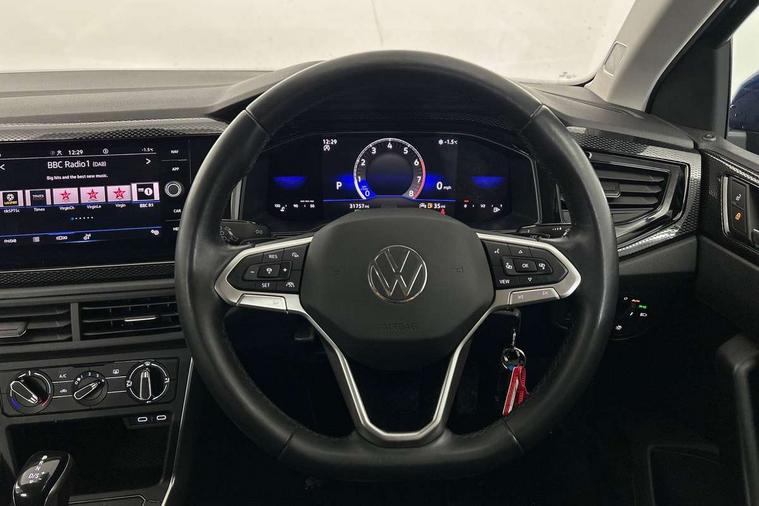 Adaptive cruise control with follow-to-stop and speed limiter, Bluetooth mobile phone interface, Driver alert system, Emergency call service, Front assist system, Power assisted speed sensitive steering, Preparation for We connect and We connect plus, Speedo and rev counter, electronic odometer, trip, service interval display and fuel gauge, Standard rear axle, Travel Assist - Lane keeping system and traffic jam assist, Travel assist including emergency assist, Trip computer, Warning signal and warning light for front and rear seatbelts not fastened, Washer fluid level indicator, Wireless app connect, Front wheel drive, Rear shock absorpion, Start-stop system with battery regeneration (recuperation - energy recovery during braking), DAB Digital radio, Diversity antenna for FM reception, Automatic dimming interior rear view mirror, Body colour bumpers, Body colour door handles, Body colour door mirrors, Electric front windows, Heat insulating darkened glass in side and rear windows, Heat insulating glass windscreen, Power folding adjustable/heated exterior mirrors and front passenger exterior mirror lowering function, Rain sensor, Rear electric windows, Rear fog light, Rear windscreen washer and wiper with interval delay, Third brake light, 12V power socket in centre console, 2 front and 2 rear reading lights, 2 USB-C ports in the front, 2 USB-C charging sockets on the center console in the rear, 3 rear head restraints, 60/40 split folding rear seat and rear seat bench not split, Ceramique headliner, Chrome plated radiator grille inserts, air vent surrounds and light switch surrounds, Door and side trim panel, Driver and front passenger seat height adjustment, Driver/passenger sunvisors with illuminated vanity mirrors, Front centre armrest, Front seat backrest storage pockets, Front standard seats, Handbrake lever handle in leather, Hartley/Thomas cloth upholstery, Isofix child seat preparation easy-fit (for two outer rear seats, and front passenger seat) compatible with I-size, Leather trimmed gear knob, Luggage compartment cover, Luggage compartment floor, Luggage compartment lighting, Standard pedal cluster, Three spoke leather wrapped multifunction steering wheel with shifting paddles, Light and vision pack - Polo, 3 point height adj front seatbelts + pretensioners, 3x3 point rear seatbelts, ABS, Driver and front passenger airbag with front passenger airbag deactivation, Drivers and front passengers safety optimised head restraints, ESC (Electronic stability control) + EDL (Electronic Differntial lock) and ASR (Traction control), Extended and predictive pedestrian/ cyclist protection, Front curtain and side airbags with center airbag, Front disc brakes, Hill hold control, Rear drum brakes, Single tone horn, Tyre pressure loss indicator, Alarm with interior protection, Anti-theft alarm system with interior monitoring, backup horn, and towing protection, Anti-theft wheel bolts, Electronic engine immobiliser, Lava stone black gloss/matt decorative inserts in dash and front door panels, Low rolling resistance tyres,