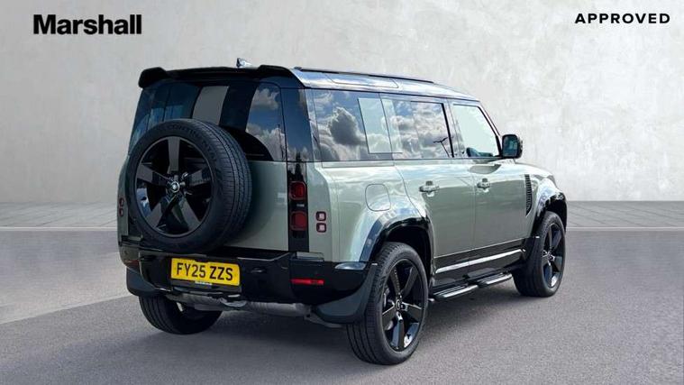 1 x USB-C (power only) & 1 x USB-C (power & data) in Row 1, 2 x USB-C in Row 2, 11.4" touchscreen, 2 x USB-C in Row 3, 360 degree parking aid, 3D Surround Camera with 360 View, 180 Rear View, Front Traffic Detection, Forward Vehicle Guidance, Tow Hitch Assist and clear sight Ground View, Adaptive cruise control, Android Auto, Apple CarPlay, Blind spot assist, Bluetooth system, Brake pad wear indicator, Clear exit monitor, Connected navigation pro, Driver condition monitor, Electric power assisted steering (EPAS), Interactive driver display, Lane keep assist, Push button start, Rear collision monitor, Rear traffic monitor, Traffic sign recognition with adaptive speed limiter, Trip computer, Wireless device charging, 8 speed automatic transmission, All wheel drive system, Twin speed transfer box, DAB Radio (Digital Audio Broadcasting), Meridian 700w surround sound audio system with 15 speakers, Pivi pro connected, Automatic headlight levelling, Automatic headlights, Black exposed rear recovery eyes, Body coloured bonnet, Centre high mounted stop light, Electric heated/power fold door mirrors with approach lights and auto dimming driver side, Electric windows with one touch open/close and anti-trap, Follow me home lighting, Front fog lights, Heated rear window with timer, Heated windscreen, Illuminated metal treadplates with brand name script, LED tail lights, Matrix LED headlights with signature DRL, Privacy glass, Puddle lights, Rain sensing windscreen wipers, Rear fog lights, Rear side wing doors, Rear wiper, Side hinged tailgate, Sliding panoramic roof, Standard tail door, Trailer stability assist, X-Dynamic badge, 12V power socket in loadspace, 2 seat bench in 3rd row, 3 seat bench in 2nd row, Alpine lights, Configurable cabin lighting, Durable rubber cabin flooring, Durable rubber loadspace flooring, Electric reach + rake adjustable steering column, Electrically adjustable steering column, Extended leather upgrade, Footwell lights, Front head restraints, Front passenger isofix child seat attachment, Heated steering wheel, Loadspace cover, Loadspace Hook, Multifunction steering wheel, No flat load floor storage, Overhead stowage for sunglasses, Rear headrests, Rear ISOFIX, Rear reading lights, Single front passenger seat, Soft close tail door, Storage glovebox, Sunvisors with illuminated vanity mirrors, Twin front cupholders, Air suspension pack - Defender SE/HSE/X-Dynamic SE/X-Dynamic HSE, Non-smoker package, Online pack with data plan - Defender, 7 three point seatbelts, ABS, Brake hold function, Cornering brake control (CBC), Customer configurable autolock, Driver and passenger airbags, DSC - Dynamic Stability Control, EBD - Electronic brakeforce distribution, Electric parking brake (EPB), Emergency brake assist, Emergency braking, ESP + traction control, Front airbags with passenger seat occupant detector, HDC - Hill descent control, Hill launch assist, Low traction launch, Power operated child locks, Remote for (e-Call, Optimised assistance call, InControl app, Climate, beep and flash and door), RSC - Roll stability control, Seat belt reminder, TPMS (Tyre pressure monitoring system), Alarm, Immobiliser, Intrusion sensor, Keyless entry, Locking wheel nuts, Secure tracker pro,