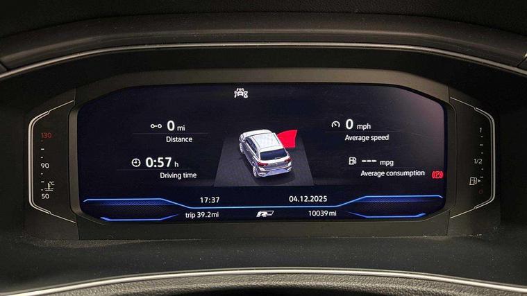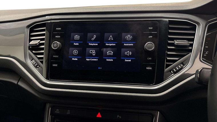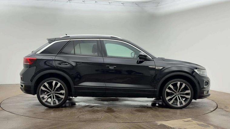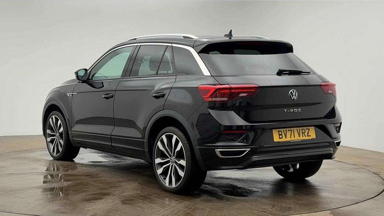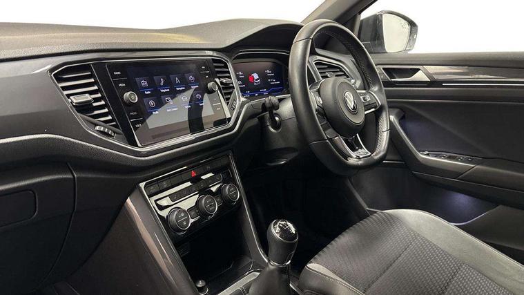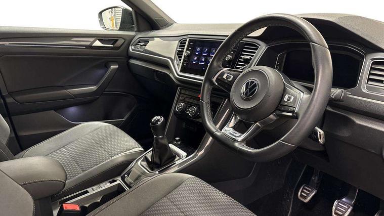 'Lights On' Reminder warning buzzer, Adaptive cruise control, Bluetooth telephone and audio connection for compatible devices, Car information display, Digital Cockpit Pro - Active info display, Driver alert system with audible and visual fatigue detection system, Driver tips and journey analysis, Emergency call service, Lane assist with warning text instrument cluster, Modified key software - reduce switch off time for key status change to Long no motion, Multifunction camera, Multifunction computer with visual gear change recommendation for fuel consumption, Navigation system discover media including streaming and internet, Service interval indicator, Think blue trainer driver tips and journey analysis, Traffic sign recognition, Voice activation, Warning sound and light for front seatbelts unfastened, Wireless app connect for apple carPlay, Battery regeneration during braking, Rear shock absorption for sports version, Start/stop function with battery regeneration, DAB Digital radio, Disk brakes in front, Diversity antenna for FM reception, Music playback - MP3, WMA and AAC files, Premium USB cable in choice of either Apple or Android smartphone compatibility, SD card slot, Simultaneous pairing of 2 compatible mobile devices, SMS functionality - read, compose and send SMS messages using touch-screen display, Storage compartment with longitudinal and height adjustable in armrest and two rear air vents, Three route options - Fast, Short, Eco, Title and cover art display, USB-C Interface and USB charging socket, Auto dimming interior rear view mirror, Automatic coming/leaving home lighting function and daytime running lights, Automatic hazard lights activation under emergency braking, Black grained lower door protectors, Body colored door lower parts, Body colour door handles, Body colour rear roof spoiler, Chrome effect left and right trapezoid exhaust tailpipe fascia surround, Chrome plated moldings, Chrome trim on upper and lower radiator grille, Dusk sensor, Dynamic headlight range control with self adjusting whilst driving, Electrically foldable, adjustable and heated door mirrors with puddle lights and reverse activated kerb-view adjustment on passenger's door mirror, External USB type C socket and charging sockets, Front and rear electric windows, Front fog lights with static cornering function, Front windscreen wiper with intermittent wipe and 4 position delay, Fully galvanised body, Heated rear window, Heated windscreen washer jets, High level 3rd brake light, LED darkened rear light clusters, LED headlamps with automatic range adjustment and unique signature LED separate daytime running lights, LED rear number plate lights, LED tail lamp rear comination lamps, Privacy glass, R-Line design body coloured bumpers, Rain sensor, Rear tinted glass from B-pillar backwards approx 65% tinted, Rear wash/wipe with intermittent wipe setting, Silver anodised roof rails, Volkswagen roundel, 12V socket in centre console storage area, 3 rear head restraints, 4 load lashing points in luggage compartment, Aluminium pedals, Black roof lining and sun visors, Branded points of interest, Carbon flag cloth upholstery, Chrome plated radiator grille inserts, air vent surrounds and light switch surrounds, Climate control - 2 zone electronic air conditioning with automatic air recirculation and allergy filter, Door and side trim panel, Door and side trim panel in foam film, insert in leatherette, Drawer under drivers seat, Front + rear carpet mats, Front centre armrest, Front cupholders x 2, Front seat back storage pockets, Front sports seats with R-Line logo on seat backrest, Glovebox, Heated front seats, Height adjustable front seats, Height/reach adjust steering wheel, Instrument lighting, white adjustable panel illumination, Interior light delay, Interior light in footwell, Isofix easy fit child seat preparation for 2 outer rear seats, LED interior light with switch off delay/dimmer and 2 front/rear LED reading lights, Load through provision with single cup holder when folded down, Luggage compartment cover, removable, Luggage compartment lighting, R Line badge, Scuff plates in door apertures, Split folding rear seat backrests with centre armrest, Stainless steel pedals, Storage compartment in left and right luggage area, Storage compartment in rear doors, Storage compartments in driver and front passenger doors, Sunvisors with illuminated vanity mirrors, Three spoke multi-function leather trimmed steering wheel and gearknob, Unique R Line door sill protectors, White ambient lighting, R line styling pack - T-Roc, Winter pack - T-Roc, 3 rear three point seatbelts, ABS, Curtain airbags, Driver and front passenger safety-optimised head restraints, Drivers and front passengers airbags with passengers deactivation switch, Drivers seatbelt reminder, Electronic parking brake with auto hold, Electronic stability control (ESC) includes ASR, EDL, EDTC and trailer stabilisation function, Front assist with city emergency braking and pedestrian monitoring, Front seat side impact airbags, Hill start assist, Predictive pedestrian protection, Rigid safety cell with front and rear crumple zones, Single tone horn, Three point height adjust front seatbelts + pretensioners, Tyre pressure loss indicator, Ventilated front and rear disc brakes, Volkswagen roadside assistance, Alarm with remote central locking and interior protection, Electronic engine immobiliser, Remote central locking with SAFELOCK, radio remote control with 2 remote control folding keys, Shadow grey decorative inserts in dash, centre console and door panel, 19" Suzuka alloy wheels with low rolling resistance tyres and anti wheel bolts,