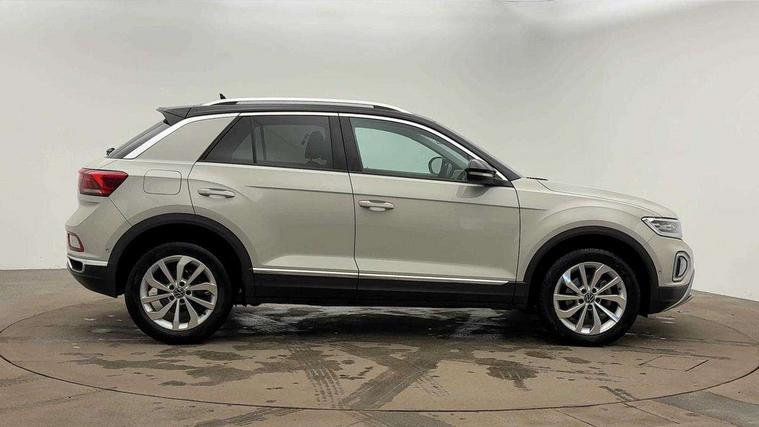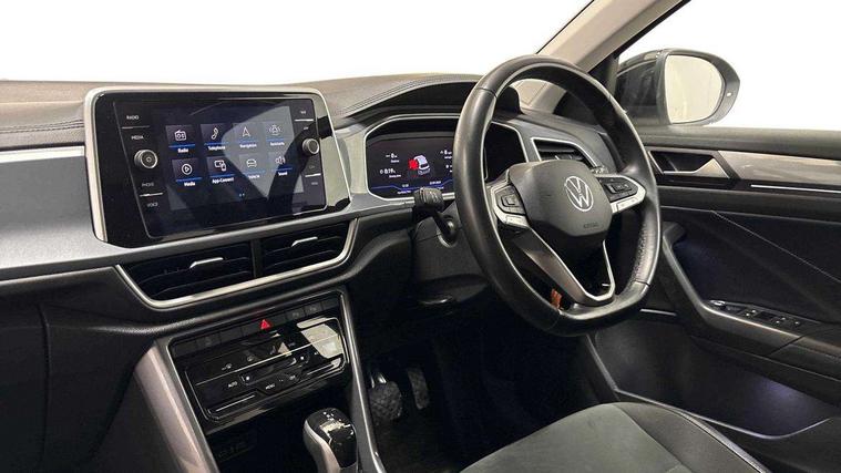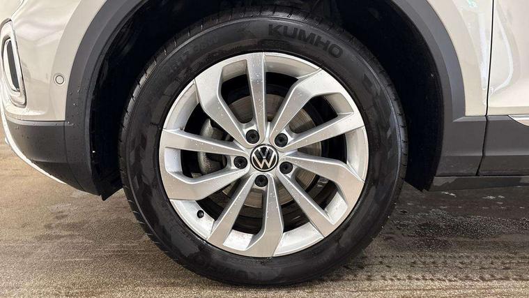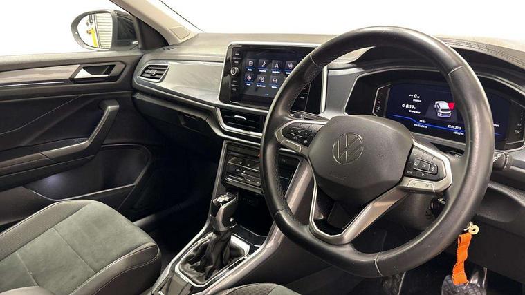 10.25" Digital cockpit pro, Bluetooth mobile phone interface, Driver alert system with fatigue detection, Driver tips and journey analysis, Emergency call service, Lane keeping system Lane Assist, Modified key software - reduce switch off time for key status change to Long no motion, Online services, Park assist including front and rear parking sensors, Service interval indicator, Tailgate/trunk lid release from outside, Think blue trainer driver tips and journey analysis, Warning sound and light for front seatbelts unfastened, Wireless app connect, Battery regeneration during braking, Start/stop function with battery regeneration, Diversity antenna for FM reception, Front and rear 6 speakers, Music playback - MP3, WMA and AAC files, Premium USB cable in choice of either Apple or Android smartphone compatibility, SD card slot, Simultaneous pairing of 2 compatible mobile devices, Title and cover art display, We Connect and We Connect Plus functionality, 3rd brake light, Auto dimming interior rear view mirror, Automatic hazard lights activation under emergency braking, Automatic headlight control with LED separate daytime running lights with coming/leaving home function, Body colour sports bumpers with silver metallic underbody fascia, Dynamic headlight range control with self adjusting whilst driving, Extended roof spoiler, Exterior mirrors aspherical on driver side, convex on front passenger side, External USB type C socket and charging sockets, Front windscreen wiper with intermittent wipe and 4 position delay, Heated rear window, LED Plus headlamps, LED rear combination lamps, LED rear number plate lights, LED tail lamp rear comination lamps, Light mode for poor weather, rain, fog or snow, Power windows with comfort operation and circuit breaker, Rain sensor, Rear exhaust tailpipe, Rear fog light on one side and reversing lights on both sides, Rear side wing doors, Rear wash/wipe with intermittent wipe setting, Remote electrically foldable door mirrors, puddle lights and reverse activated passenger's door mirror, 12V power socket in centre console, 3 rear head restraints, 3 seat bench in 2nd row, 4 load lashing points in luggage compartment, Air care climatronic air conditoning system with active combination filter and 2-zone temperature control, Chrome plated radiator grille inserts, air vent surrounds and light switch surrounds, Door and side trim panel with leatherette insert, Drawer under drivers seat, Front + rear carpet mats, Front centre armrest, Front comfort sports seats, Front cupholders x 2, Front footwell illumination, Instrument lighting, white adjustable panel illumination, Interior ambient lighting and surround lighting, Interior light delay, Isofix child seat preparation, Leather gearshift handle, LED interior light with switch off delay/dimmer and 2 front/rear LED reading lights, Load-through provision with cup holder when folded down ('Unsplit rear seat bench, split folding backrest, with centre armrest), Luggage compartment lighting, Non-folding front passenger seat backrest, Single front passenger seat, Storage compartment in left and right luggage area, Storage compartment in rear doors, Storage compartments in driver and front passenger doors, Sunvisors with illuminated vanity mirrors, Variable boot floor, height adjustable and removable, Driver assistance pack without proactive passenger protection - T-Roc, 3 point height adj front seatbelts + pretensioners, 3 point seatbelts in outer rear with ECE label, ABS, Child locks on rear doors, Driver and front passenger airbag with front passenger airbag deactivation, Driver and front passenger safety-optimised head restraints, Drivers seatbelt reminder, Electronic parking brake, Electronic Stability Control (ESC) inc EDL (Electronic Differential Lock) and ASR (Traction Control), Front and rear passengers curtain airbag system including front side airbags, Front assist with city emergency braking and pedestrian monitoring, Front seat side impact airbags, Predictive pedestrian protection, Rear disc brakes, Single tone horn, Tyre pressure loss indicator, Volkswagen roadside assistance, Alarm with interior protection, Anti-theft alarm system with interior monitoring, backup horn, and towing protection, Remote central locking with SAFELOCK, radio remote control with 2 remote control folding keys, Trims for alloy wheels,