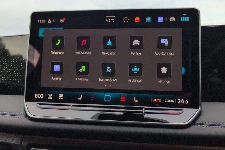Adaptive cruise control (ACC), Advanced driver attention and drowsiness monitor, Bluetooth mobile phone interface, Car2X technology, Digital Cockpit Pro - 10.25" high resolution dash display screen with customisable menus and information, Dynamic road sign display, E-Sim card for online connectivity, eCall emergency call service, Front Assist - Autonomous emergency braking with pedestrian and cyclist monitoring, Lane change system, Side assist, Rear traffic alert and Exit warning system, Lane keeping system Lane Assist, Multifunction front facing camera, Oncoming vehicle braking when turning including swerve support, Park assistance plus with front and rear parking sensors, Power assisted steering with speed sensitive, Start/stop system with regenerative braking, Warning signal and warning light for front and rear seatbelts not fastened, Wireless App-Connect, Adaptive chassis control DCC pro includes driving mode selection, Charging cable Mode 3 Type 2 / 3 (16A), Front wheel drive, Rear shock absorption, Digital radio reception (DAB), Diversity antenna for FM reception, Air intake with Chrome trim, Ambient lighting with logo projection, Auto dimming interior rear view mirror, Automatic headlight control system, Body coloured door handles, Chrome moldings on the side windows, Coming/leaving home lighting function, Heat insulating glass in side and rear windows, Heated rear window, Heated windscreen washer jets, High level 3rd brake light, Illuminated door handle recesses, Illuminated lightline between headlamps, Laminated safety glass windshield, Rain sensor windscreen wipers, Rear fog light on one side, reversing light on both sides, Rear side wing doors, Rear wiper, 12V outlet in center console rear and in luggage compartment, 12V socket in centre console, 3 bench rear seats in 2nd row, Air care climatronic 3 zone air conditioning system with rear air conditioning control panel, Black roof lining, Brushed stainless steel pedals, Carpet mats, front and rear, Centre console with illuminated storage compartment with sliding cover and two drinks holders, Chrome elements on the mirror switch and power window switches and door pulls, Door and side trim panel with leatherette insert, Door sill protectors, Front centre armrest, Front integrated head restraints, Interior ambient lighting with 30 colour options, ISOFIX anchors for child seats on outer rear seats and front passenger seat compatible with i-Size, Mechanical rear seat release, Power adjustable lumbar support in front, Rear bench seat, split folding, longitudinally movable and folding with load-through hatch and centre armrest, Single front passenger seat, Soul headlining, Sports comfort seats in front, Sun visors with illuminated vanity mirrors, Three rear head restraints, Variable luggage compartment floor, 3 point seat belt for centre rear seats, 3 Point seat belts in front with pretensioners, 3 point seatbelts in outer rear with ECE label, Driver and front passenger airbag with front passenger airbag deactivation, Electronic parking brake with auto hold, Front and rear curtain airbags, Front and rear side airbags, Front centre airbag, Front disc brakes, Manual child proof rear door locks, Rear disc brakes, Two tone horn, Warning triangle, Anti theft wheel bolts, Decorative inserts, Interior door handle in matte chrome, Soul instrument panel, Tool kit for tyre mobility set, Tyre mobility kit including compressor and sealing foam,
