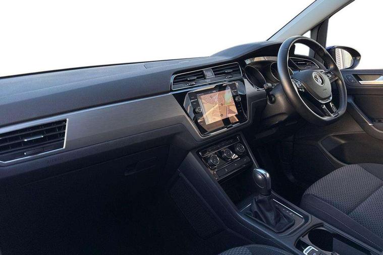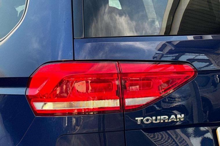 Adaptive cruise control, Audible lights on warning, Bluetooth telephone connectivity, Car information display, Driver electronic voice amplification function, Electronic odometer, External temperature gauge, Flat tyre indicator, Misfuelling protection device, Mobile pairing with SMS function, Multi function display, Rev counter with fuel gauge, Speed limiter, Speed sensitive power steering, Stop/start system, Think blue trainer driver tips and journey analysis, Trip and service interval display, We Connect Go Dongle, Diesel particulate filter, XDS electronic differential lock, 4x20 watt output, Audio Connectivity System, DAB Digital radio, MP3/WMA compatability, SD card slot, Title and cover art display, USB connection, Aerial integrated into side window, Auto dimming rear view mirror/rain sensor, Automatic coming/leaving home lighting function, Black front air intake and radiator grilles, Body colour bumpers, Body colour door handles, Body colour door mirrors with integral indicators, Chrome trimmed radiator grille louvre inserts, Dusk sensor + auto driving lights, Electric heated + adjustable door mirrors, Electric, glass sliding/tilting panoramic sunroof including integrated roller blind, Front and rear electric windows, Fully galvanised body, Gloss black finish B pillar, Green tinted heat insulating glass, High level third brake light, Rear tinted glass from B-pillar backwards approx 65% tinted, Rear wash/wipe with intermittent wipe setting, Silver roof rails, Tailgate wiper- reverse gear activation, Twin chrome exhaust tailpipes, Volkswagen roundel, Windscreen wipers intermittent wipe, 12V power point for Row 2, 12V socket in luggage compartment, 2 individual fold flat 3rd row seats, 2 three point seatbelts in 3rd row, 2nd row centre armrest, 2nd row centre seat converts into table, 3 single slide/fold/removable 2nd row seats, 3 spoke steering wheel, 3x3 point seatbelts on 2nd row with height adjust on outer seats, 4 boot load lashing points, 4 way adjustable front head restraints, 5 headrests, Driver and front passenger under seat drawer, Dust/pollen filters, Foldable front passenger seat backrest, Front and rear reading lights, Front centre armrest with storage compartment, Front cupholders x 2, Front seat storage pockets, Front seatback folding tables, Height adjustable driver's seat, Height/reach adjust steering wheel, Illuminated glovebox, Illuminated vanity mirrors, Instrument lighting white adjustable panel illumination with red night time illumination, Interior light with delay, Isofix on 2nd row outer seats, Isofix on 3rd row seats, Large storage compartment in roof console, Leatherette on rear of front seats, Low tunnel 2nd row seat, Media box in dashboard on passenger side, Multi storage in passenger/luggage areas, Multi-function centre console with storage facilities, Retractable luggage cover, Split folding rear seat backrests, Storage bins on all doors, Family Pack - Touran, 3 point height adjustable front seatbelts, Auto hold function, Automatic post collision braking system, Door open warning reflectors, Driver/Front Passenger airbags, Drivers knee airbag, EDL + ASR, Electronic parking brake, Energy recovery system, ESC with ABS, First aid kit, Front and rear (row 2) curtain airbags, Front assist including city emergency braking, Front seat side impact airbags, Front/rear disc brakes, Hill hold control, Hydraulic Brake Assist (HBA), Loose wheel warning function, Manual passenger airbag deactivation function, Pre crash preventive occupant protection, Seatbelt warning lamp and buzzer, Traction control, Two tone horn, Warning triangle, Alarm with remote central locking and interior protection, Electronic engine immobiliser, Brushed design decorative inserts,
