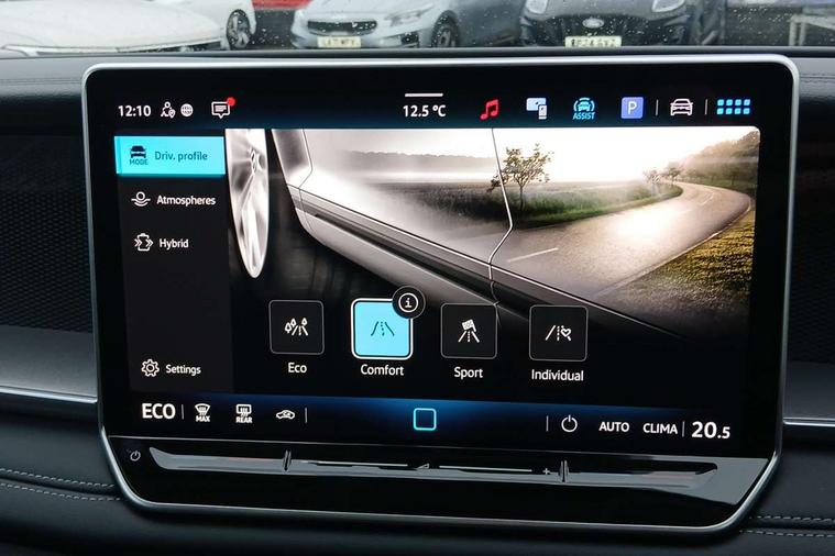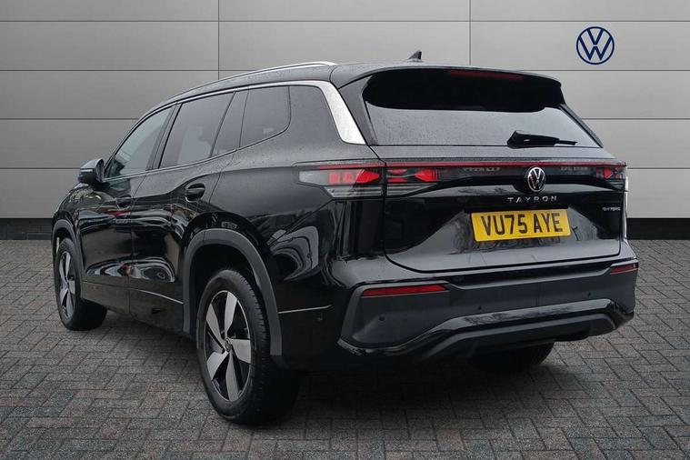 Adaptive cruise control (ACC), Digital Cockpit Pro - 10.25" high resolution dash display screen with customisable menus and information, Driver alert system, Driver attention monitoring system, Dynamic road sign display, E-Sim card for online connectivity, eCall emergency call system, Lane change system, Side assist, Rear traffic alert and Exit warning system, Multifunction front facing camera, Oncoming vehicle braking when turning including swerve support, Power assisted steering with speed sensitive, Start/stop system with regenerative braking, Voice activation spoken voice commands for telephone and navigation system, Warning signal and warning light for front and rear seatbelts not fastened, Wireless App-Connect, Adaptive chassis control DCC pro includes driving mode selection, Charging cable Mode 2 Type 2 / G (10A), Charging cable Mode 3 Type 2 / 3 (16A), Front shock absorption G08, Front wheel drive, Rear shock absorption, Digital radio reception (DAB), Diversity antenna for FM reception, Auto dimming interior rear view mirror, Automatic headlight control system, Body colour door handles, Body-coloured exterior mirror housings, Chrome moldings on the side windows, Comfort bumpers, Coming/leaving home lighting function, Exterior mirrors convex on the left and aspherical on the right, Heat insulating glass in side and rear windows, Laminated safety glass windshield, heat insulating, LED 3rd brake light, Puddle lights, Rain sensor windscreen wipers, Rear fog light on one side, reversing light on both sides, Rear side wing doors, Rear wiper, Reverse activated passenger's door mirror, Surround lighting with welcome light, Tilting and sliding panoramic sunroof with rear panoramic sunroof, 12V outlet in center console rear and in luggage compartment, 3 rear headrests, 3 rear seat bench in 2nd row, split folding, longitudinally movable and folding with load-through hatch, Carpet mats, front and rear, Centre console with illuminated storage compartment with sliding cover and two drinks holders, Door and side trim panel with leatherette insert, Flat luggage compartment floor, Front centre armrest, ISOFIX anchors for child seats on outer rear seats and front passenger seat compatible with i-Size, Mechanical rear seat release, Power adjustable lumbar support in front, Single front passenger seat, Sun visors with illuminated vanity mirrors, Comfort package with park assist pro - Tayron, 3 Point seat belts in front with pretensioners, 3 point seatbelts in outer rear with ECE label, Autonomous emergency braking front assist with pedestrian and cyclist monitoring, Driver and front passenger airbag with front passenger airbag deactivation, Electronic parking brake with auto hold, First aid kit with warning triangle and safety vest, Front and rear curtain airbags, Front and rear side airbags, Front centre airbag, Front disc brakes, Hill start assist, Rear disc brakes, Two tone horn, Decorative material set, Tool kit for tyre mobility set, Tyre mobility kit including compressor and sealing foam. In lieu of spare wheel,