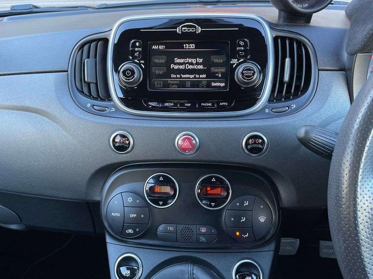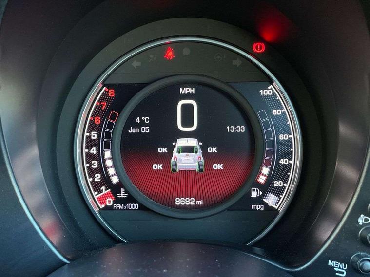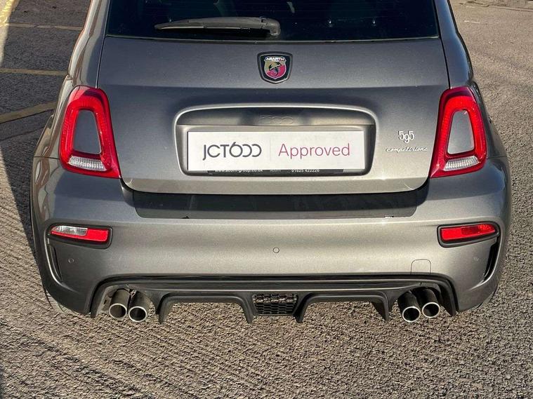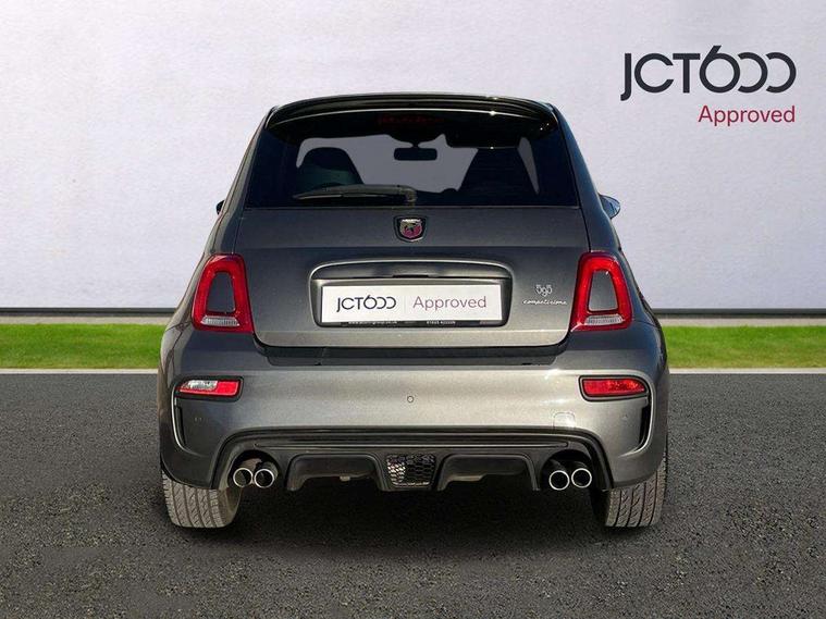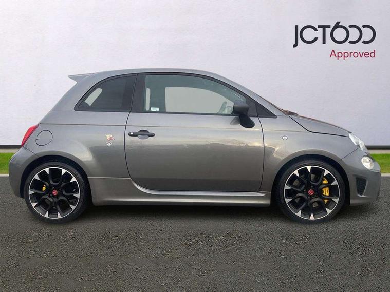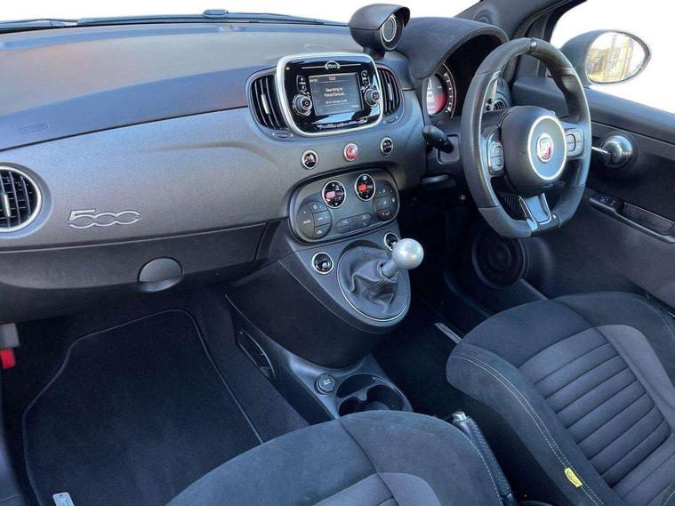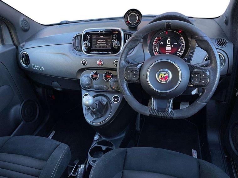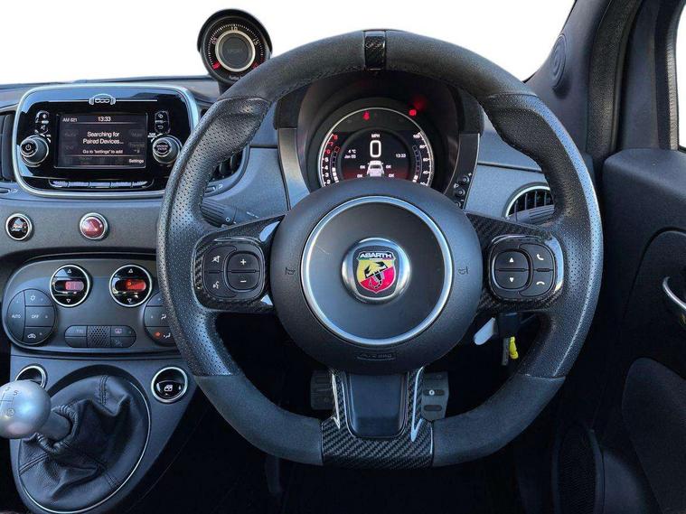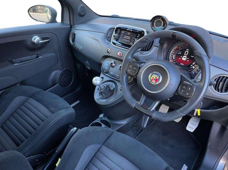 Dualdrive PAS, Rear parking sensors, Sports button, TFT display screen, Trip computer, U-connect access via mobile, Koni rear suspension with FSD technology (Frequency Selective Damping), Sports suspension, Torque transfer control (TTC), Bluetooth audio streaming, Anthracite bumper inserts, Body coloured bumpers, Dark tinted rear windows, Dual mode record monza exhaust system with four tailpipes, Electric front windows, Front fog lights, LED daytime running lights, Rear wiper, 12V socket, Abarth corsa front seats by sabelt in fabric, Aluminium gear knob, Aluminium sports pedals, Auto climate control, Front head restraints, Glovebox, Height adjustable steering wheel, High performance BMC air filter, Interior stowage net, Rear headrests, Sports alcantara leather multifunction steering wheel with carbon fibre detailing, 3x3 point rear seatbelts, ABS, Brembo brakes, Drilled and ventilated front brake discs, Drilled rear brake discs, Driver and passenger airbags, Drivers knee airbag, ESP + ASR/MSR + HBA + Hill holder, Tyre pressure monitoring system, Window airbags, Alarm, Central locking, Immobiliser, Remote central locking, Fix and go kit,