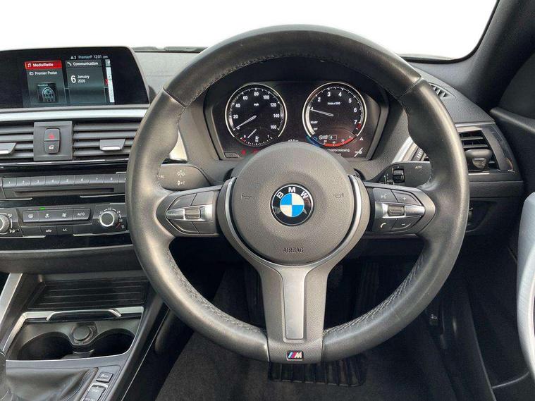 Auto start-stop, BMW Online services, BMW remote services, BMW Teleservices, Door/boot open warning, Front and rear Brake pad wear indicator, Instrument cluster with speedometer with miles per hour read out, tachometer and fuel gauge, Lights on warning by audio warning signal when ignition is switched off, Oil sensor for level and grade, warning by check control system, Oil temperature display via on board computer in instrument cluster, On board computer - average speed+fuel consumption, service interval, clock/date, odometer/trip meter, outside temperature display and ice warning, Optimum shift indicator, Personal Profile - automatic lock when driving away selectable, Real time traffic information, Speed limiter, Battery age recognition function, Drive performance control with ECO PRO comfort + sport mode, Engine cover with BMW roundel twin power turbo designation, Oil dipstick, DAB Digital radio, 2 speed adjustable intermittent wipers with wash/wipe function, Automatic headlight beam throw control, Automatically dimming rear view mirror, Body colour bumpers, Body colour door handles, Body colour door mirrors, Body colour roof mouldings, Chrome exhaust tailpipe, Chrome kidney grille with high gloss black vertical slats, Clear lenses direction indicator lights, Darkened rear lights with LED light bars, Daytime driving lights, Direction indicator side lights integrated exterior mirrors, Dynamic brake lights, Electric windows - front and rear, with open/close fingertip control, anti-trap facility and comfort closing, Electrically adjustable and heated M specific exterior mirrors, Follow me home headlights, Front air inlet with high gloss black finish, Green tinted heat protection glazing, Headlight range control, Heated windscreen washer jets, High level third brake light, LED rear lights, LED welcome home lights, M aerodynamic body styling, Rain sensor with automatic headlight activation, Rear bumper with high gloss black finish, Rear fog lights, Reversing light in rear light cluster, Shark fin roof aerial, Visible VIN plate, Welcome lighting, 12V power socket in centre console, 12V power socket in passenger footwell, 3 Spoke M sport nappa leather multifunction steering wheel, Anthracite headlining, Conditioned based service, Folding rear seat head rests, Front and rear side armrests integrated into door trim, Front door sill finishers with M designation, Front door storage bins, Front floor mats in velour, Front head restraints, Front sliding armrest, Glove box handle with chrome surround, Isofix child seat for two outer rear seats, Leather gearknob, Leather handbrake lever, Luggage compartment access via BMW roundel, M designation short gear shift lever, Manually adjustment steering wheel column, Rear coat hooks, Rear folding head restraints, Storage compartment in rear centre console, Two cupholders with sliding cover and inlay mat, Two extra lashing eyes in luggage compartment, Active differential brake (ADB), electronic differential lock in DSC-OFF mode, Airbag - Front driver and passenger, front and rear head, front side, curtain head protection, manual deactivation of front passenger airbag possible, Anti lock braking system (ABS) with brake assist, Automatic Stability Control (ASC), Battery safety cut-off, BMW emergency call, Brake drying, Brake energy regeneration, Braking readiness, Cornering brake control (CBC), Crash sensor activating central locking release with hazard warning lights and interior lighting + battery safety cut-off, Dynamic brake control, Dynamic stability control + (DSC+), Dynamic Traction Control - DTC, Front pyrotechnic belt tensioners and belt force limiter, rear coaded belt buckles, Hill start assist, Seat belt security check for driver and front passenger, Side impact protection, Twin horns, Tyre pressure monitoring with 3 level warning strategy, Warning triangle and first aid kit, Central locking switch for all doors, fuel filler cap and luggage compartment, Check control system for monitoring of lights and door/luggage compartment open warning, Drive away door locking, Locking wheel bolts, Remote control including integrated key with blue insert, Thatcham category 1 alarm system with remote control and engine immobiliser, Reduced rolling resistance tyres, Run flat tyres,