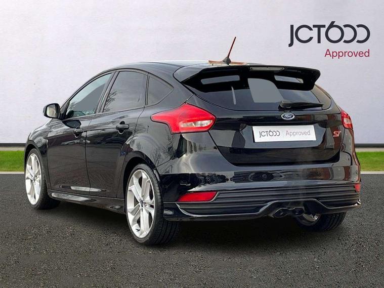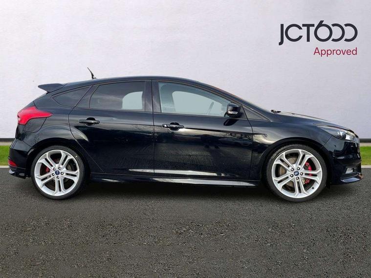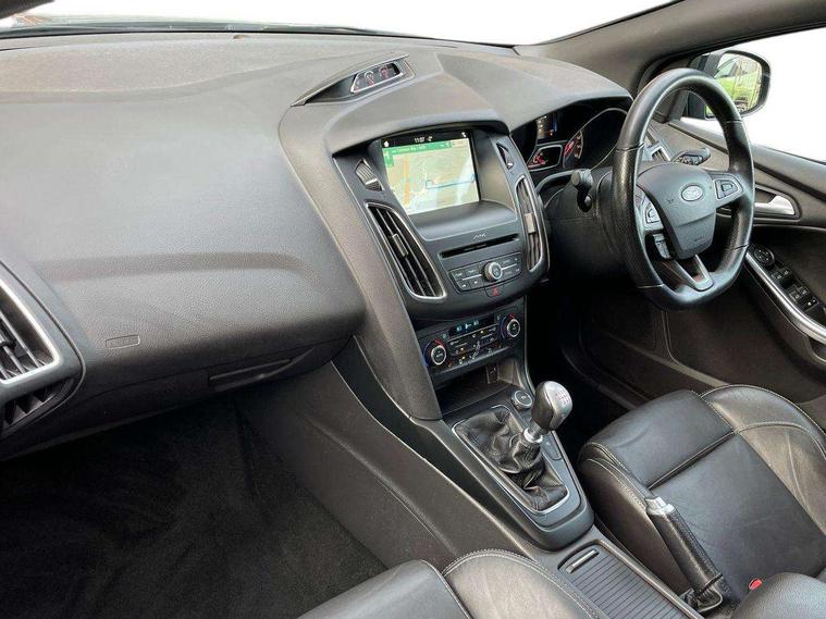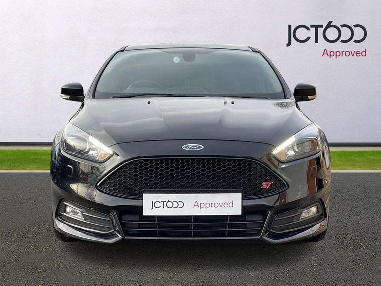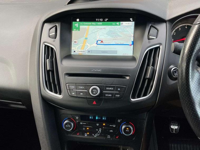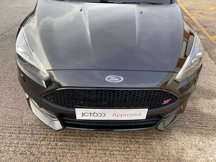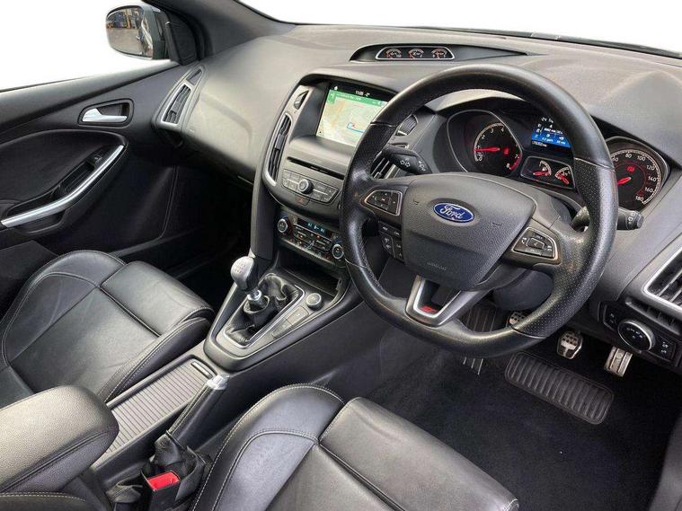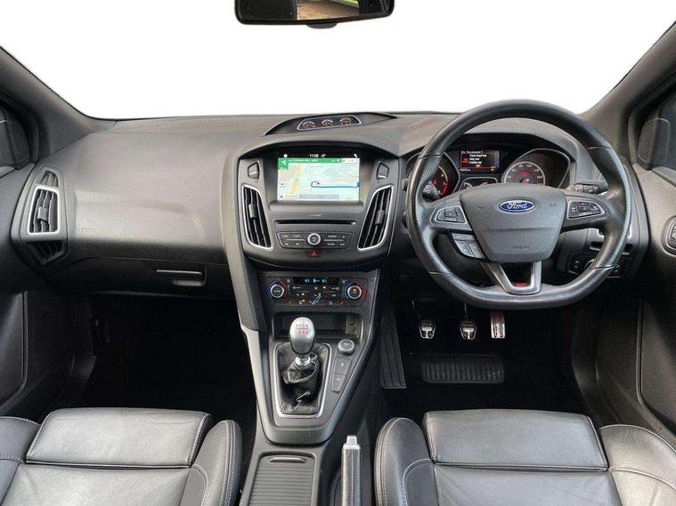 Cruise control + speed limiter, Digital clock, Easy fuel capless refuelling system, Electric boot release, PAS, Rear parking sensor, SYNC 3 nav system with DAB radio/CD, 8" colour touch screen, bluetooth, emergency assistance, advanced voice control and 6 speakers, TFT cluster screen, Trip computer, Aux input, Steering column with mounted audio controls, USB connection, 'Quickclear' heated windscreen/heated washer jets, Adaptive front lighting system, Auto dimming rear view mirror, Automatic headlights, Automatic rain sensing wipers, Bi-Xenon headlights and headlight washers, Body colour bumpers, Body colour door handles, Body colour door mirrors, Body colour rear spoiler, Body colour side skirt, Body styling kit, Electric adjustable heated door mirrors, Electric front and rear windows + one touch + global open/closing, Front fog lights, Front variable intermittent wipers with electric wash, Heated rear window, LED daytime running lights, Rear LED lights, Tailgate wash/wipe, Twin exhaust tailpipe, 60/40 split back and cushion rear seats with 2 height adjustable headrests, 8 way driver/passenger electrically adjustable seats, Centre console storage box/armrest, Dual electronic automatic temperature control air conditioning - CFC-free, Electric heated front seats, Flat bottom sports leather steering wheel, Front/rear floor mats, Height adjustable front headrests, Illuminated scuff plates, Isofix child seat preparation, Leather gear knob, Leather upholstery, Reach + rake adjustable steering column, Recaro sports front seats, ABS+Electronic Brake force Distribution, Driver airbag, ESP with traction control + emergency brake assist, Front inertia reel height adjustable seatbelts with pre-tensioners, Front passenger airbag, Front side airbags, Hill start assist, Red brake calipers, Side curtain airbags, Three rear inertia reel lap/diagonal seatbelts, Torque vectoring brake, Tyre pressure monitoring system, Immobiliser-Passive Anti-Theft System (PATS), Key free system, Keyless start, MyKey system, Remote central double locking, Thatcham Cat.1 alarm, Mini steel spare wheel,