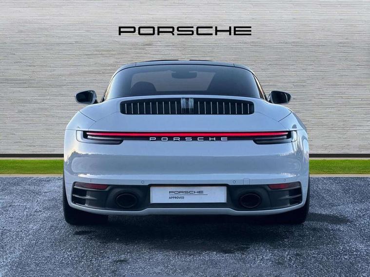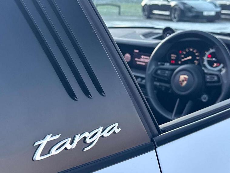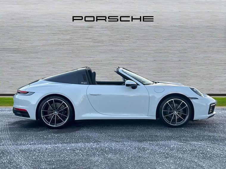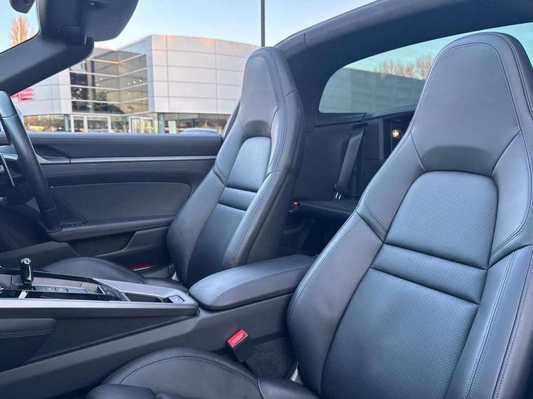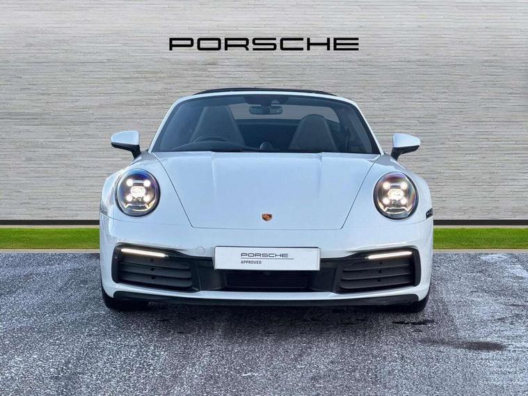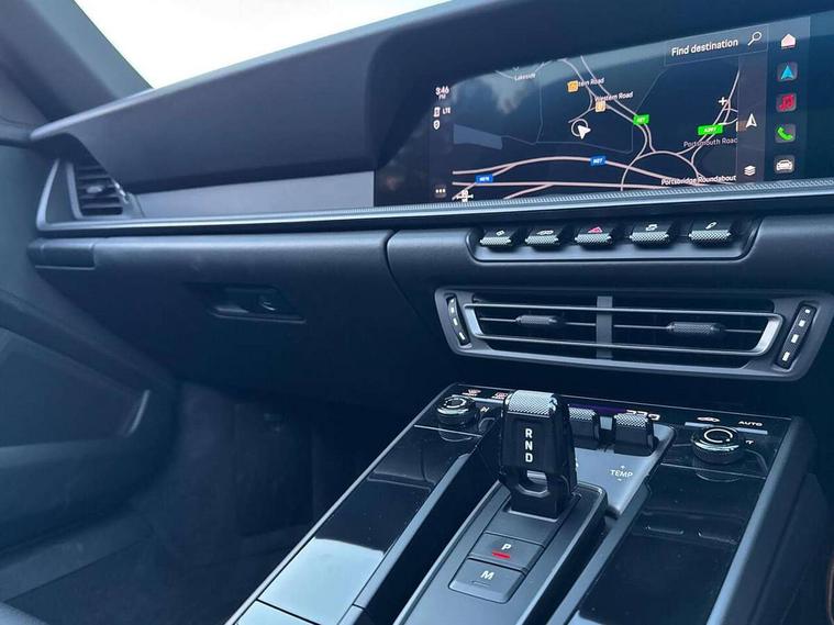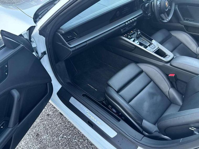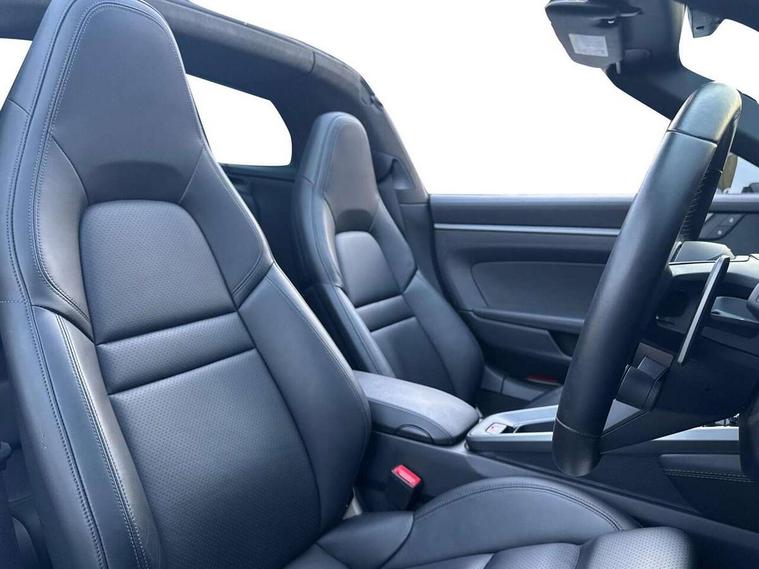 10.9 inch centre display, 2 USB-C ports in center console main storage compartment lid, socket (12-volt) in passenger footwell, Automatic start/stop system, eCall emergency system, Gear indicator in rev counter, Instrument cluster with central analogue rev counter and two 7-inch TFT displays, Music streaming and online radio, remote services and a wide range of other Porsche connect services, Porsche Communication Management (PCM) including online navigation module, mobile phone preparation, audio interfaces and voice control system, Porsche WET Mode, Service indicator, Smartphone integration with Apple CarPlay and Android auto, Stationary management with HOLD function, Trip computer, Warn and brake assist including pedestrian protection, 8 Speed Porsche Doppelkupplung (PDK), All wheel drive with map controlled multi plate clutch Porsche Traction Management (PTM), Aluminium block and cylinder heads, Direct fuel injection (DFI), Expansion intake manifold, Four valve per cylinder, Integrated dry-sump lubrication with an on-demand oil pump, McPherson front axle with anti roll bar, Multi-link rear axle with anti-roll bar, Porsche Active Suspension Management (PASM), Porsche Stability Management (PSM), ABS with extended brake functions, Twin turbocharger intercooled, Two gasoline particulate filter, Two three-way catalytic converters and on-board diagnostics for monitoring emission control system, VarioCam Plus variable valve timing and switchable valve lift, Water cooled with thermal management, DAB Digital radio, "PORSCHE" lettering integrated in taillight strip, Auto deploying rear spoiler, Automatic headlight activation including welcome home lighting, Automatically dimming interior and exterior mirrors with integrated rain sensor, Electric window lifts with one touch operation and door seal protection, Electrically adjustable heated exterior mirrors on door waist rails, aspherical on driver's side, Engine compartment cover grille with vertical slats in silver colour (high-gloss), Fixed targa roll bar with trim in aluminium, gills and targo logo, Fully automatic fabric roof, curved and heated rear screen in laminated safety glass. Roof can be only operated when vehicle is stationary, Green tinted thermally insulated glass, Heated rear windscreen, Intelligent lightweight body in Aluminium/Steel composite construction, LED auxiliary light units in the front end with position lights, direction indicators and side indicators, Rear boot, Rear lid grille with vertical slats in silver gloss black, Retractable door handles, Side air intakes at front with active cooling flaps and air blades, Taillight strip including integrated parking lights and rear fog-light, Wind deflector in windscreen cowl surround, Windscreen washer system with aero wiper blades and washer jets, 12V socket in front passenger footwell, 2 individual seats in 2nd row, 2+2 seater with rear engine, 2-zone automatic climate control with separate temperature settings for driver and front passenger, Ascending centre console with storage compartment, Clothes hooks on seat backrests, Driver and front passenger illuminated vanity mirrors, Embossed leather on front center seat, side bolsters and front seat headrests, Front and rear head restraints, Heated front seats, Hood lining in black fabric, ISOFIX child seat mounting points on passenger seat, LED door lights, LED footwell lights, LED glove compartment lighting, LED ignition light, LED luggage compartment lighting, LED orientation light, LED reading lights, Lockable glove compartment, Luggage compartment at front, Luggage compartment lid release, Particle/pollen filter with active carbon filter, PDK gear selector with automatic mode, manual gear selection via shift paddles on the steering wheel, Single front passenger seat, Smooth finish leather on steering wheel rim, door handles, door panel armrests and centre console storage compartment lid, Split folding rear seat backrests, Storage compartments in each doors, Two individual cupholders 1x as inlet in centre console and 1x passenger side, 4 piston aluminium monobloc fixed + brake calipers at front and rear + brake calipers with black finish, Brake discs with 330mm diameter at front and rear, internally vented and cross-drilled, Electric parking brake, Electromechanical power brake, Full size two stage airbags for driver and front passenger, Pedestrian protection, Porsche side impact protection system (POSIP) includes side impact protection in doors, head/thorax airbags for driver and front passenger, Roll over protection integrated into fixed Targa roll bar, Tyre pressure monitoring system, Dashcam prep, Engine immobiliser with remote central locking and alarm system with ultrasonic sound based interior surveillance, Porsche vehicle tracking system (PVTS Plus), Remote central locking + boot release, Tyre sealing compound and electric air compressor kit,