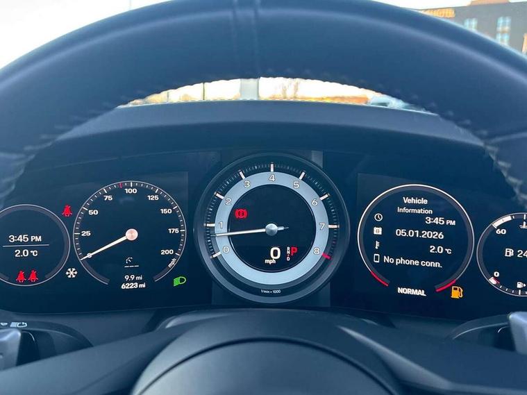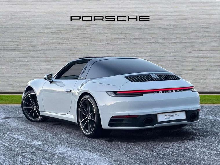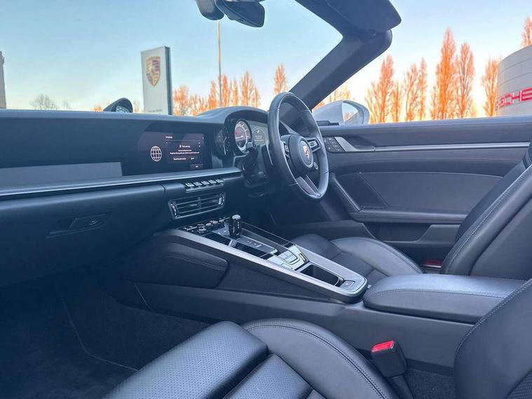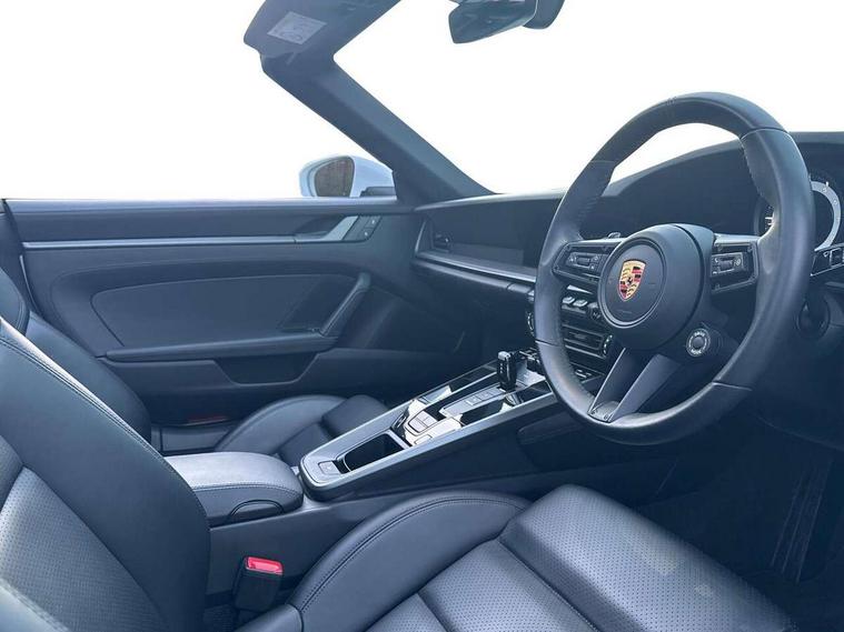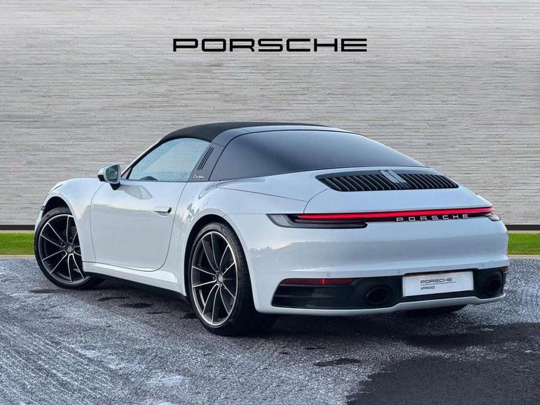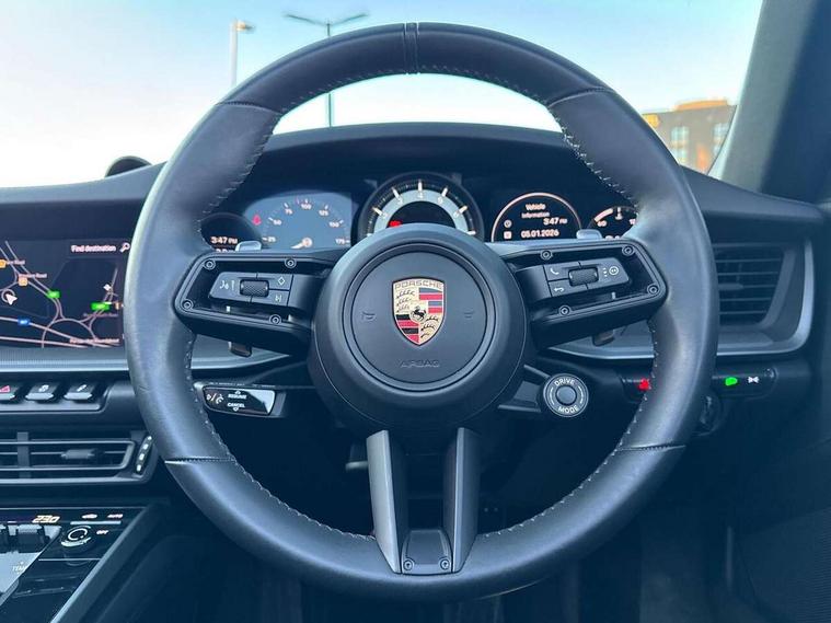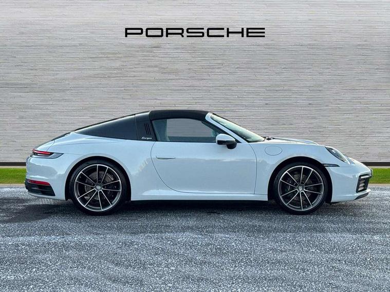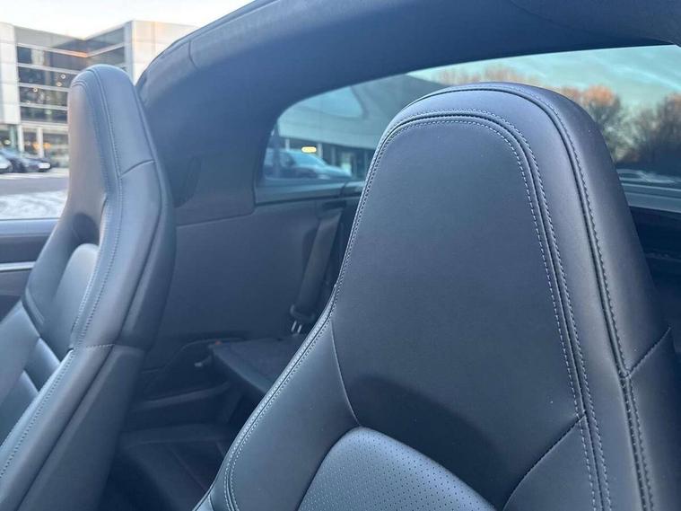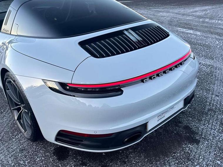10.9 inch centre display, 2 USB-C ports in center console main storage compartment lid, socket (12-volt) in passenger footwell, Automatic start/stop system, eCall emergency system, Gear indicator in rev counter, Instrument cluster with central analogue rev counter and two 7-inch TFT displays, Music streaming and online radio, remote services and a wide range of other Porsche connect services, Porsche Communication Management (PCM) including online navigation module, mobile phone preparation, audio interfaces and voice control system, Porsche WET Mode, Service indicator, Smartphone integration with Apple CarPlay and Android auto, Stationary management with HOLD function, Trip computer, Warn and brake assist including pedestrian protection, 8 Speed Porsche Doppelkupplung (PDK), All wheel drive with map controlled multi plate clutch Porsche Traction Management (PTM), Aluminium block and cylinder heads, Direct fuel injection (DFI), Expansion intake manifold, Four valve per cylinder, Integrated dry-sump lubrication with an on-demand oil pump, McPherson front axle with anti roll bar, Multi-link rear axle with anti-roll bar, Porsche Active Suspension Management (PASM), Porsche Stability Management (PSM), ABS with extended brake functions, Twin turbocharger intercooled, Two gasoline particulate filter, Two three-way catalytic converters and on-board diagnostics for monitoring emission control system, VarioCam Plus variable valve timing and switchable valve lift, Water cooled with thermal management, DAB Digital radio, "PORSCHE" lettering integrated in taillight strip, Auto deploying rear spoiler, Automatic headlight activation including welcome home lighting, Automatically dimming interior and exterior mirrors with integrated rain sensor, Electric window lifts with one touch operation and door seal protection, Electrically adjustable heated exterior mirrors on door waist rails, aspherical on driver's side, Engine compartment cover grille with vertical slats in silver colour (high-gloss), Fixed targa roll bar with trim in aluminium, gills and targo logo, Fully automatic fabric roof, curved and heated rear screen in laminated safety glass. Roof can be only operated when vehicle is stationary, Green tinted thermally insulated glass, Heated rear windscreen, Intelligent lightweight body in Aluminium/Steel composite construction, LED auxiliary light units in the front end with position lights, direction indicators and side indicators, Rear boot, Rear lid grille with vertical slats in silver gloss black, Retractable door handles, Side air intakes at front with active cooling flaps and air blades, Taillight strip including integrated parking lights and rear fog-light, Wind deflector in windscreen cowl surround, Windscreen washer system with aero wiper blades and washer jets, 12V socket in front passenger footwell, 2 individual seats in 2nd row, 2+2 seater with rear engine, 2-zone automatic climate control with separate temperature settings for driver and front passenger, Ascending centre console with storage compartment, Clothes hooks on seat backrests, Driver and front passenger illuminated vanity mirrors, Embossed leather on front center seat, side bolsters and front seat headrests, Front and rear head restraints, Heated front seats, Hood lining in black fabric, ISOFIX child seat mounting points on passenger seat, LED door lights, LED footwell lights, LED glove compartment lighting, LED ignition light, LED luggage compartment lighting, LED orientation light, LED reading lights, Lockable glove compartment, Luggage compartment at front, Luggage compartment lid release, Particle/pollen filter with active carbon filter, PDK gear selector with automatic mode, manual gear selection via shift paddles on the steering wheel, Single front passenger seat, Smooth finish leather on steering wheel rim, door handles, door panel armrests and centre console storage compartment lid, Split folding rear seat backrests, Storage compartments in each doors, Two individual cupholders 1x as inlet in centre console and 1x passenger side, 4 piston aluminium monobloc fixed + brake calipers at front and rear + brake calipers with black finish, Brake discs with 330mm diameter at front and rear, internally vented and cross-drilled, Electric parking brake, Electromechanical power brake, Full size two stage airbags for driver and front passenger, Pedestrian protection, Porsche side impact protection system (POSIP) includes side impact protection in doors, head/thorax airbags for driver and front passenger, Roll over protection integrated into fixed Targa roll bar, Tyre pressure monitoring system, Dashcam prep, Engine immobiliser with remote central locking and alarm system with ultrasonic sound based interior surveillance, Porsche vehicle tracking system (PVTS Plus), Remote central locking + boot release, Tyre sealing compound and electric air compressor kit,