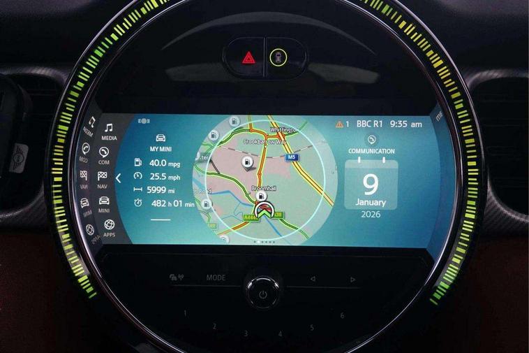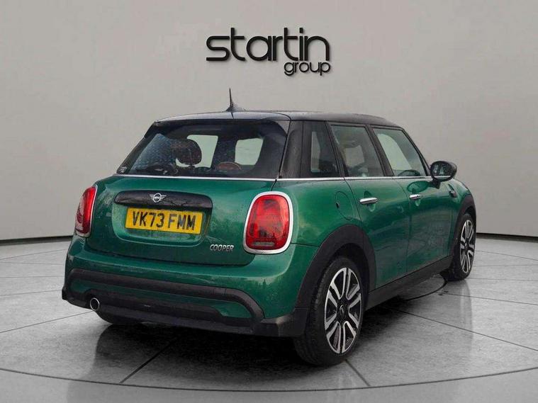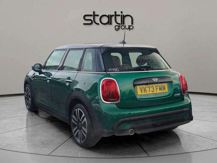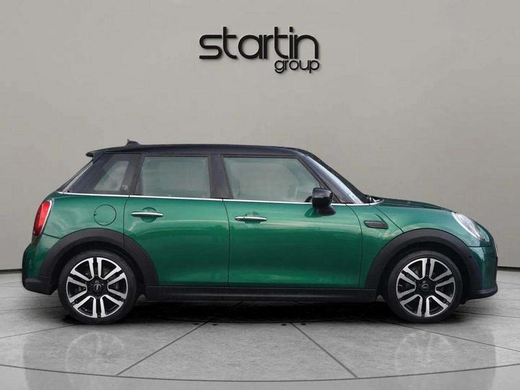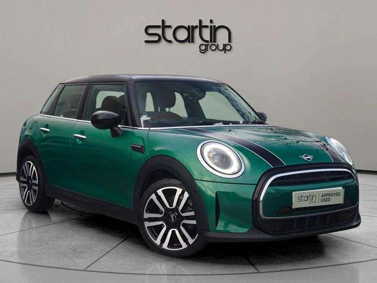 Apple CarPlay, Automatic start/stop function with brake energy recuperation, Compatible mobile phone bluetooth with audio streaming, Electro-mechanical speed dependant steering assistance, Flexible car sharing preparation, MINI Driving Modes - centre toggle switch to control driving setting (sport, mid and green), Mini E-call, MINI TeleServices, On board computer, Rear park distance control, Service interval indicator, Double Vanos system, Fully variable valve control, Gear change indicator display, High precision injection, Performance Control, Steptronic transmission with double clutch, 8.8" touchscreen with LED ring, FM tuner and DAB digital radio, 3rd brake light, Automatic headlight activation switch, Body colour fuel filler cap, Chrome line exterior - radiator grille bars, tailgate handle, lower front grille grating and rear central fog-light, Dynamic brake lights, Electric front+rear windows, Heated rear window, Heated windscreen washer jets, Metal door sill strips with MINI imprint, Model logo Cooper on right of tailgate, Rain sensor window wipers, Rear fog lights, Rear LED lights with union jack design, Rear side wing doors, Rear window wiper, Side scuttle panel with integrated indicator, Sun/heat protection glass, White indicator lenses, 12V Accessory socket in centre console, 3 seat bench in 2nd row, 4 lashing eyes in luggage compartment, 60/40 split folding rear seat, Anthracite headliner including grab handles and clothes hooks, Carbon black colour line - Knee roll and door armrest, Chrome interior highlights, Chrome line interior - air vents, gear lever base, door handles and speakers in doors, Cupholders, Front and rear head restraints, Front and rear isofix with front passenger airbag deactivation, Front and rear velour floor mats, Glove compartment, Height and length steering column adjustment, Interior lighting with 12 different colours across the dashboard, underneath door bezel with illuminated laser-engraved design on central display, Leatherette gearshift lever and handbrake gaiters, LED reading lights, vanity mirror lights, front foot well light and spotlight on front seats, Mechanical seat adjustment - forward/back & backrest for front seats and driver seat height adjust, MINI yours badge on exterior pillar, Multifunction steering wheel, Single front passenger seat, Storage compartments in doors, Sunvisors with vanity mirrors, Walknappa leather steering wheel with grey seam and MINI Yours badge on Piano Black lower steering wheel spoke, 3 point seatbelts on all five seats, 6 Airbags - front, side, head and seat belt tensioners, Anti-lock braking system (ABS), Child locks on rear doors, DSC - Dynamic Stability Control, Front and rear disc brakes, Hill start assist, Single tone fanfare horn, Tyre pressure monitoring system, Alarm system with tilt sensor, monitoring doors, bonnet interior and tailgate, Electronic vehicle immobiliser, Start/stop toggle with keyless go, Tool kit,