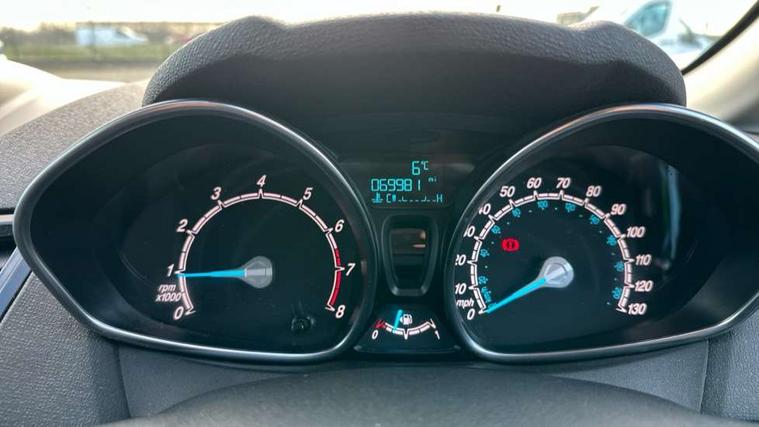 Immobiliser, MyKey system, Remote central locking, 6 speakers, Auxiliary input socket, DAB radio/CD and Ford SYNC Bluetooth connection with voice control, Steering wheel mounted controls, USB connection, 3 point seatbelts on all rear seats, ABS+EBA, Curtain airbags, Driver and passenger airbags, Drivers knee airbag, ESP + traction control, Front passenger airbag deactivation, Front side airbags, Hill start assist, Tyre pressure monitoring system, Body colour door handles, Body colour electric adjustable heated door mirrors, Body colour tailgate handle, Chrome beltline trim, Chrome surround for front fog lights, Courtesy headlamp delay, Electric front windows/one touch facility, Front fog lights, LED daytime running lights, Quickclear heated windscreen, Rear wiper, Tinted glass, Upper front grille chrome surround, 3 spoke leather steering wheel, 60/40 split folding rear seat, Adjustable head restraints, Ambient lighting, Boot carpet, Cloth upholstery, Footwell illumination, Front map reading lights, Front seat and rear pockets, Illuminated glovebox, Leather trimmed handbrake handle, Load area light, Manual air conditioning, Manual seat adjustment, Pollen filter, Rake/reach adjustable steering wheel, Electric power steering, SYNC Emergency Assistance, Trip computer,