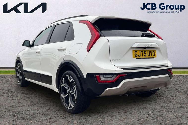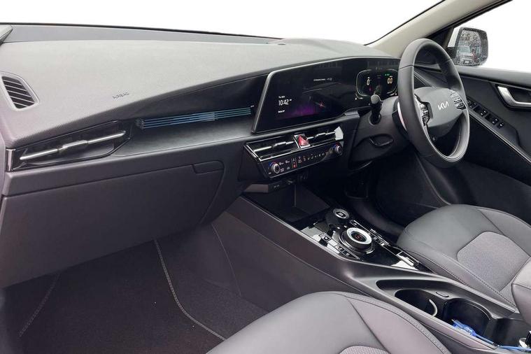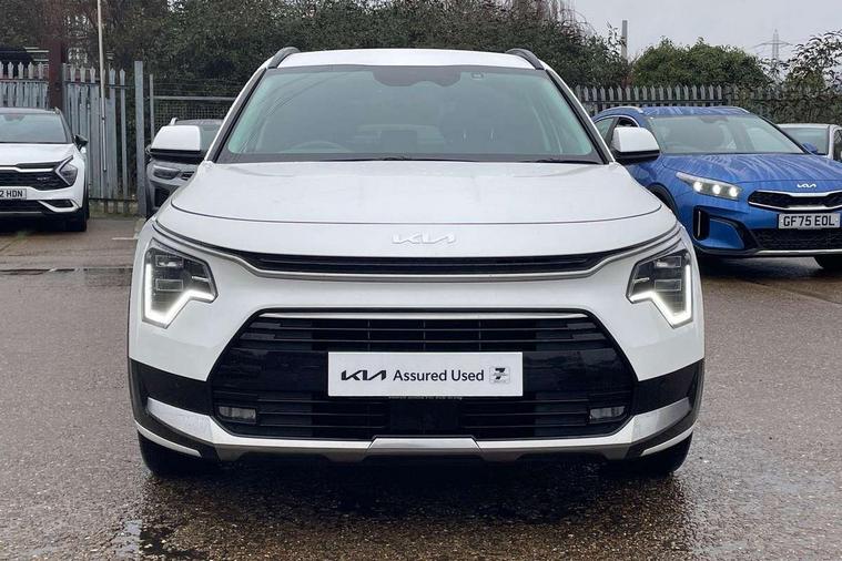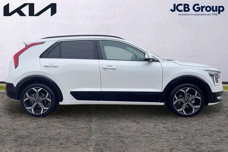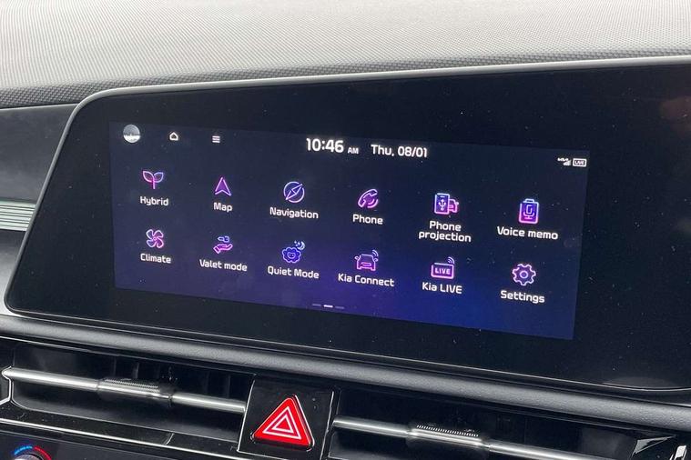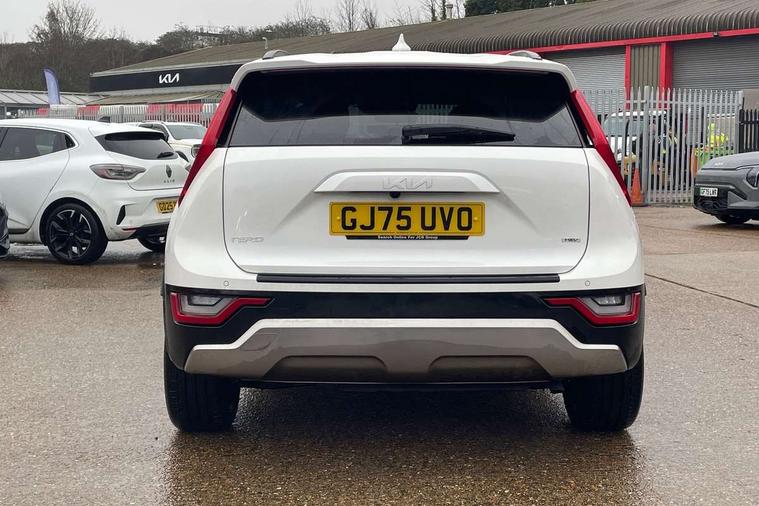 10.25" touchscreen satellite navigation, 4.2" driver display screen, Apple car play/Android Auto, Blind spot collision avoidance assist, Bluetooth connection, Drive mode select, E-call, Emergency stop signalling system, Forward Collision-Avoidance Assist (FCA) 1.5 - City/Pedestrian/Cyclist/Junction turning, Front parking sensors, Highway Driving Assist (HDA), Intelligent speed limit assist, Kia connect, Lane Following Assist (LFA), Lane keep assist, Motor driven power steering, Rear cross traffic collision avoidance assist (RCCA), Rear parking sensors, Reversing camera system, Safe exit warning (SEW), Smart cruise control with stop and go functionality, Tailgate, Trip computer with distance/fuel consumption/average speed, Wireless Smartphone charger, 220v AC Inverter, 'Shark fin' mobile antenna, 6 speakers, DAB Digital radio, Steering wheel mounted controls, USB port for connection of a media device, Acoustic windshield, All round electric windows with drivers and front passenger auto up/down and safety function, Auto dimming rear view mirror, Automatic defog system, Automatic headlight control system, Black window surrounds, Body colour bumpers, Body colour door mirrors, Body colour exterior door handles, Electrically adjustable and heated door mirrors with LED turn indicator, Electrically folding door mirrors, Front and rear chrome skid plates, Front fog lights, Gloss black radiator grille with chrome surround, Gloss black wheel arches, Heated rear window, LED daytime running lights, LED Headlights, LED High mounted brake light, LED rear combination lights, Privacy glass - Rear windows and tailgate, Rain sensing front wipers, Rear fog lights, Rear roof spoiler, Rear side wing doors, Rear wiper, Roof rails, Solar glass windscreen, Welcome and follow-me home light functionality, Windscreen Washer Level Warning, 12V socket in front, 12V socket in luggage compartment, 3 seat bench in 2nd row, 60:40 Split folding rear seats, All-round height adjustable headrests, Artificial leather steering wheel, Automatic air conditioning, Centre console cupholder, Centre console with storage box, Chrome coating interior door handles, Cloth / Artificial leather upholstery, Driver's power adjustable seat, Driver/passenger sunvisors with illuminated vanity mirrors, Drivers seat power lumbar support, Front and rear cabin lights, Front and rear door storage, Front cabin, rear & luggage compartment lights, Front passenger 1 x USB-C charging port, Front passenger seat manual adjustments, Glove box, Heated front seats, Heated steering wheel, ISOFIX Child seat top tethers and anchor fixings, Luggage area load cover, Luggage board, Manually adjustable steering column, Paddle shifts, Rear centre armrest with cupholder, Rear passenger 2 x USB-C charging ports, Seatback pocket - driver, Seatback pocket - front passenger, Shift by wire SBW, Single front passenger seat, Ventiliation ducts to rear compartment, 3 point seatbelts on all seats, ABS, Automatic unlocking of doors in case of impact, Curtain and side airbags, Dual shell horn, Electric parking brake with auto hold function, Electronic stability control, Front airbags, Front passenger airbag cut-off switch, Height adjustable front seatbelts, Hill start assist control (HAC), Knee airbags, Seatbelt reminder warning, Traction control, Tyre pressure monitoring system, Customisable automatic door locking, Customisable automatic door unlocking, Deadlocks, Engine Start/Stop Button with Smart Entry System, Locking wheel nuts, Manual child locks, Rear occupant alert, Smart key with motion sensor, Thatcham category 2 security alarm and immobiliser, Visible vehicle identification number, Warranty - 7 Years/ 100, 000 miles, Centre fascia chopped carbon, 18" Alloy wheels, Tyre mobility kit,
