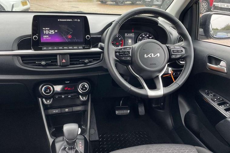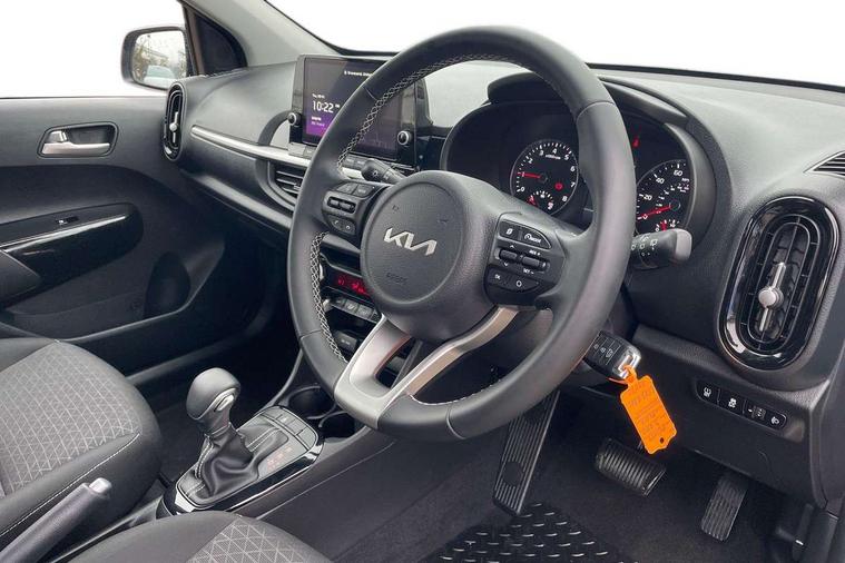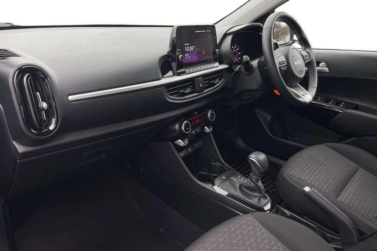 4.2" supervision monochrome cluster display, 8" touch screen satellite naviagtion with RDS and DAB with telematics, Apple car play/Android Auto with voice control, Cruise control + speed limiter, Emergency call service, Emergency stop signalling system, External temperature gauge, Forward Collision-Avoidance Assist (FCA) - City, Kia Connect (UVO), Motor driven power steering, Rear parking sensors, Reversing camera system with dynamic guidelines (Integrated into centre fascia screen), Tachometer, Tailgate, Trip computer, 6 speaker audio system, Bluetooth with music streaming, Steering wheel mounted controls, USB ports for connection of a media device, Automatic headlight control system, Black radiator grille with chrome surround, Body colour bumpers, Body coloured mirrors and chrome exterior handles, Day/night rear view mirror, Daytime running lights, Electric adjustable/heated/folding door mirrors with LED indicators lights, Front and rear electric windows with drivers's auto up/down function, Front fog lights, Headlamp levelling, Heated rear window, High mount brake light, MFR - Multi Focus Reflector halogen headlights with black bezel, Rain sensor, Rear fog lights, Rear side wing doors, Rear wash/wipe, Speed variable front wipers, Tinted glass, Visible VIN plate, Welcome and follow-me home light functionality, 1 x rear coat hook, 12V power point front, 2 seat bench in 2nd row, 3 x passenger assist grips, 60/40 split/folding 2nd row of seats, All round height adjustable headrests, Automatic air conditioning, Centre Console with Storage Box and Sliding Armrest, Cupholders in centre console, Driver and front passenger sunvisor with vanity mirror, Driver seat height adjust, Front cabin lights, Glovebox, High gloss lower centre fascia trim, door armrest and air vents, ISOFIX Child seat top tethers and anchor fixings, Leather trimmed steering wheel and gearshift, Luggage area light, Luggage area parcel shelf, Passenger front seatback pockets, Premium cloth upholstery, Silver paint finished interior door handles, Single front passenger seat, Slide/reclining front seats, Tilt adjustable steering wheel, Advanced Driver Assistance Pack - Picanto, 2 x 3-point rear seatbelts, ABS/EBD, Automatic unlocking of doors in case of impact, ESC + BAS + VSM + HAC, Front passenger airbag cut-off switch, Front seatbelt height adjusters, Front seatbelt pretensioners, Hill hold control, Hill start assist control (HAC), Knee airbags, Rear child proof door locks, Seatbelt warning, Side impact protection, Torque vectoring brake based and straight line stability (SLS), Traction control, Twin curtain airbags, Twin front airbags, Twin front side airbags, Tyre pressure monitoring system, Anti theft alarm, Engine immobiliser, Folding key, Locking wheel nuts, Remote central door locking, 15" Alloy wheels, Tyre mobility kit,