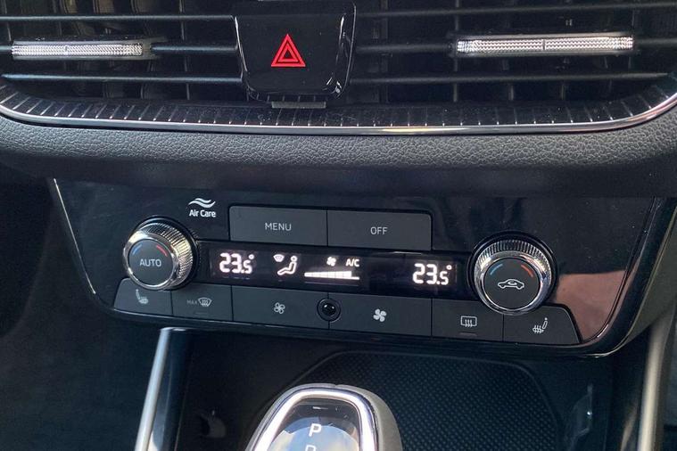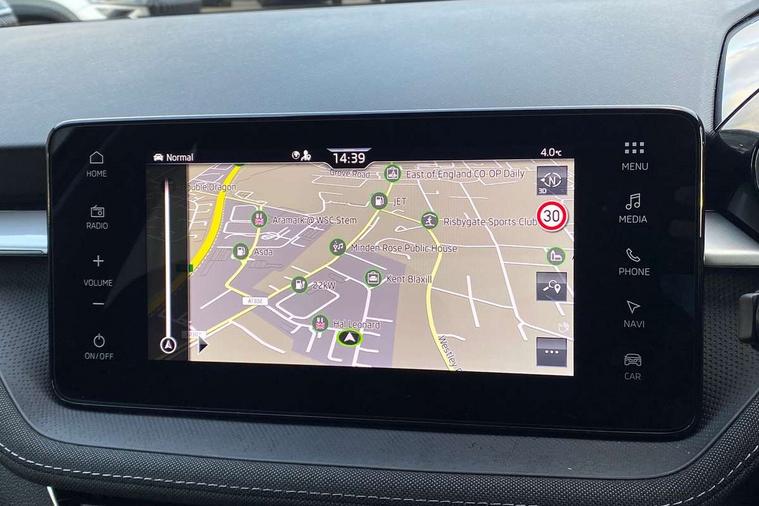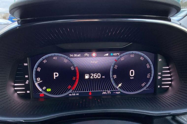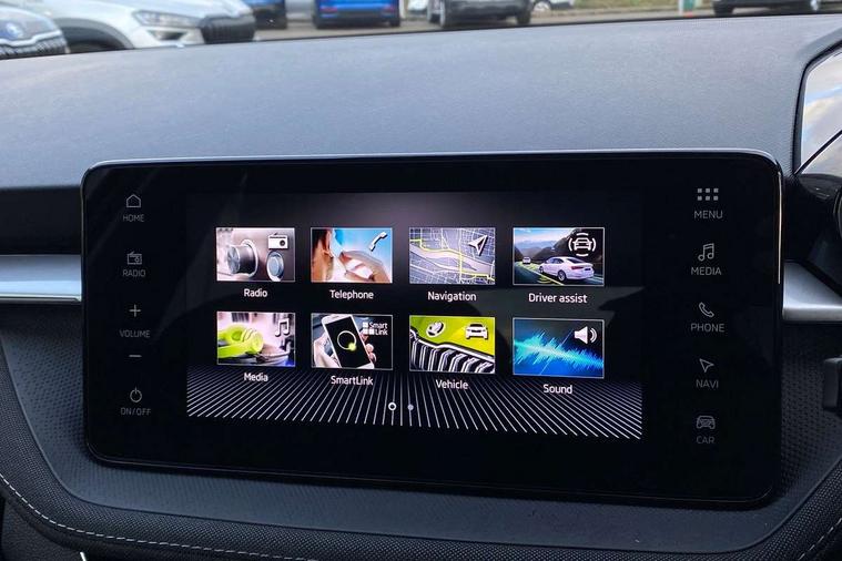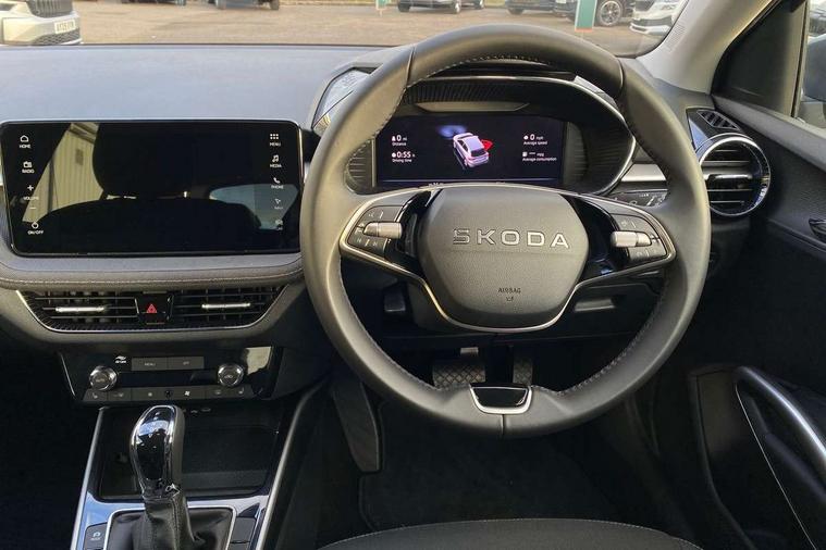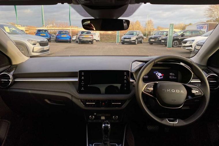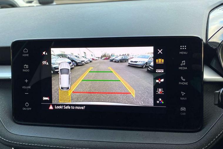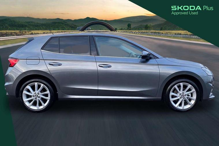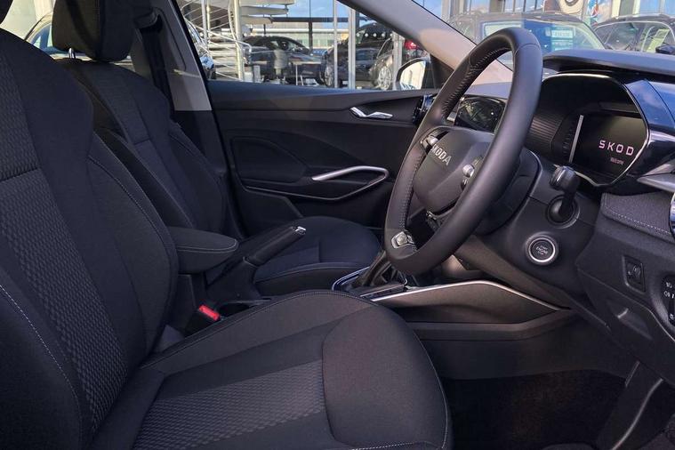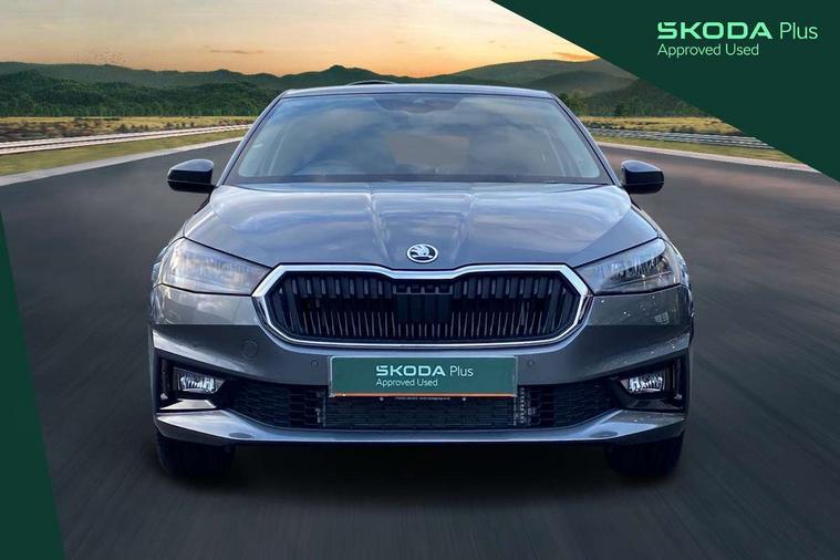 Advanced driver attention and drowsiness monitor, Bluetooth connection, Driver alert system, Electromechanical power steering, Exterior temperature gauge, Service interval indicator, Traffic sign recognition, Virtual cockpit with 10.25" colour display, Wireless SmartLink for Apple CarPlay and Android Auto, 6 Speakers (4 in front and 2 in rear), 9.2" colour display skoda navigation system with voice control and web radio, Auxiliary socket for external MP3 player, DAB digital radio reception, Auto dimming rear view mirror, Body colour door mirrors, Body coloured bumpers, Chrome window surround, Door mirror integrated indicators, Front and rear electric windows, Front window wiper intermittent control, Headlight range control - Automatic, Ice scraper in fuel cap, LED 3rd brake light, LED daytime running lights with coming and leaving home feature, LED rear lights, Privacy glass, Rear LED fog light, Rear side wing doors, Rear window wiper with washing nozzles, Roof mounted spoiler, SKODA tailgate lettering in chrome, Unique dark chrome design logo on alloy wheels, 2 LED reading lights in front and rear, 3 rear headrests, Backrest split and folding, Central console with fixed cup holder and storage box, Chrome handbrake release button, Comfort seats, Door sills with fabia badging, Dual zone air conditioning with climatronic electronic control, Fabric upholstery, Front centre armrest, Gearshift knob/handle in leather, Grain satin black interior door handles, Hand brake lever handle in leather, Height adjustable front headrests, Height adjustable front seats, Height adjustable steering wheel, ISOFIX and TopTether anchorage points to the outer rear seats, ISOFIX and TopTether on the front passenger seat, Luggage compartment lighting, Manually adjustable lumbar support in front seats, Pollen filter, Rear seat bench unsplit, Single front passenger seat, Skoda lettering on steering wheel, Storm grey headlining, Sun visors with mirror and airbag label on passenger side, Textile floor mats, Ticket holder, Ambient lighting pack - Fabia Hatchback, 3-point height adjustable front seats belts with pretensioner and force limiter, Automatic warning lights in case of crash, Driver and passengers airbag with switch off function, e-Call+, ESC including ABS, MSR, ASR, EDS, HBA and XDS, Front and rear seat belt warning, FRONT ASSIST (AEB City and AEB Inter Urban), Front side airbags, Head airbags, Hill hold control, One tone horn, Pedestrian protection, Three rear 3-points safety seat belts with pretensioner and force limiter including stop function for outer rear seat belts, Tyre pressure monitoring system, Anti-theft alarm system including immobiliser, interior monitoring, backup horn, and towing protection, Central locking with radio remote control, interior controls, SAFE function and 2 foldable keys, Chrome edged air vents, Grain satin black central console cover, Metallic grey upper decorative trim, Satin black door and side trim panel in front, Textile microsuede grey lower decorative trim with art grey stitching, Anti-theft wheel bolts protection, Super-low rolling resistance tyres,