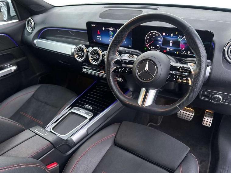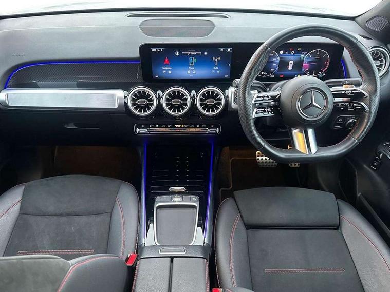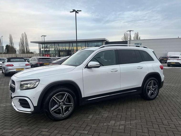 10.25 inch touchscreen central media display, 10.25" Digital instrument cluster display screen, 12 ultrasonic sensors in front and rear bumpers, 180 degree reversing camera with parking guidelines, Additional drive program "OFF-ROAD", Assisted parking: reversing backwards into perpendicular and parallel parking spaces, Attention assist - Monitors steering behaviour and long journey fatigue, Blind spot assist, Bluetooth connection, Brake pad wear indicator warning light, Car wash mode, Convenience opening and closing, Direct steering, DYNAMIC SELECT with a choice of driving modes (ECO, Comfort, Sport and Individual), ECO start/stop function, Engine start/stop button, Exit warning function, Fluid level warning indicator for fuel, oil, coolant and washer fluid, Hard disk navigation, Hey Mercedes Voice activation, Lamp failure indicator, Lane keep assist, MBUX augmented reality for navigation, MBUX navigation premium, Mercedes me connect including emergency call system, accident recovery, breakdown management and maintenance, Mercedes me remote services, Outside temperature gauge, Owners manual and service booklet in English, Pre-installation of private car share, Preinstallation for parking damage notification, Radio aerial integrated into front and rear windshields, Remote boot closing, Service indicator (ASSYST), Smartphone integration with Apple CarPlay and Android auto, Speed limit assist, Tailgate, Trip computer in multifunction display with current consumption indicator, Ultrasound sensors - positioned in the handle of the tailgate, Wireless charging, Comfort suspension with ride height lowering, Rear axle multi-link, 1 USB-C port in the oddments compartment (Charge + Data transfer), 2 USB-C ports for the rear on the centre armrest (Charge only), 2 USB-C ports under the front centre armrest (Charge + Data transfer), DAB digital radio tuner, MBUX multimedia system, Mercedes Benz sound system (225 W) with 10 speakers, 1 central speaker, speakers on doors, a tweeter on door, one sub woofer + boost amplifier, Pre installation for Mercedes Benz Link, Adaptive brake lights, Adaptive high beam assist, AMG front apron with front splitter in the colour of the vehicle with chrome trim element, AMG rear apron with visible tailpipe trim and chrome trim element, AMG specific/dual flow exhaust pipes in chrome (non-functional), Auto dimming rear view mirror, Beltline trim and window line trim strip in high gloss aluminium, Black grained side sill trim with chrome inlay, Body coloured door handles, Electric adjustable and heated door mirrors with integrated LED side indicators, Electric folding door mirrors, Front and rear electric windows, Headlamp assist automatic headlamp activation, Heat insulating dark-tinted glass starting from B-pillar, Heated glass rear windscreen + timer control, High level LED third brake light, Illuminated door sill panels with Mercedes-Benz lettering, Interior mirror with black reading lamps and frameless, LED high performance headlamps with integrated LED daytime running lights, LED tail lamp, Polished aluminium roof rails, Radiator grille as a diamond grille with chrome pins and central Mercedes star, Rain sensor windscreen wipers, Rear fog lamp, Rear side wing doors, Rear wiper, Single louvre in matt grey with chrome inserts and black highlights, Two visible tailpipe trim elements exhaust, Ultrasonic sensors - positioned in the front and rear bumpers, Wheel arch liners in the colour of the vehicle, 12V socket in the oddments compartment, 3 seat bench in 2nd row, 3 twin spoke flattened multifunction steering wheel in nappa leather - horizontal twin spoke in high gloss black, vertical twin spoke in silver chrome, 4 way adjustable lumbar support, 40:20:40 split folding rear seats, Air conditioning - Two zone thermotronic luxury automatic climate control with display, Air vents with silver chrome surrounds, AMG floor mats, AMG sports pedals with brushed stainless steel surfaces and black rubber studs, Automatic child seat recognition sensor, Black roof lining, Door handles with chrome inserts, Fluorescent jacket, Front and rear headrests, Front centre armrest with stowage, Galvanised steering wheel gearshift paddles in silver chrome, Handle recess lighting, Heated front seats, Height adjustable head restraints, Height/reach adjustable steering column, Interior lighting - 64 colour Ambient lighting, Luggage net on driver/front passenger seat backrest, Single front passenger seat, Sports seats, Stowage compartment with retractable cover, Sun visors with illuminated vanity mirrors, Third row of seats for two people on rear seat, Twin front cup holders, Two outer rear seat isofix and top tether child seat fixing points, Easy pack tailgate, Interior lighting with light and sight pack - GLB, Seat comfort package - GLB, 3 rear 3 point seatbelts, Active bonnet pedestrain safety measure which detects an impact and raises bonnet by 65mm, Active brake assist includes forward collision warning system with autonomous braking, Adaptive brake assist with hold function and hill start assist, Airbags - kneebag for driver, Anti-lock braking system (ABS) with brake assist, Black seatbelts, Bonnet with power domes, Childproof locks manually operated for rear doors and electrically operated for rear power windows, Crash responsive emergency lighting, Curve dynamic assist, Downhill speed regulation (DSR), Driver and front passenger head and sidebags, Driver and front passenger windowbags, Dual stage driver and front passenger airbags, Electric parking brake, Electronic stability programme with acceleration skid control, Front and rear seatbelt reminder, Front brake callipers with Mercedes Benz lettering, Front passenger seat occupancy sensor, Perforated front brake discs, Tyre pressure monitoring system, Warning triangle and first aid kit, Guard 360 degree vehicle protection - Anti theft alarm system, tow away protection with visual, acoustic warning and alarm, Interior monitoring system, KEYLE