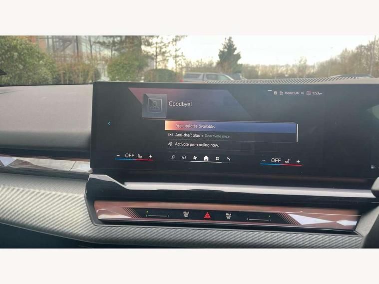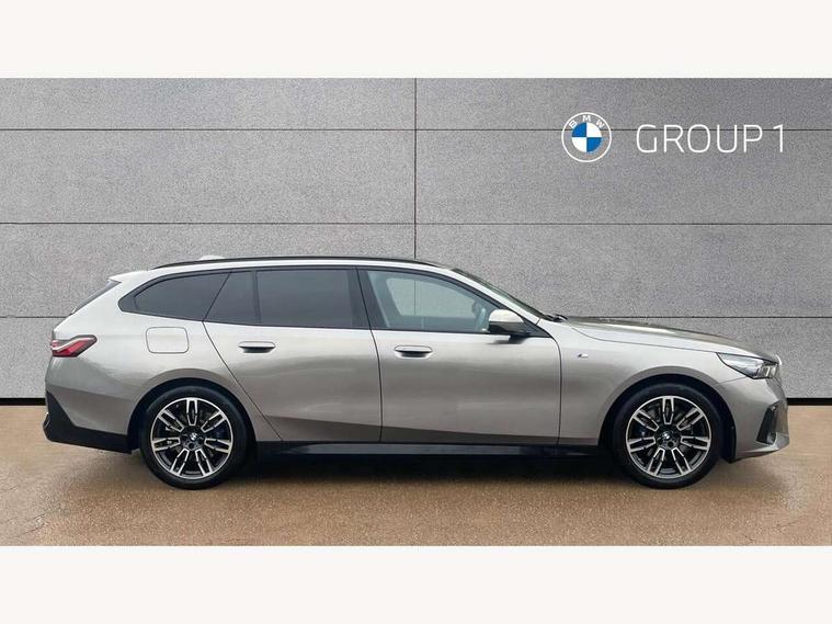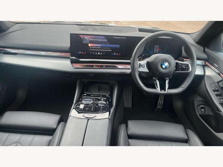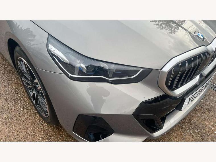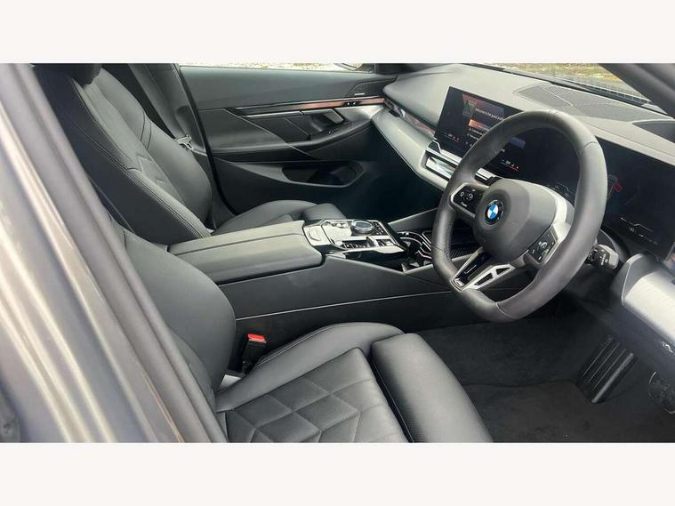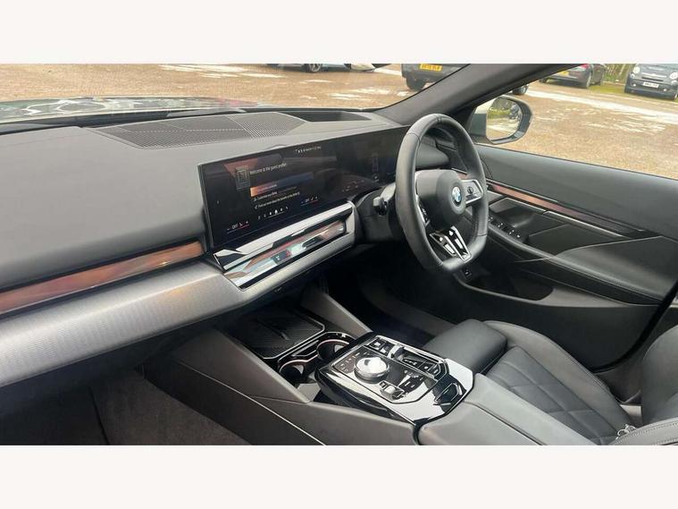 Automatic tailgate operation, BMW ConnectedDrive online services, BMW legal emergency call, BMW Teleservices, Brake pad wear indicator, Cruise control with brake assist, Driving Assistant Plus Preparation, Front collision warning with brake intervention, Lane departure warning with active return, Left turn warning with brake function, Multifunctional instrument panel, Oil sensor for level and grade, On board computer inc. average speed, fuel consumption, liquid crystal Info display, journey computer, outside temperature display, personal profile, On-board diagnosis - OBD, PAS, Personal e-SIM, Powered by Operating System 7.0, Run flat indicator, Service interval indicator, Speed limit Info with manual speed limit assist, Stop/start button, 8 speed automatic steptronic transmission with gearshift paddles, DAB tuner, Acoustic glazing, Adaptive LED Headlights, Automatic cornering lights, Automatic windscreen wipers and automatic headlight, BMW selective beam, Body colour door handles, Body coloured bumpers, Dynamic brake lights with LED technology, Electric adjustable door mirrors, Electric front and rear windows with fingertip open/close + anti-trap facility and comfort closing function, Follow me home headlight function, Headlight elements in blue, Heated windscreen washer jets, LED daytime running lights, LED third brake light, Light colour close to that of ordinary daylight, Optimum, homogeneous illumination of the road, Rear side wing doors, Rear wiper, 2 zone automatic air conditioning, 3 seat bench in 2nd row, 3 spoke leather M steering wheel in BMW M specific design with M badge, Armrest - front and rear integrated door trim, centre console includes storage compartment, rear centre includes 2 cupholders, Child seat ISOFIX attachment with rear outer seats includes top tether, Electric adjustable front sports seats, Electric adjustable steering column, Electrically adjustable lumbar support for driver and front passenger, Heated driver and front passenger seats, High-gloss black door switch cluster, power window switch and tailgate button on first and second row seat, M Anthracite headlining, M Sport pedal covers in stainless steel, Rear headrests, Single front passenger seat, Through loading system with 40/20/40 rear seat backrest split, Velour floormats, Wireless charging tray, Ambient lighting pack - 5 Series/I5, Connected package professional - 5 Series/I5, Driving assistance pack - 5 Series/I5, Expanded exterior mirror package - 5 series/I5, M high gloss shadow line pack - 5 Series/ I5, M Sport exterior styling pack - 5 Series/I5, 3 rear three point seatbelts, Active protection, Airbag deployment is controlled with respect to the intensity and scope, Anti-lock braking system (ABS), Brake assist, Brake energy regeneration, Cornering brake control (CBC), Crash sensor activating central locking release, hazard warning lights, fuel cut off and interior lighting, Driver and front passenger airbags, Driver central airbag, Driver/front passenger side airbags, DSC - Dynamic Stability Control, Dynamic brake control, Dynamic Traction Control - DTC, Electromechanical parking brake with automatic drive away release and auto hold function, Electronic brake force distribution, Engine drag torque control, Front and rear brake discs with interior ventilation, Front and rear curtain airbags, Front head restraints with anti-whiplash, Head airbags for first and second row seats, Hill start assist, Locking of doors after driving off, M Sport brakes in dark blue metallic painted brake callipers with M designation, Mechanical child proof lock on rear doors, PC iBrake PostCrash approach control warning with light braking function, Side impact protection, Trailer stability control, Two tone horn, Tyre pressure monitoring system, Warning triangle and first aid kit, Alarm system, Locking wheel bolts including wheel bolt adapter, Tyre repair kit,
