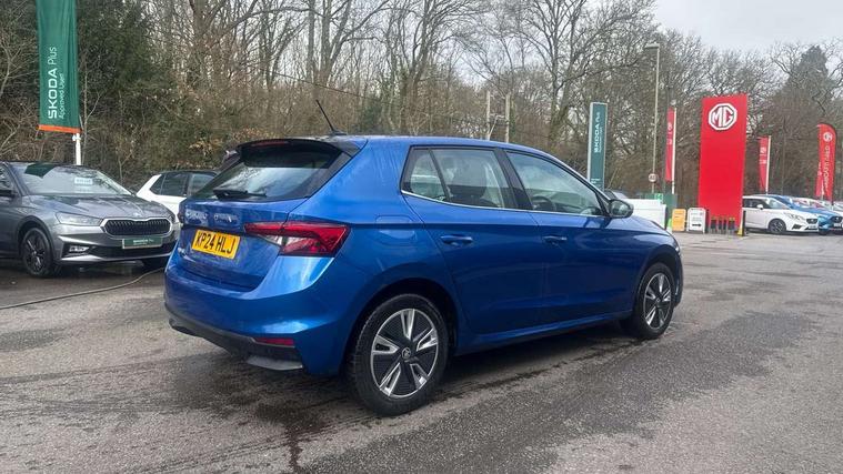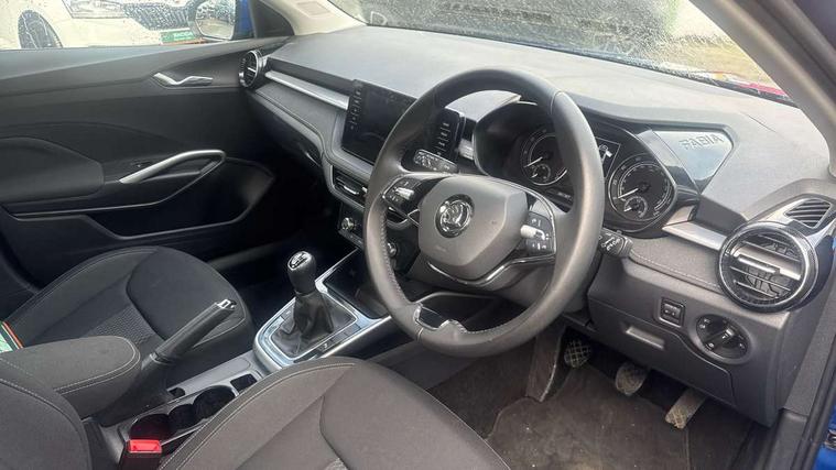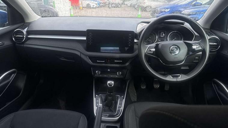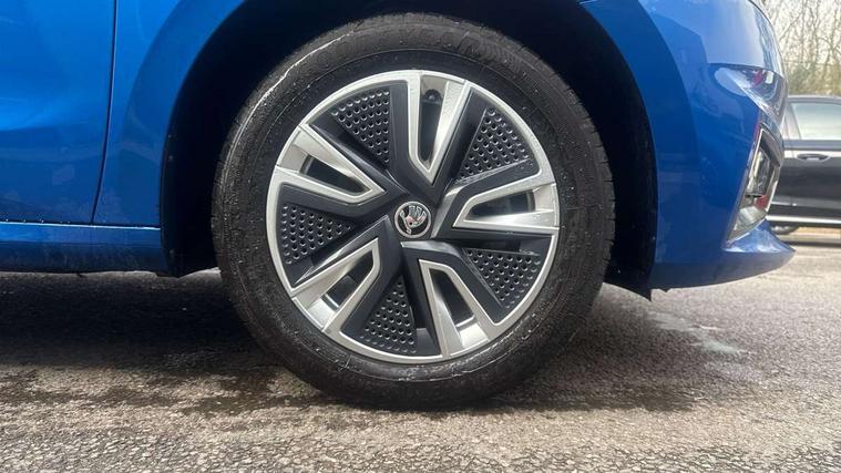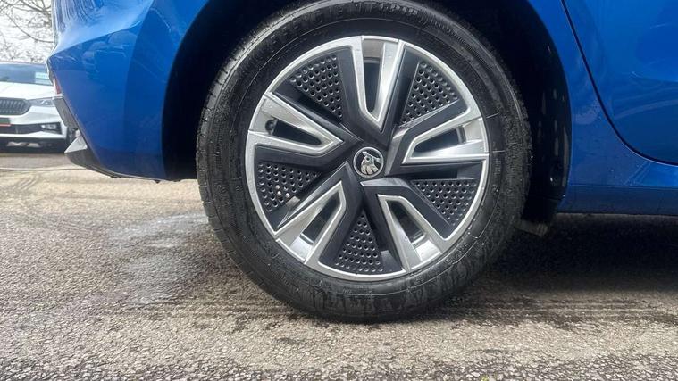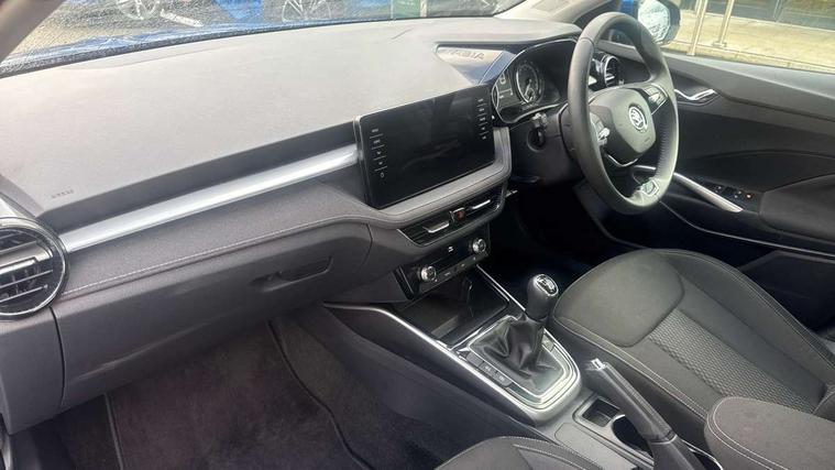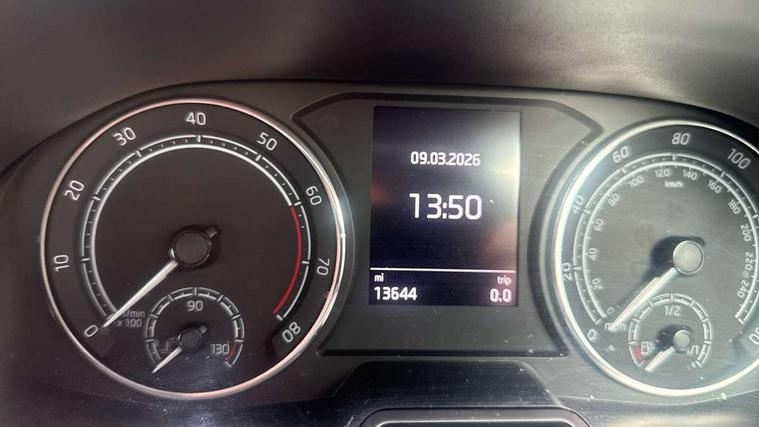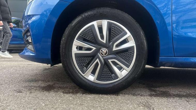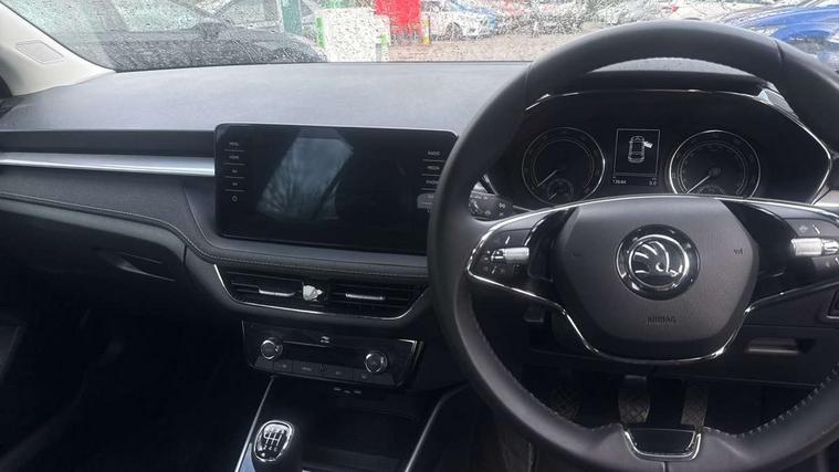 Bluetooth connection, Driver alert system - DAS, Electromechanical power steering, Exterior temperature gauge, Service interval indicator, 2x USB-C in the front (for data transmission and charging), 6 Speakers (4 in front and 2 in rear), Auxiliary socket for external MP3 player, DAB digital radio reception, Web radio, Auto dimming rear view mirror, Basic LED Headlights, Body colour door mirrors, Body coloured bumpers, Chrome window surround, Door mirror integrated indicators, Electrically adjustable and heated door mirrors, Front and rear electric windows, Front fog lights, Front window wiper intermittent control, Headlight range control - Automatic, Ice scraper in fuel cap, LED daytime running lights with coming and leaving home feature, Rain sensor, Rear LED fog light, Rear side wing doors, Rear window wiper with washing nozzles, Roof mounted spoiler, SKODA tailgate lettering in chrome, Third brake light, 3 rear headrests, Backrest split and folding, Central console with fixed cup holder and storage box, Chrome handbrake release button, Comfort seats, Fabric upholstery, Front centre armrest, Gearshift knob/handle in leather, Hand brake lever handle in leather, Height adjustable front headrests, Height adjustable front seats, Height adjustable steering wheel, ISOFIX and TopTether anchorage points to the outer rear seats, ISOFIX and TopTether on the front passenger seat, Luggage compartment lighting, Manually adjustable lumbar support in front seats, Pollen filter, Rear seat bench unsplit, Removable cup holder, Single front passenger seat, Storm grey headlining, Sun visors with mirror and airbag label on passenger side, Textile floor mats, Ticket holder, Umbrella in drivers door, 3-point height adjustable front seats belts with pretensioner and force limiter, Automatic warning lights in case of crash, Driver and passengers airbag with switch off function, e-Call+, ESC including ABS, MSR, ASR, EDS, HBA and XDS, Front and rear seat belt warning, FRONT ASSIST (AEB City and AEB Inter Urban), Front side airbags, Head airbags, One tone horn, Pedestrian protection, Three rear 3-points safety seat belts with pretensioner and force limiter including stop function for outer rear seat belts, Tyre pressure monitoring system, Anti-theft alarm system including immobiliser, interior monitoring, backup horn, and towing protection, Central locking with radio remote control, interior controls, SAFE function and 2 foldable keys, KESSY - Keyless engine start/stop, Chrome edged air vents, Satin black door and side trim panel in front, Anti-theft wheel bolts protection, Super-low rolling resistance tyres,