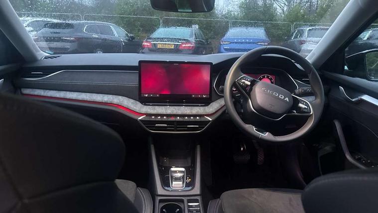1x USB Typc C port in rear view mirror, 4x USB Type C ports - 2x in front centre console and 2x in rear (45W), Drive mode selection, Driver fatigue sensor, eCall emergency system, Electro-mechanical power steering, Front assist system, Traffic sign recognition, Turn Assist, Virtual Cockpit - 10.25" digital display, Voice control system, Wireless charging (15W) with cooling function, Wireless SmartLink for Apple CarPlay and Android Auto, 13" touchscreen display with navigation, DAB Digital radio, Aero front windscreen wipers with intermittent function, Auto dimming rear view mirror, Body colour bumpers, Body colour door mirrors and handles, Chrome grille surround, Chrome strip in lower front bumper, Chrome window surrounds, Electric front and rear windows, Electrically adjustable, heated, folding and driver side auto-dimming door mirrors, Heated rear windscreen, High level third brake light, Ice scraper in fuel cap, LED daytime running lights, LED Headlights, Logo projection in front doors, Rain and light sensors, Rear fog light on one side and reversing lights on both sides, Rear privacy glass, Rear side wing doors, Rear wiper, 12 volt socket in boot, 3 rear headrests, 3 seat bench in 2nd row, 4 foldable roof handles, Boot net programme, Front head restraints, Heated front seats, Illuminated glovebox, Interior door handles in dark chrome, Jumbo Box storage, Luggage compartment lighting x2 lights, Mechanical rear seat release from boot, Parcel shelf - folding, Single front passenger seat, Steering wheel in black leather with black stitching, Storage compartments in left and right of boot, Sun visors with mirrors, Sunglasses storage, Ticket holder, Two-spoke leather multi function steering wheel with paddles, Umbrella in door panel, Unsplit rear bench seat, split folding backrest with centre armrest with cupholder, Comfort package - Octavia, 3x3 point rear seat belts, Alarm with interior monitoring, tilt sensor and back up horn, Curtain airbags and front side airbags, Driver and front passenger airbags, Drivers knee airbag, Electronic parking brake, ESC including ABS, EBV, MSR, ASR, EDS, HBA, DSR, Front central airbag, Hill hold assist, ISOFIX on front passenger seat and outer rear seats, Passenger airbag deactivate switch, Three point seat belts in front and rear, Two tone horn, Tyre pressure monitor, Visual and acoustic seat belt reminder, Warning reflectors in front door, Anti-theft wheel bolts, Keyless entry and start/stop, Remote central locking, Chrome air vent surrounds,