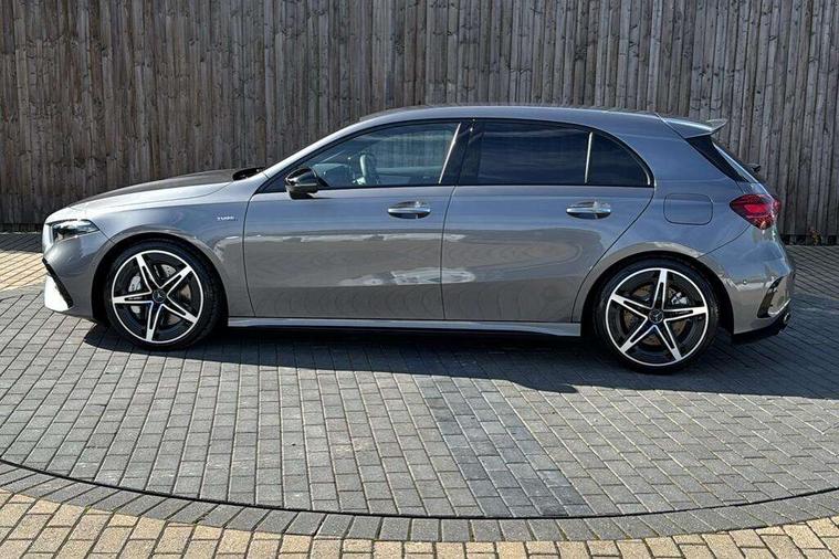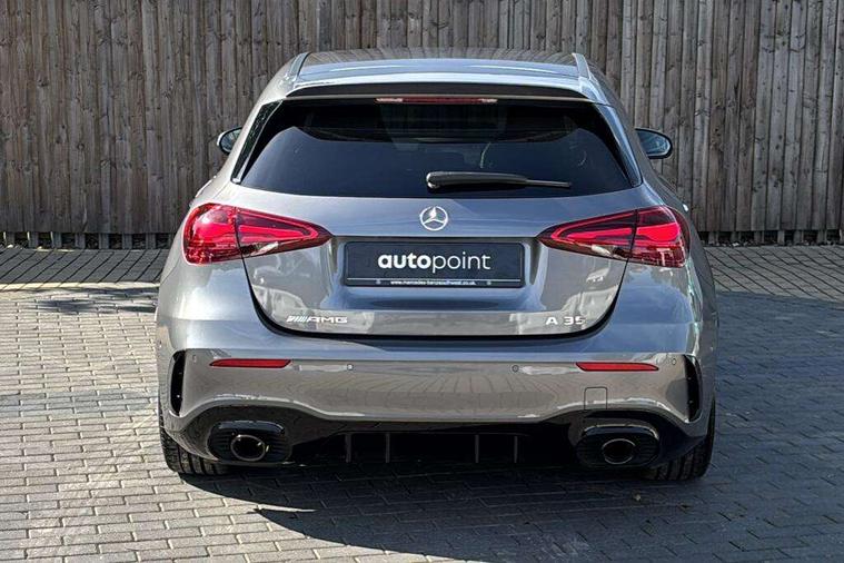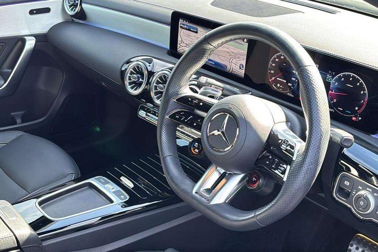 10.25 inch touchscreen central media display, 10.25" Digital instrument cluster display screen, Attention assist, Brake pad wear indicator warning light, Car wash mode, Cruise control + speed limiter, Direct steering, Direction indicators with lane change function, Dual bluetooth interfaces, DYNAMIC SELECT with driving programs (Slippery, Comfort, Sport, Sport+ and Individual), Easy pack tailgate hands-free access, ECO start/stop function, Engine start/stop button, Fluid level warning indicator for fuel, oil, coolant and washer fluid, Hard-disk navigation, Hey Mercedes Voice activation, Lamp failure indicator, MBUX augmented reality for navigation, Mercedes me connect including emergency call system, accident recovery, breakdown and maintenance management, Mercedes me remote services, Outside temperature gauge, Owners manual in English, Pre-installation of private car share, Preinstallation for Mercedes Benz link, Remote boot closing, Service indicator (ASSYST), Smartphone integration with Apple CarPlay and Android auto, Speed sensitive power steering, Trip computer in multifunction display with current consumption indicator, Wireless charging, AMG suspension, DAB Digital radio, MBUX multimedia system, Mercedes Benz advanced sound system (225 W) with 10 speakers, 1 central speaker, speakers on doors, a tweeter on door, one sub woofer + boost amplifier, 4 Electric Front and Rear windows, Adaptive brake lights, AMG body styling - AMG front apron with front splitter and AMG rear apron and visible exhaust tailpipe trim elements, AMG Front apron with flics as air deflector elements on the outer air intakes, AMG radiator grille with twin blade lamella and AMG Lettering, AMG Rear apron with specific diffuser look with four vertical fins and two round chrome plated tailpipe trim elements with a diameter of 90 mm, AMG spoiler lip on roof, Beltline strips in High gloss Black, Body colour bumpers, Body colour door handles with chrome inserts, Body colour side skirt, Electric adjustable and heated door mirrors with integrated LED side indicators, Front splitter and trim elements on the louvres in the outer air inlets, Front wings wheel arches with TURBO 4MATIC lettering, Headlamp assist automatic headlamp activation, Heat insulating dark tinted rear and rear side windows, Heated glass rear windscreen + timer control, LED High level third brake light, LED High Performance headlamps including integral LED daytime running lamps and adaptive highbeam assist, LED tail lamp, Privacy glass, Radio aerial, Rain sensing windscreen wipers with two sensitivity settings, Rear fog lights, Rear side wing doors, Rear windscreen wiper, Wider wheel arches for AMG wheels, Window line trim strip in black, 3 seat bench in 2nd row, 4 way lumbar support, 40:20:40 split folding rear seats, AMG floor mats, AMG Performance steering wheel in nappa leather, Automatic child seat recognition sensor, Black air vents with surround in silver chrome, Black roof lining, Brushed stainless steel sports pedals with rubber studs, Front centre armrest with stowage, Front seat backs luggage nets, Heated front seats, Height/reach adjustable steering column, Illuminated AMG front door sills with changeable cover, Interior lighting - 64 colour Ambient lighting, Interior mirror with reading lamps in black and frameless, Rear armrest with 2 cupholders, Seat occupancy sensor for front passenger seat, Silver coloured aluminium gear shift paddles on steering wheel, Single front passenger seat, Sports seats with integrated headrests, Stowage compartment in centre console with retractable cover, Sunvisors with illuminated vanity mirrors, Twin front cupholders, Two zone thermotronic luxury automatic climate control, AMG night pack - A Class, Light and sight pack - A Class, Mirror package - A Class, Parking pack - A Class, Seat comfort pack - A Class, USB pack plus - A Class, 3 rear 3 point seatbelts, ABS with Brake Assist, Active bonnet, Adaptive brake assist with hold function and hill start assist, Black seatbelts, Bonnet with power domes, Childproof locks manually operated for rear doors and electrically operated for rear power windows, Crash responsive emergency lighting, Driver and passenger head and side airbags, Drivers knee airbag, Dual stage driver/passenger airbags, Electronic parking brake, ESP curve dynamic assist, ESP with ASR, Exit warning, Front and rear seatbelt reminder, Front brake calipers with AMG lettering, ISOFIX and top tether child seat fixing points in two outer rear seats, Tyre pressure monitoring system, Warning triangle and first aid kit, Window airbags, Alarm system/interior protection/immobiliser, Guard 360 degree vehicle protection, Keyless entry lock/unlock, Keyless Go, Remote central locking and crash sensor with emergency opening function, Light longitudinal grain aluminium trim, 19" AMG 5 twin spoke light alloy wheels aerodynamically optimised painted in matt black with high sheen finish, Summer tyres, Tirefit sealant kit,