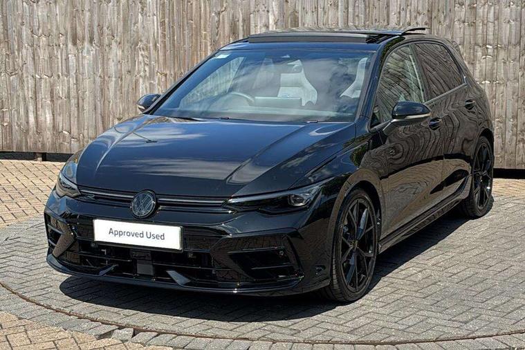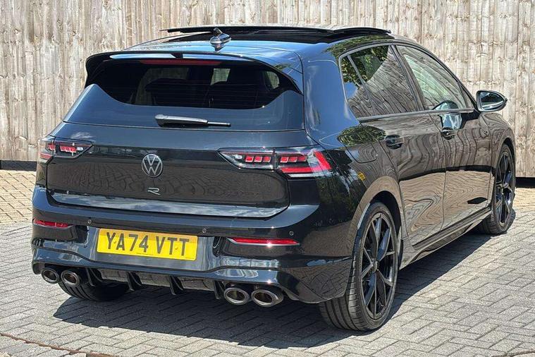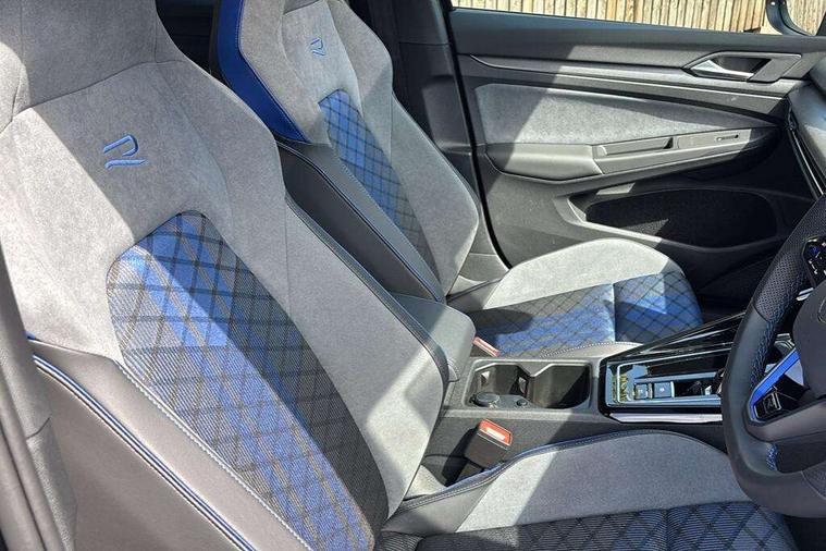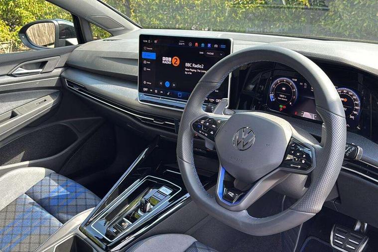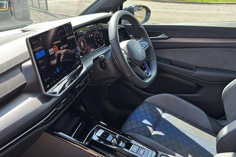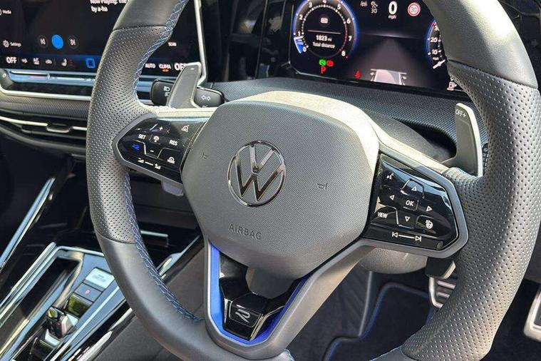 Activated carbon canister, Adaptive cruise control (ACC), Advanced driver attention and drowsiness monitor, Dynamic road sign display, E-Sim card for online connectivity, eCall emergency call system, Electronic maximum speed limit increased to 270 km/h, includes driving Modes 'drift' and 'special', larger roof spolier and GPS laptimer + G-Meter, Multi-color Digital cockpit pro, selection of different info profile possible, Multifunction front facing camera for distance control, Navigation system, Oncoming vehicle braking when turning including swerve support, Preparation for light assist system, Progressive steering, Side assist blind spot lane change system, rear traffic alert and exit warning system, Speed limiter, Speedo, rev counter, electronic odometer, trip, service interval display, exterior temperature and fuel gauge, Traffic jam assist, Voice enhancer and voice control, Warning signal and warning light for front and rear seatbelts not fastened, We connect plus preparation, We connect preparation, Wireless app connect, All wheel drive - 4Motion, Petrol Particulate Filter, Sports suspension, Start-stop system with battery regeneration (recuperation - energy recovery during braking), XDS electronic differential lock for improved traction and handling, 2 USB C ports in front, 2 USB charging sockets on the centre console in the rear charging capacity upto 45W, Comfort telephony + wireless charging, without wireless aerial connection, Digital radio reception (DAB), Diversity antenna for FM reception, Gaming platform via car app, Infotainment system with 12.9" display, Mobile phone interface with inductive charging feature, 3rd brake light, Auto dimming rear view mirror, Auto headlights, Automatic headlamp activation with Coming home and Leaving home feature, Black badge on B-pillar, Black mirror caps, Black strips on radiator grille and headlights, Body colour door handles, Darkened headlights, Darkened R Logos and VW logos in front, rear and on fender, Exhaust system with black tailpipe, Exterior ambient lighting with illuminated lighting animation and wake up/goodbye scenario, Exterior mirrors convex on the left and aspherical on the right, Front and rear electric windows, Front fog lamps and cornering light, Heat insulating windshield made of laminated glass, LED daytime running lights, LED matrix headlights with ambient light V2, advanced high beam, dynamic range contol with cornering, LED rear lamp with indicator, poor weather, R name plate, Rain sensor, Rear fog light on one side and reversing lights on both sides, Rear side wing doors, Rear tinted glass 65% light absorbing from B pillar backwards, Rear windscreen washer and wiper with interval delay, Remote electrically foldable door mirrors, puddle lights and reverse activated passenger's door mirror, Welcome light with surround lighting, 12V socket in front centre console, 12V socket in luggage compartment, 3 rear head restraints, 3 seat bench in 2nd row, 30 colour ambient lighting, illuminated center console storage compartment in front, Air care climatronic 3 Zone automatic climate control with rear air conditioning control panel, Aluminium gearshift handle, Brushed stainless steel pedals, Carpet mats, front and rear, Front centre armrest, Integrated front head restraints, ISOFIX anchors for child seats on outer rear bench seats and on front passanger seat compatible for i-Size, Luggage compartment lighting, Rear cupholder and loadthough, Single front passenger seat, Soul black instrument panel, Split folding backrest with centre armrest and unsplit rear seat bench, Storm grey roof lining, Sun visors with illuminated vanity mirrors, Driver assistance pack - Golf DSG Estate/Hatchback, R styling pack - Golf, Technology park and comfort pro package - Golf Hatchback, 3 point height adj front seatbelts + pretensioners, 3 rear three point seatbelts, ABS, Autonomous emergency braking front assist with pedestrian and cyclist monitoring, Child locks on rear doors, Disc brakes in rear incl. brake calipers in black with darkened R-logo, Driver and front passenger airbag with front passenger airbag deactivation, Electronic parking brake with auto hold, ESC (Electronic Stability Control), Extended pedestrian protection measures, Hill start assist, Two tone horn, Tyre pressure loss indicator, Volkswagen roadside assistance, Anti theft wheel bolts, Preparation for alcohol interlock, Wheel hub cover with darkened R-logo,