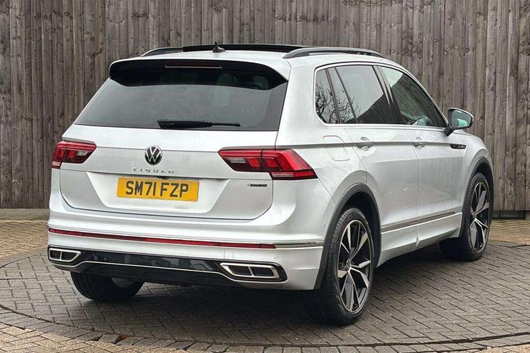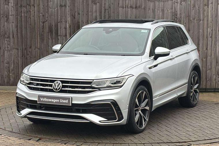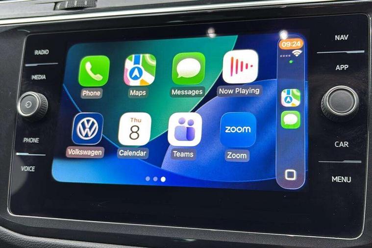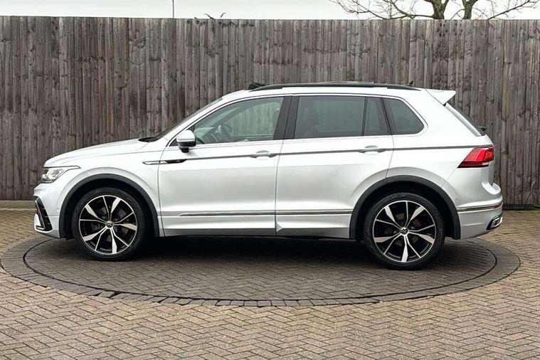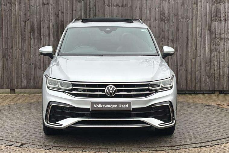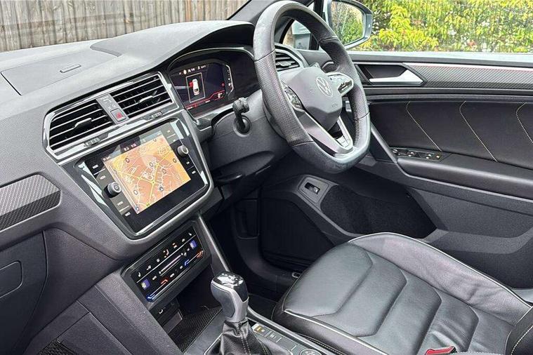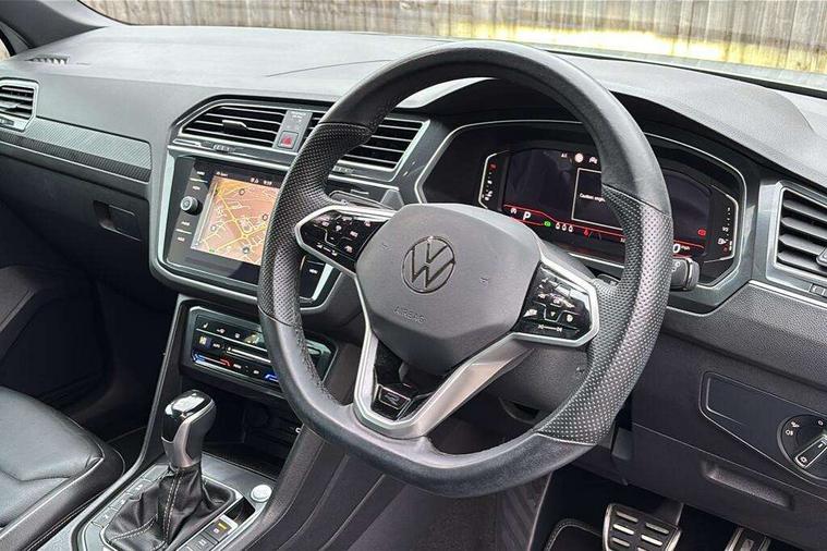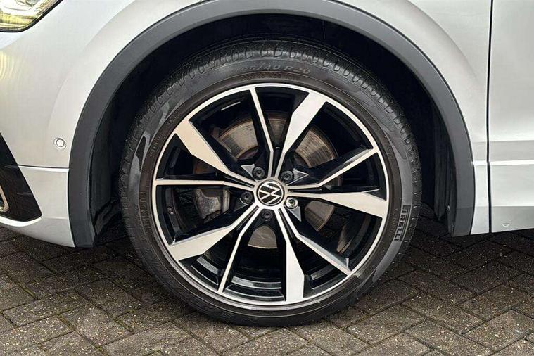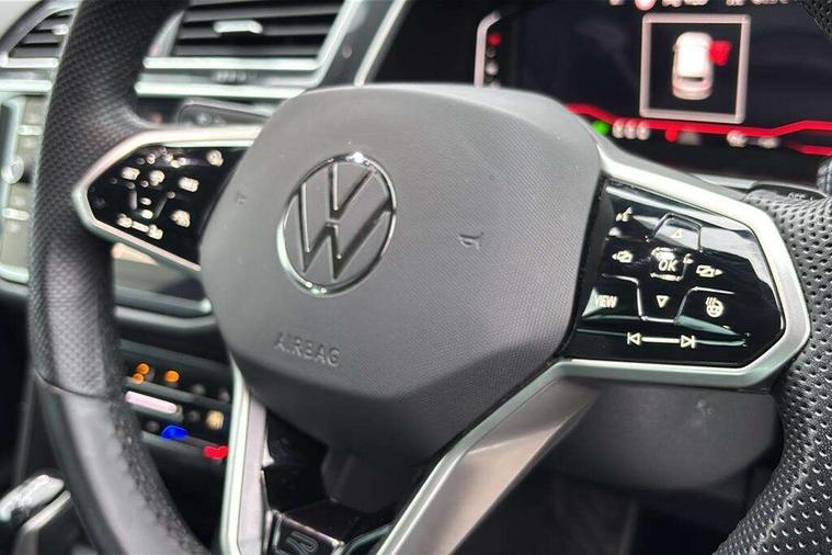Adaptive cruise control ACC stop and go including speed limiter, App-Connect incl. App-Connect Wireless for Apple CarPlay and Android Auto, Bluetooth phone integration system, Digital Cockpit Pro - Active info display, Distance control assist, Driver alert system, Driver profile selection, Dynamic road sign display, eCall emergency call system, Electromechanical speed sensitive power steering, Engine start/stop button, Lane keeping system Lane Assist, Lights on warning, Multifunction front facing camera, Outside temperature display, Premium multifunction display with multi colour display, Remote control boot opening, Rev counter, Revision / skills operating concept travel assistant, Service interval indicator, Speed limit display, Start/stop system with regenerative braking, Trip computer, Warning sound and light for doors and tailgate open, All wheel drive - 4Motion, Battery regeneration during braking, Diesel particulate filter, Misfuel prevention device for diesel engine, Selective Catalytic Reduction, XDS electronic differential lock for improved traction and handling, 2 USB-C ports in the front, 1 USB-C charging socket on the center console in the rear, Diversity antenna for FM reception, Radio, SD card slot, Simultaneous pairing of 2 compatible mobile devices, SMS functionality - read, compose and send SMS messages using touch-screen display, Title and cover art display, Auto dimming interior rear view mirror, Automatic headlight control system, Black roof rails, Body colour door handles, Body coloured bumpers in R Line style, Body coloured door mirrors with integrated indicators, Chrome moldings on the side windows, Coming/leaving home lighting function, Dynamic headlight range control, Front and rear electric windows, Heated rear window, High level 3rd brake light, Laminated safety glass windshield, heat and sound insulating, LED rear number plate lights, License plate carrier in front and rear, Poor weather light and cornering light, Privacy glass for rear side windows and rear window, R Line body kit, R Line side sills, Rain sensor windscreen wipers, Rear exhaust tailpipe, Rear fog lamp, Rear side wing doors, Rear spoiler in R style, Rear windscreen washer and wiper with interval delay, Side and rear windows in heat insulating glass, Trailer Stability Programme, Unique R Line badging, Windscreen wipers/ intermittent wipe + 4 position delay, 12V outlet in center console rear and in luggage compartment, 12V outlet in front and tray, 2 cup holders in front, 2 LED front reading lights, 2 LED rear reading lights, 3 bench rear seats in 2nd row, 3 rear headrests, 4 load lashing points, 40:20:40 split folding rear seats, Air Care Climatronic 3 zone automatic climate control with enhanced air filter and controls in the rear, Backrest release for left front seat, Black headlining, Brushed stainless steel pedals and footrest, Carpet mats in front and rear with decorative stitching in Gray, Climate control unit rear with touch function, Door and side trim panel in foam film, insert in leatherette, Front centre armrest, Front footwell illumination, Front seats head restraints (x-adjustment), Height adjustable front seats, Height/reach adjust steering wheel, Instrument lighting white adjustable panel illumination, Interior light with delay, Isofix Preparation 2 Rear child seats, Leather gear knob, Lockable cooled glovebox, Luggage compartment lighting, Luggage net, Rear bench seat asymetrically split folding, longitudinally movable and folding with load-through hatch and center armrest, Remote unlocking for rear seat backrest, Removable luggage cover, Removable rear headrests, Safety optimised front head restraints, Single front passenger seat, Sliding/reclining rear seats, Standard rear seat release, Storage compartment in driver's door, Storage compartment in passenger's door, Storage compartment in rear doors, Storage compartments in luggage area left and right, Storage tray on dashboard, Sun visors with illuminated vanity mirrors, Top front comfort seats, Variable boot floor, height adjustable and removable, Ambience pack - Tiguan R Line, Driver assistance pack plus - Tiguan DSG, Park assist pack - Tiguan, 3 point seat belt for centre rear seats, 3 point seat belts with seat belt pretensioners for the outer rear seats, Active bonnet, Curtain airbags for front and rear passengers, Driver/Front Passenger airbags, Drivers knee airbag, Electronic parking brake with auto hold, Electronic Stability Control with driver steering recommendation, ABS, ASR, EDL, EDTC and trailer stabilization, Front assist with autonomous emergency braking (for Adaptive Cruise Control ACC up to 130 mph), Front disc brakes, Front passenger airbag deactivation, Front side airbags, Height adjustable front 3 point seatbelts + pretensioners, Hill hold control, Manual child proof rear door locks, Pedestrian monitoring system, Power assisted brakes, Proactive passenger protection system in combination with front assist, Rear disc brakes, Rigid safety cell with front and rear crumple zones, Two tone horn, Warning sound and light for front seat belts if unfastened, Anti theft alarm system with interior monitoring, backup horn and towing protection, Anti theft wheel bolts, Electronic engine immobiliser, 20" Misano black with diamond turned surface alloy wheels with Airstop tyres, Tool kit,