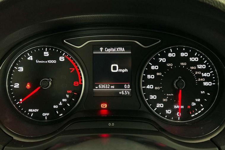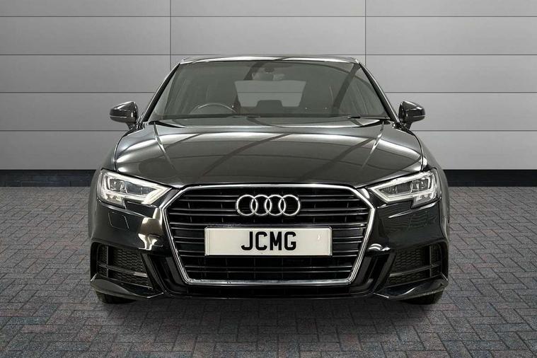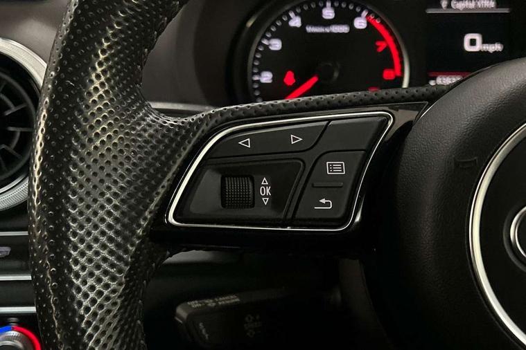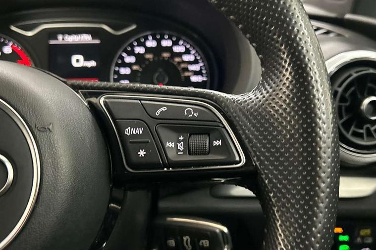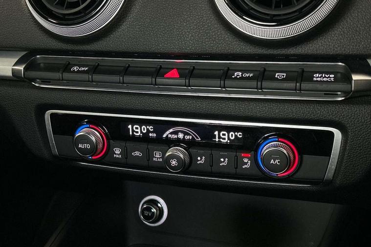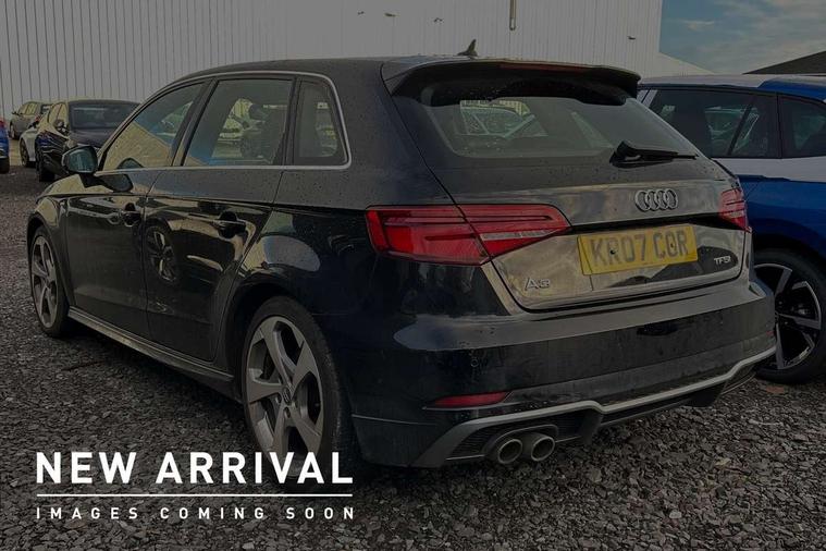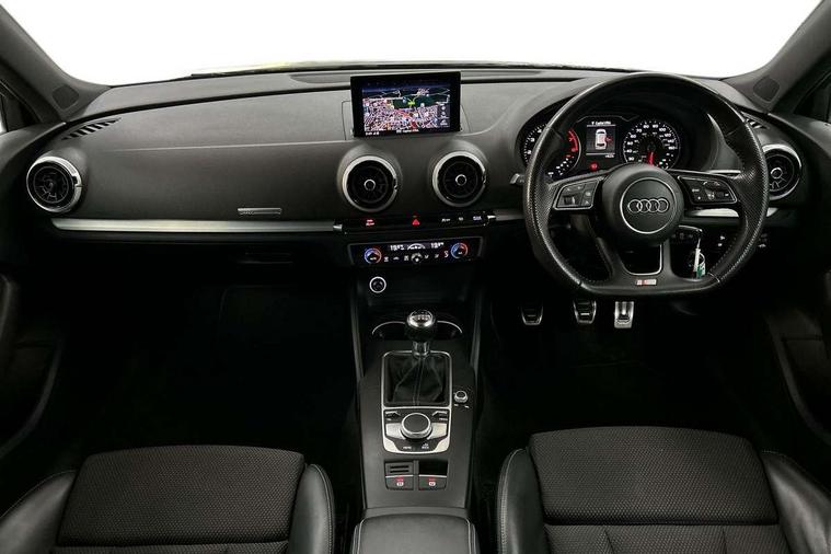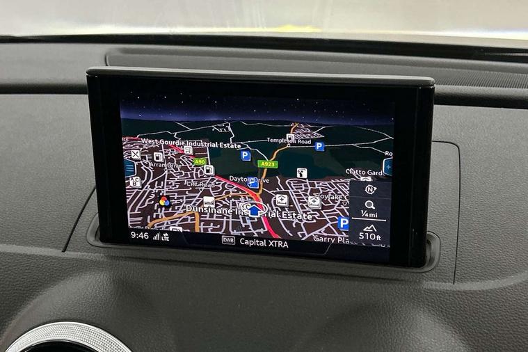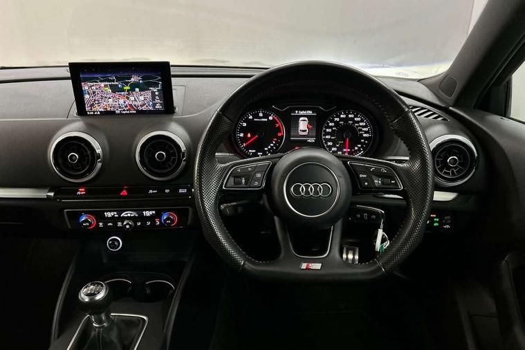 Audi connect, Audi drive select, Audi smartphone interface, Colour driver's information system display, Electro-mechanical PAS, HDD satellite navigation system radio single CD/DVD player MMI control system, Mobile telephone preparation - bluetooth interface, Service interval indicator, Speed limit display, Voice control system, 2 USB ports, Audi music interface, Auxiliary input socket, CD player, DAB Digital radio, MMI radio plus with 7" colour MMI screen and MMI controller, Aluminium window trim, Auto dimming rear view mirror with light and rain sensors, Body colour bumpers, Body colour door mirrors with integral indicators, Body colour roof spoiler, Chrome exhaust tailpipes, Electric front windows, Electric operated/heated door mirrors, Electric rear windows, Heated windscreen washer jets, LED daytime running lights, Matt black radiator grille, Rear wiper, S Line body styling, Sport specific side air inlet grille and diffuser insert, 3 adjustable rear headrests, 3 spoke flat bottomed multi-function leather steering wheel, 4 lashing points to secure luggage, Adjustable front armrest, Black cloth headlining, Dual zone electronic climate control, Front and rear interior lights with delay, Front passenger seat isofix location point, Front sports seats, Front/rear floor mats, Height/depth adjustable steering column, Illuminated glovebox, ISOFIX child seat preparation+airbag deactivation, Jack and tool kit, Stainless steel pedals, Storage compartment in centre console, Storage compartment under front seats, Storage compartments in doors, LED interior light pack - A3/RS3, Non smoking pack - A3, Storage and luggage pack - A3/RS3, 3 point seatbelts on all seats, ABS/EBD, Active bonnet, Active front headrests, ASR, Curtain airbags, Driver and passenger side airbags, Driver/Front Passenger airbags, Drivers knee airbag, EDL, Electromechanical parking brake, ESC - Electronic Stability Control + traction control, Front passenger airbag deactivation, Manual rear child locks, Multi-Collision braking, Seatbelt warning, Tyre pressure warning, Warning triangle and first aid kit, Anti theft alarm, Anti-theft wheel bolts, Remote control central locking, Thatcham category 1 alarm + immobiliser, Aluminium air vent surrounds, Aluminium trim elements, Matt brushed aluminium inlays, Space saver spare wheel,
